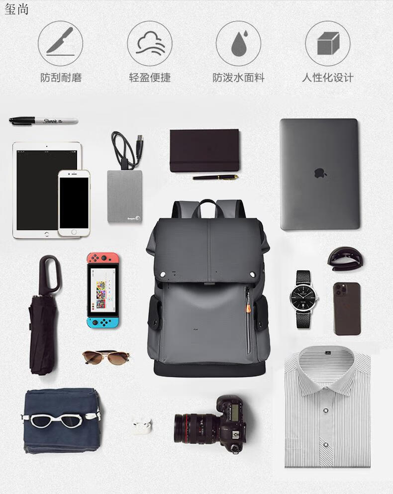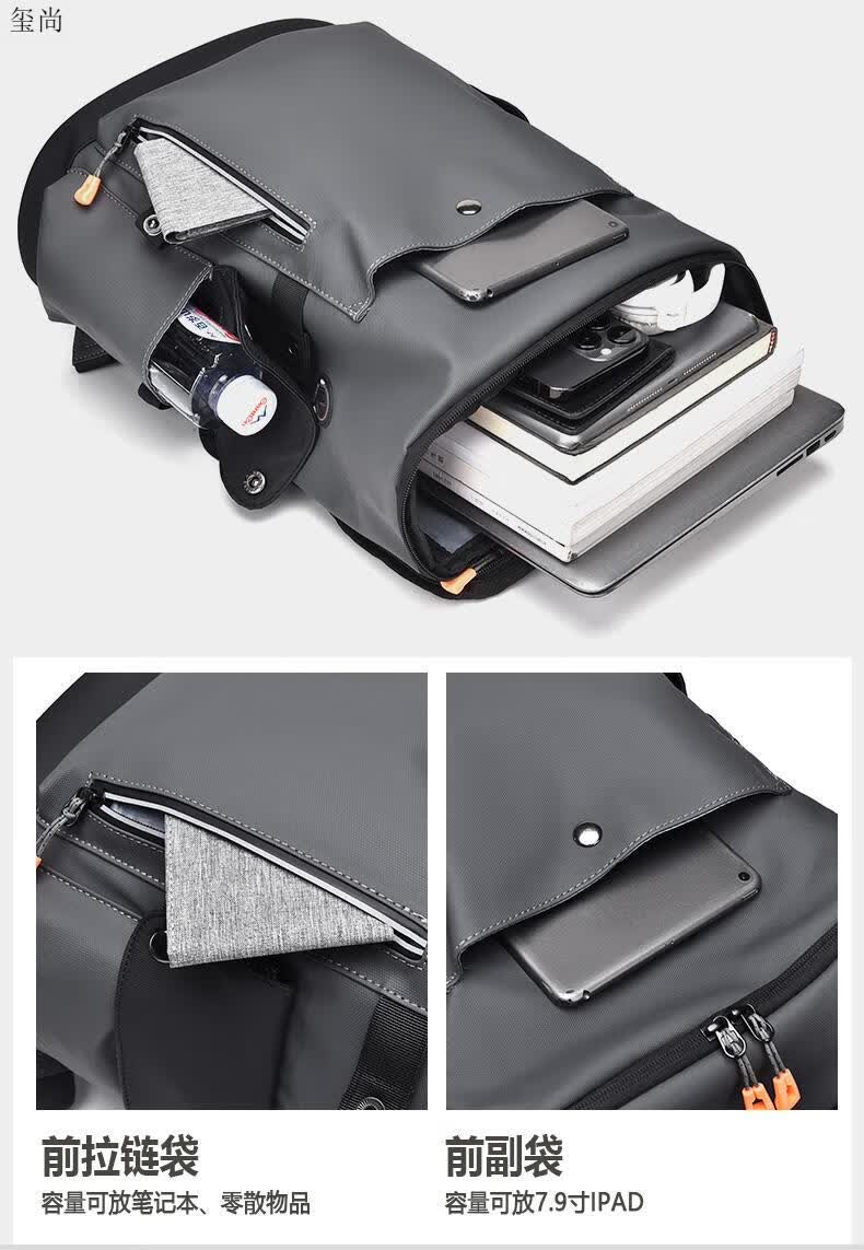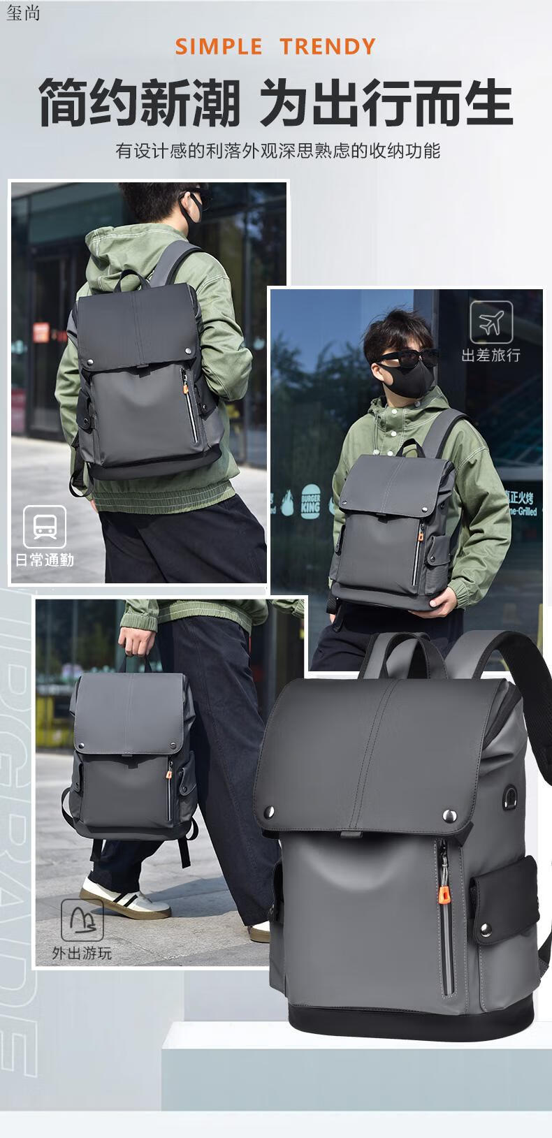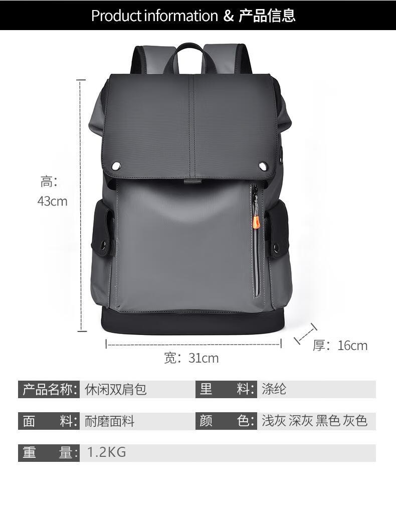 马克华菲(MARK FAIRWHALE)【春尚新】26商务双肩包男潮流ins书包休闲通勤电脑背包上班出差 铅咖【盒装/顺丰快递】