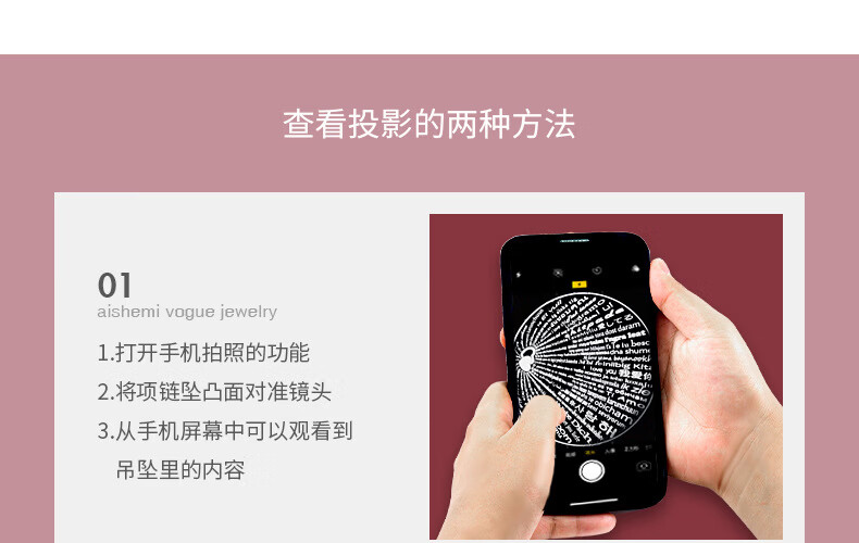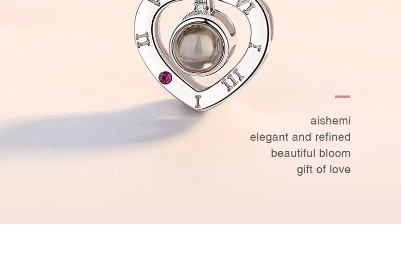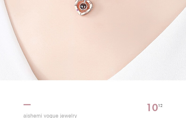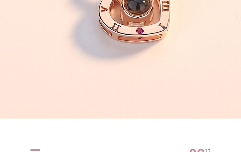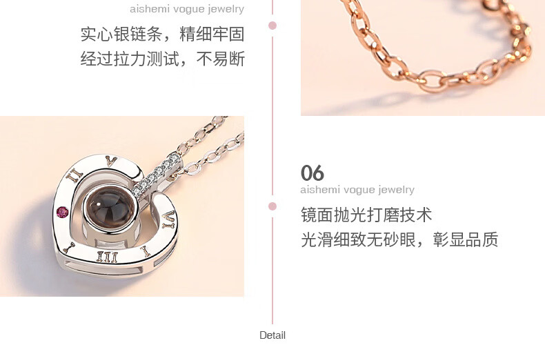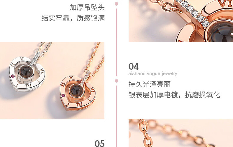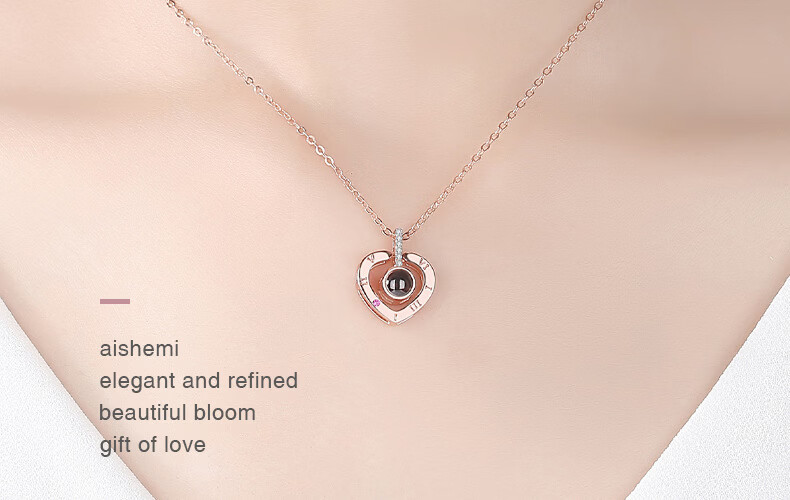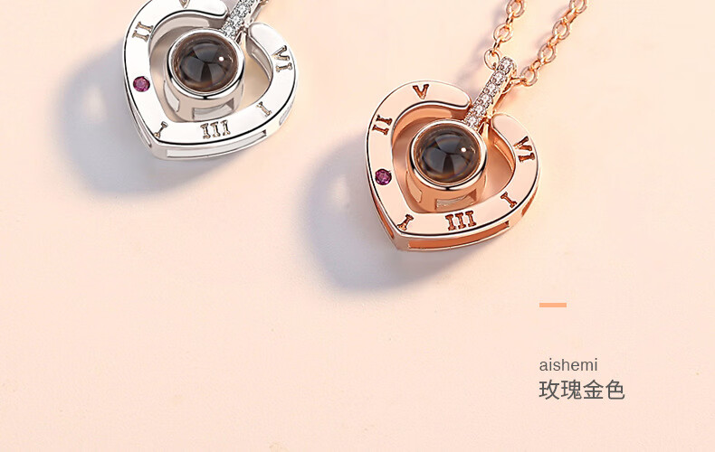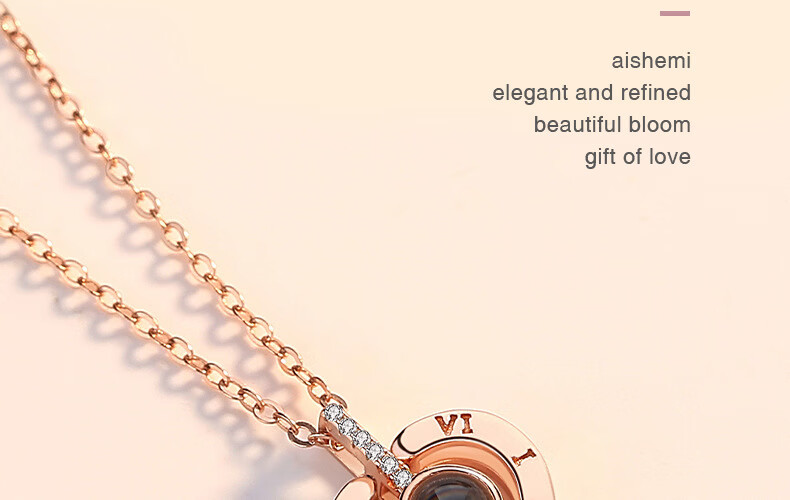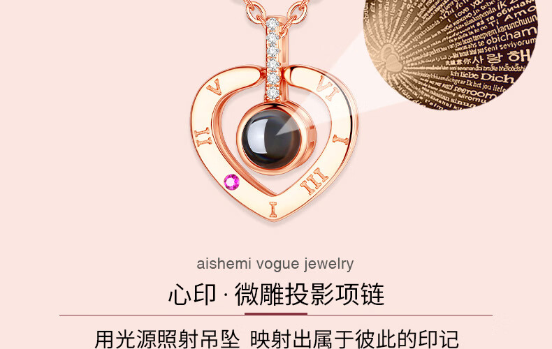 ZAVO定制投影100种语言吊坠爱的记忆纯银项链女款银饰生日送女生礼物 金色【定制版+证书+升降玫瑰礼盒】下单备注或联系客_
