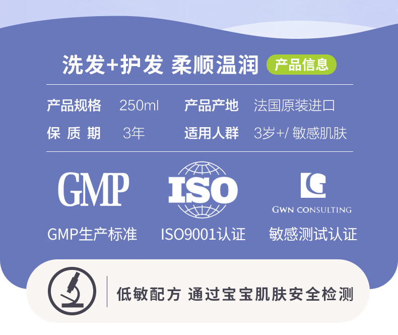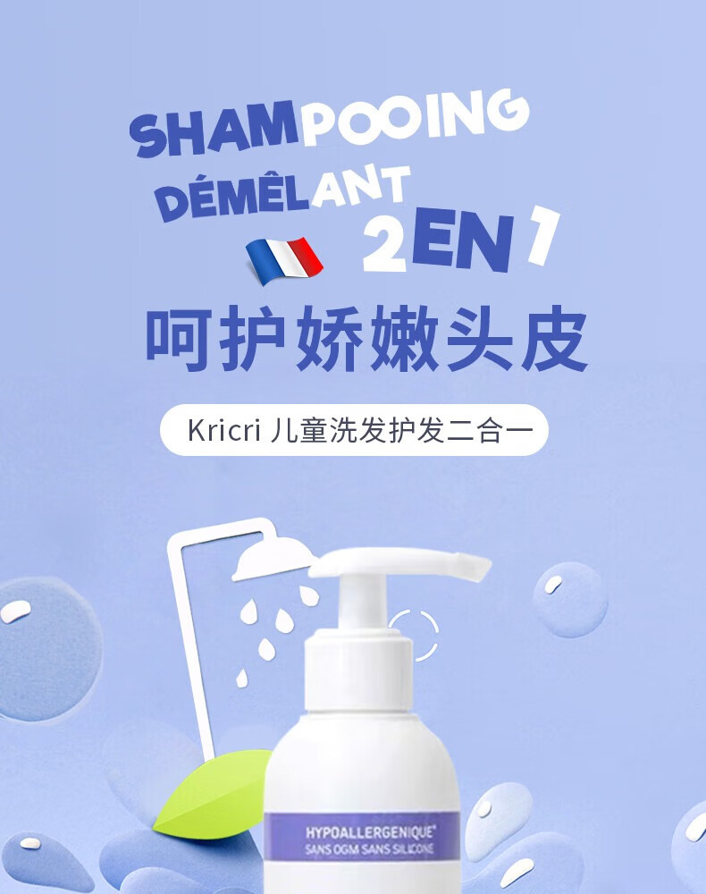 Kricri法国洗发护法二合一补水保湿沐浴露男孩女孩全身滋养肌肤 洗发护发二合一【500ML】