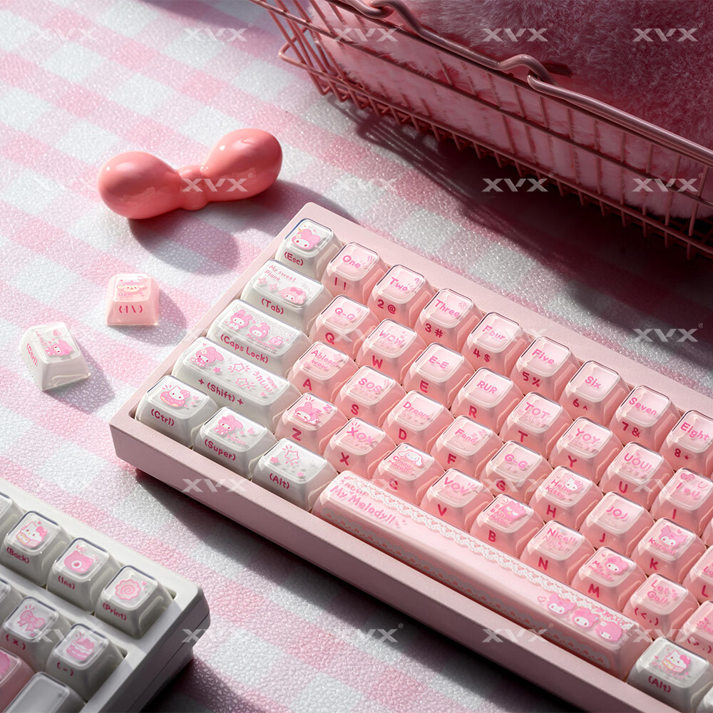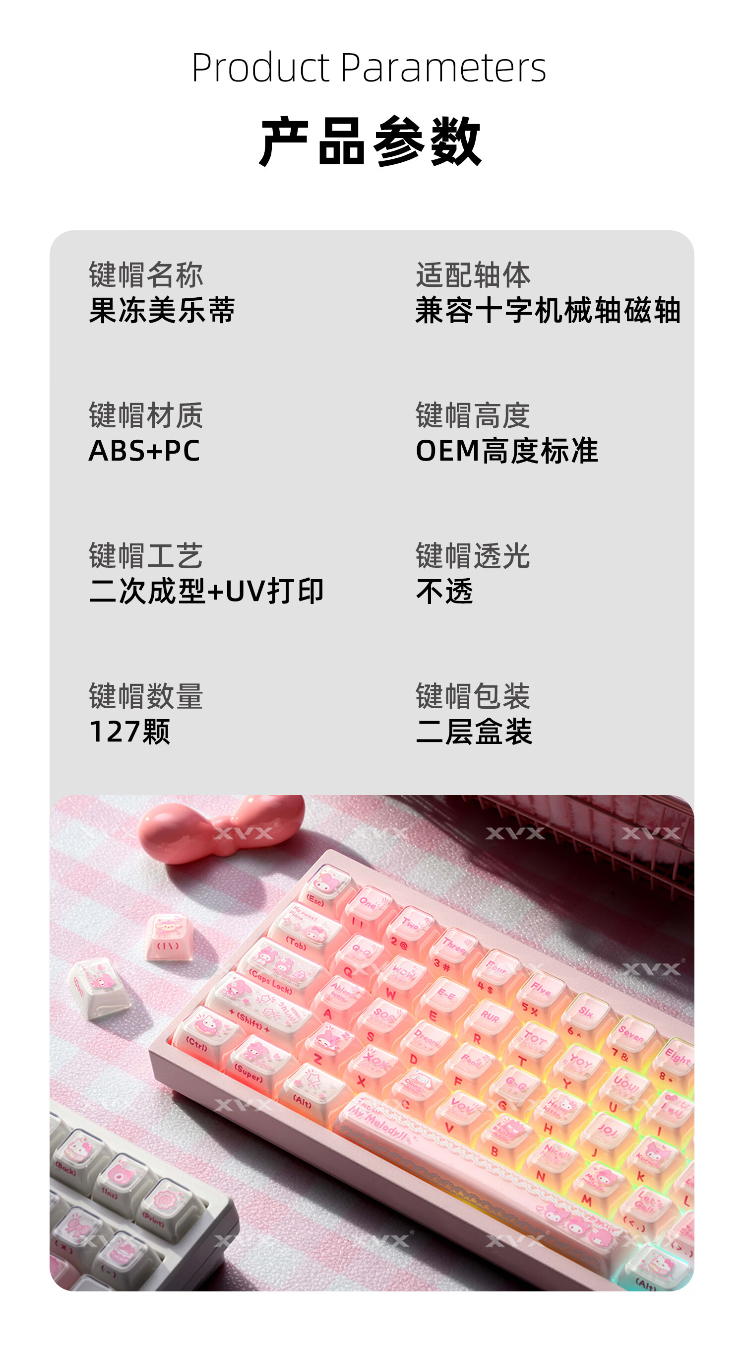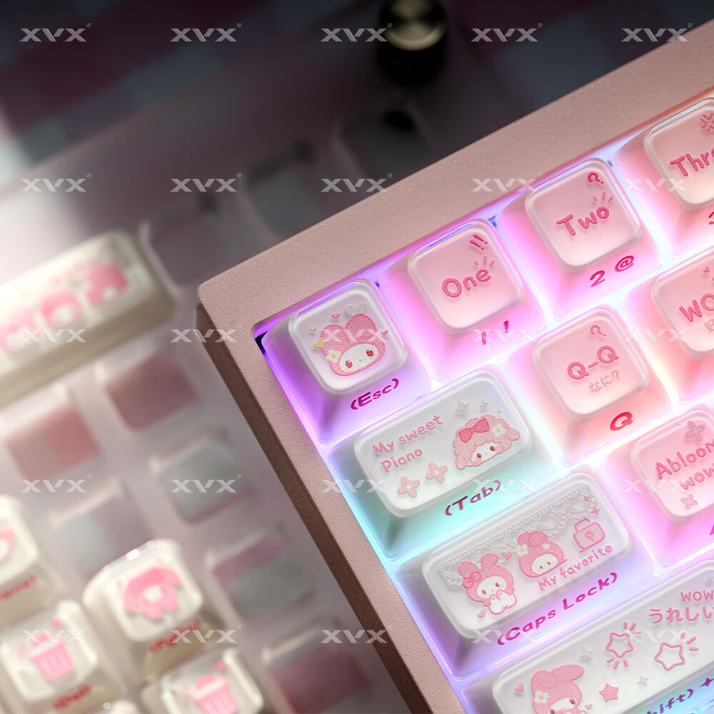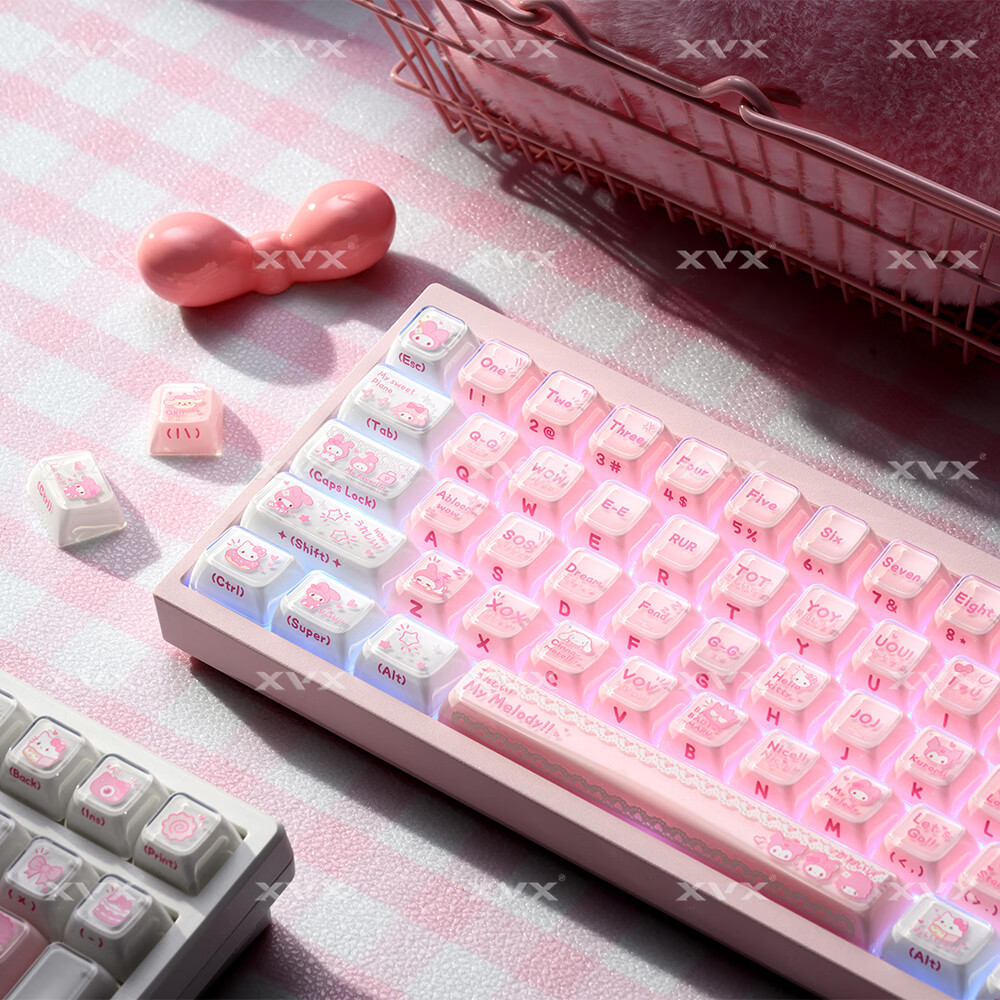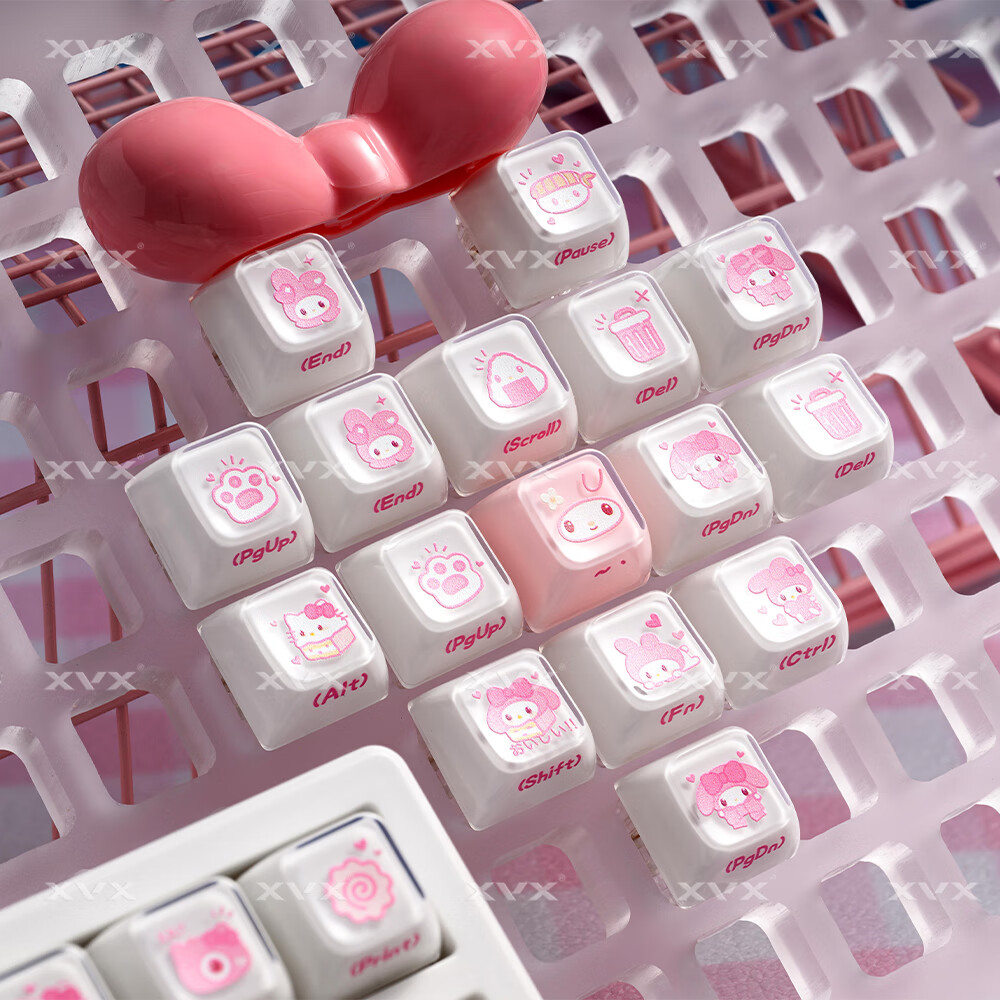 XVX核心设计果冻美乐蒂键帽My Melody粉白双拼磁轴机械键盘帽侧刻 美乐蒂【136颗】送拔键器