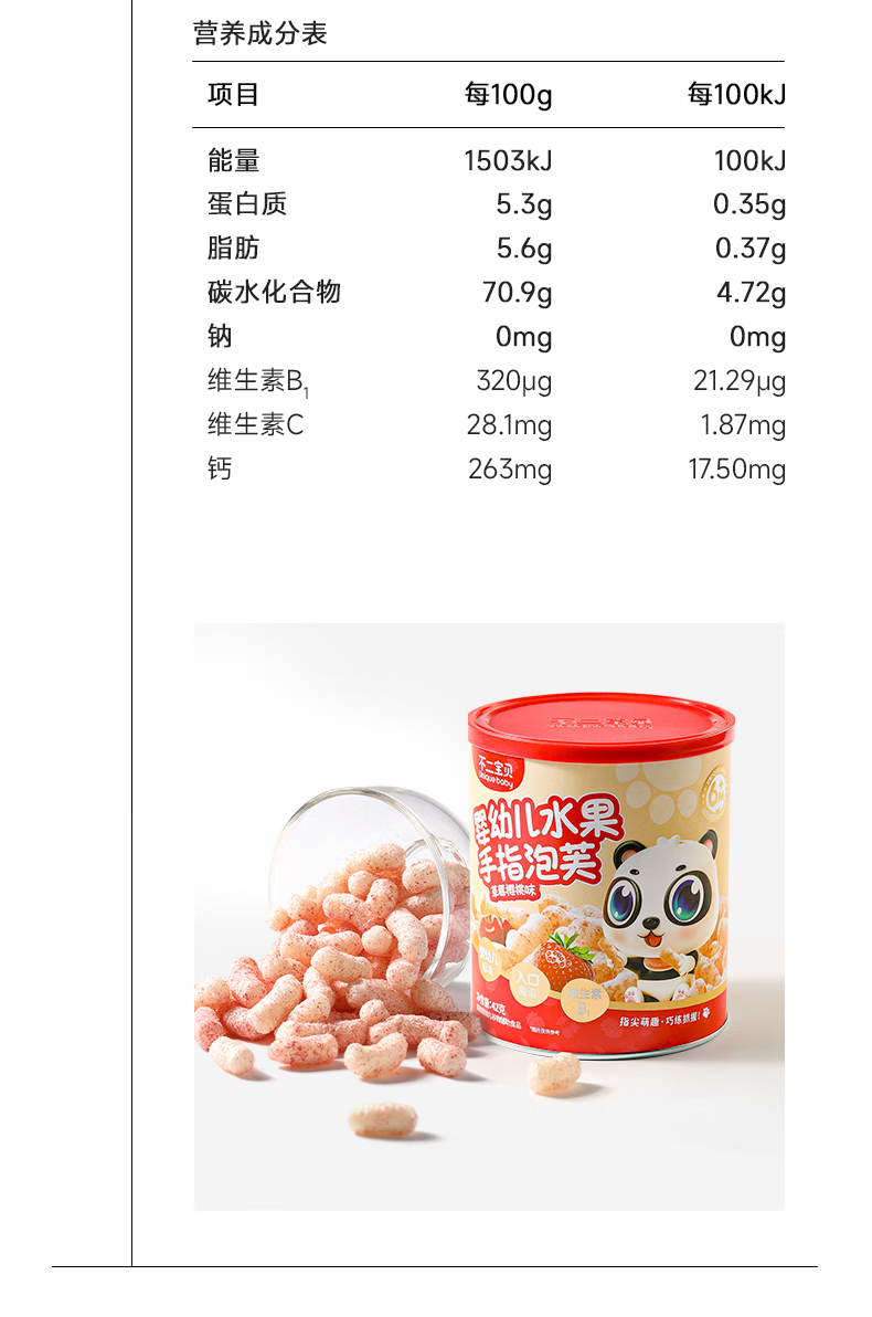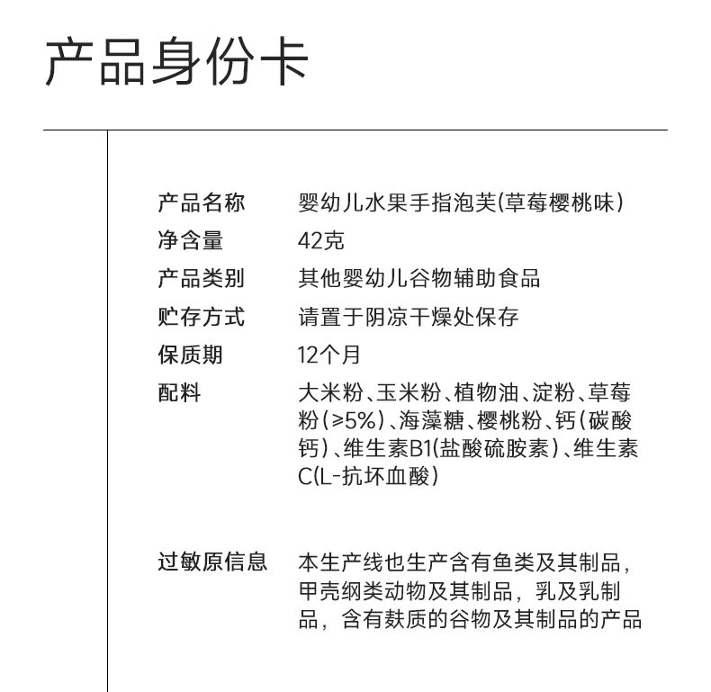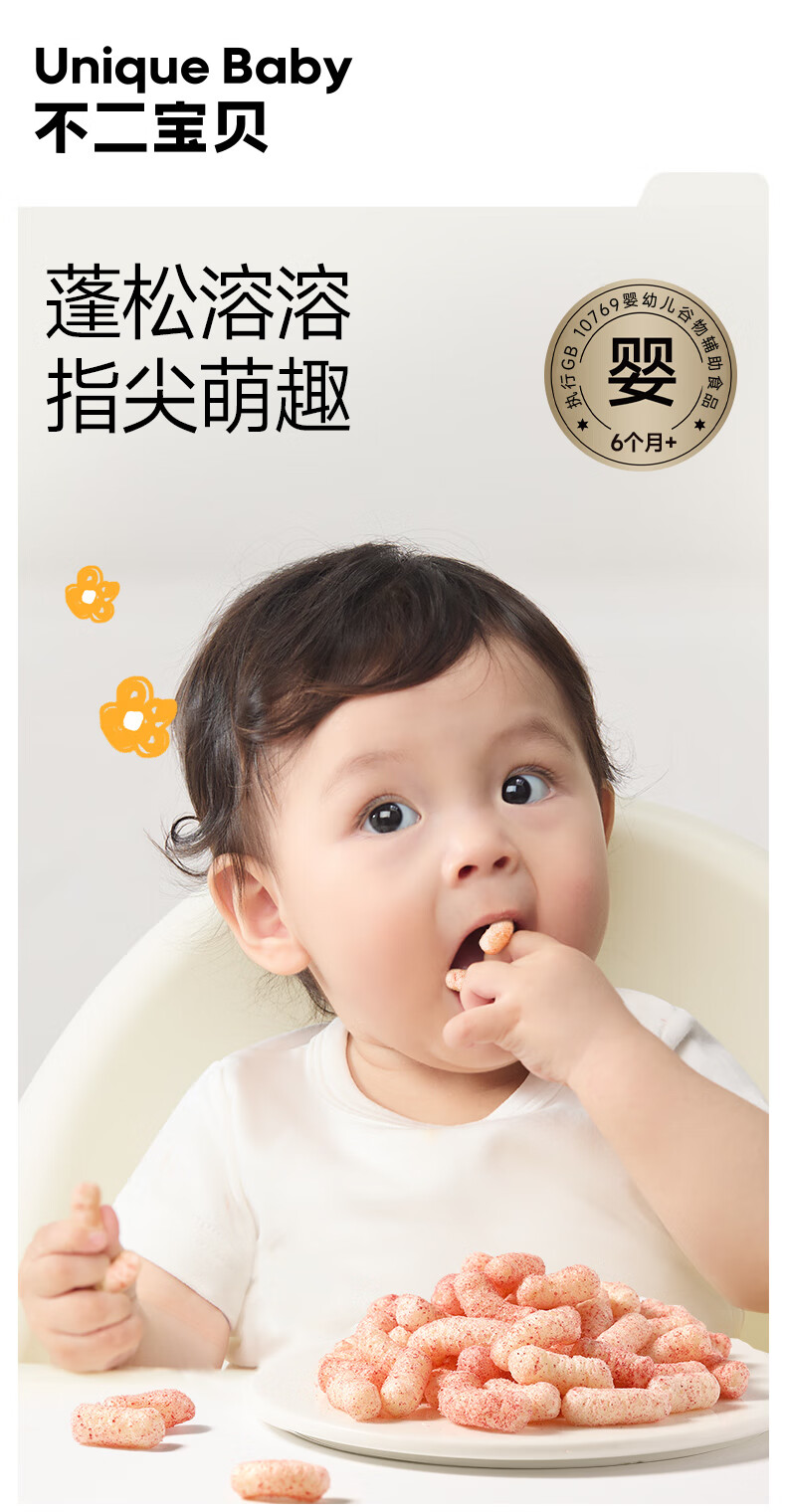 不二宝贝婴幼儿手指泡芙条42g草莓樱桃味6月+宝宝零辅食搭溶豆米饼干