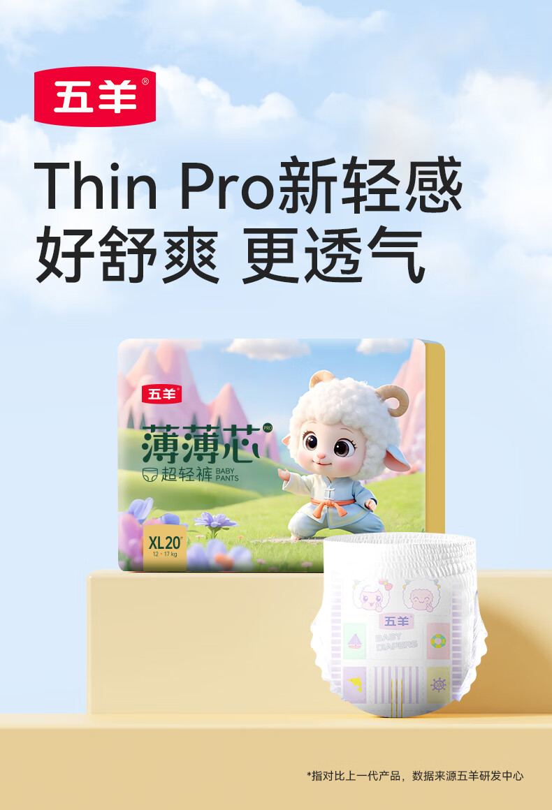 五羊拉拉裤薄薄芯成长裤XL20片(12-17kg)婴儿尿不湿超薄透气不闷便携