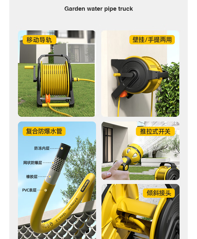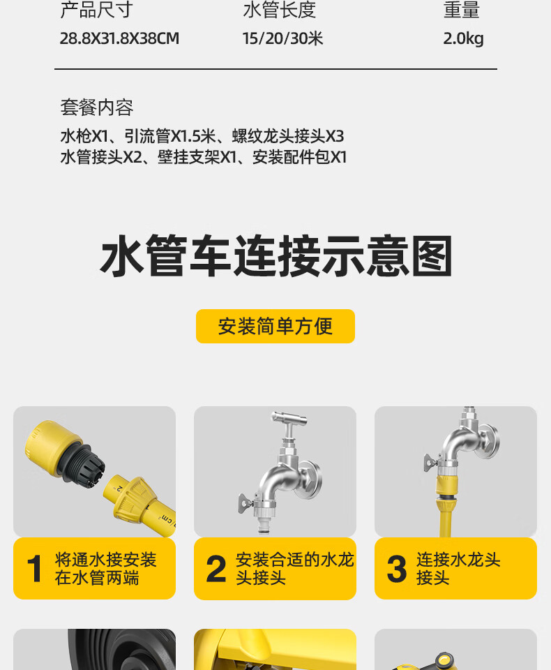 澳铂斯Aupers洗车高压水枪家用冲洗浇花神器免组装20米水管车软管收纳架