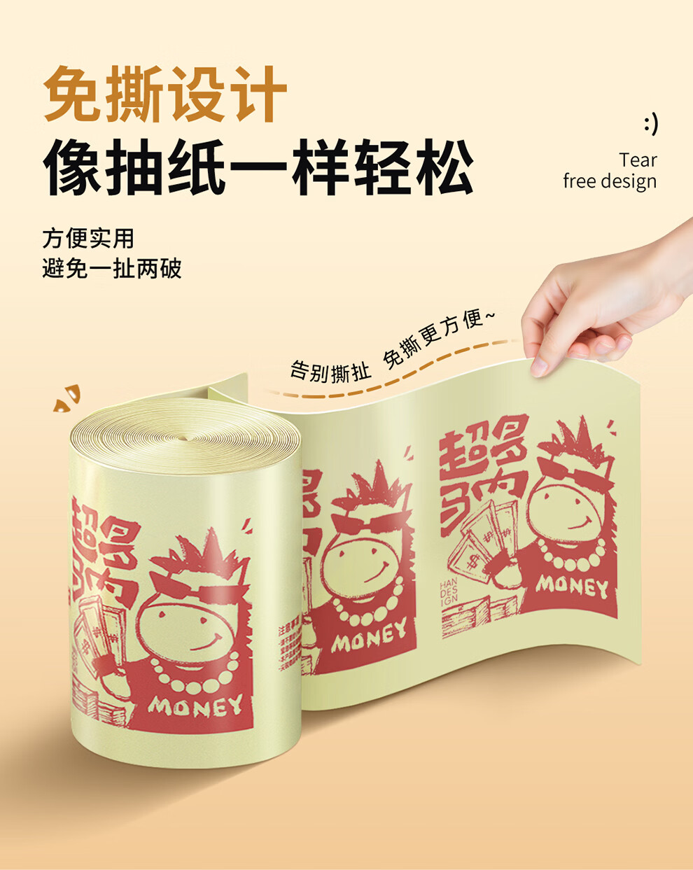 本迪超多马内免撕抽绳垃圾袋手提式加厚加大耐用厨房客厅塑料袋马年 超多马内-特厚2.4丝【75只免撕抽绳款45*50cm】