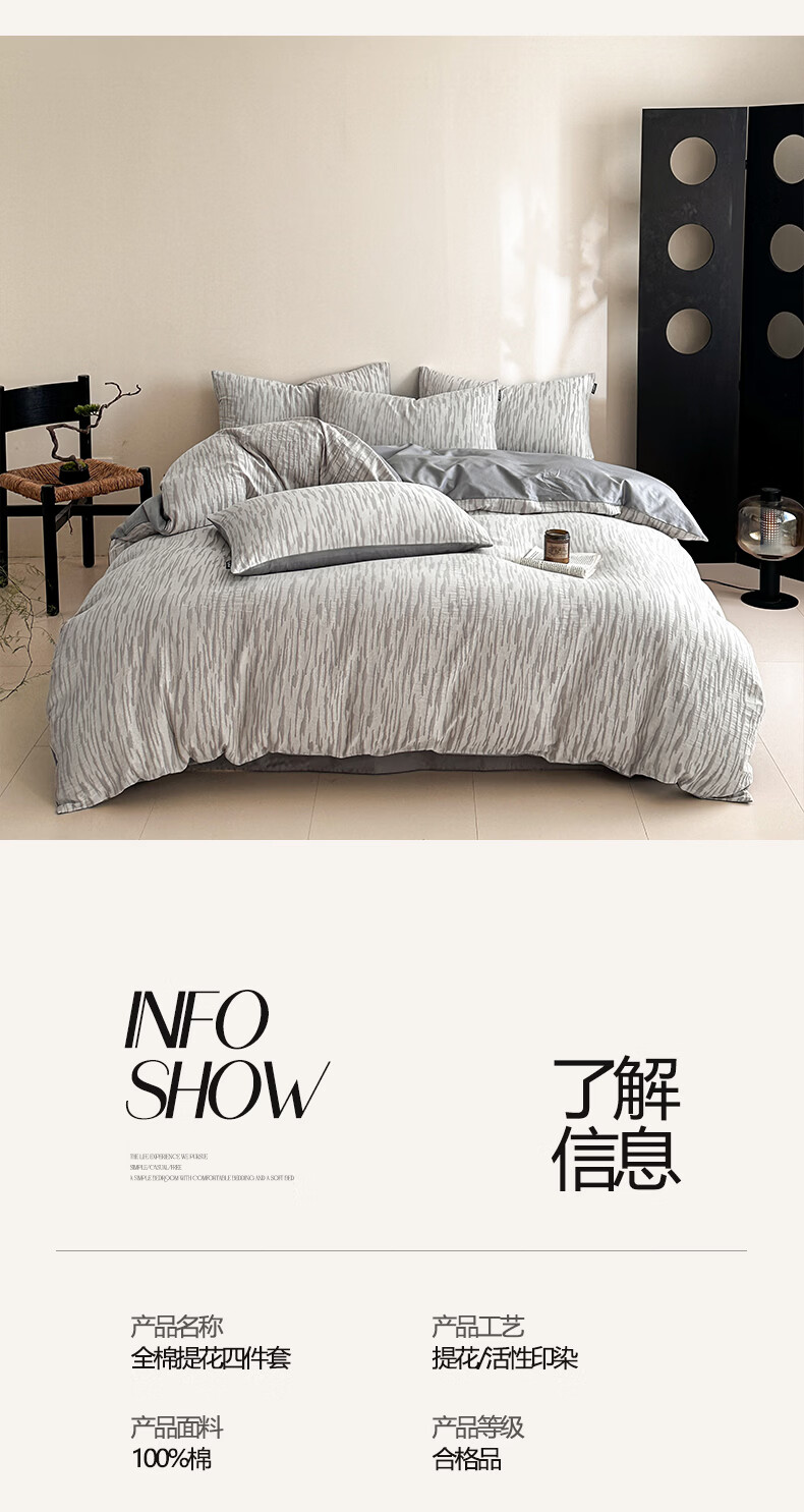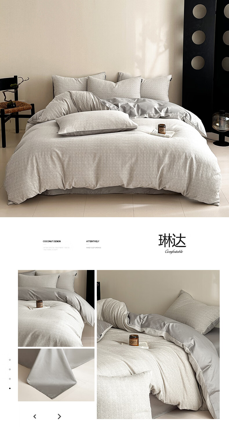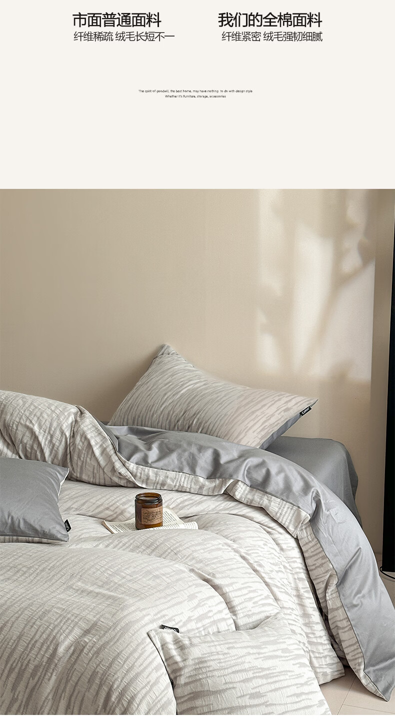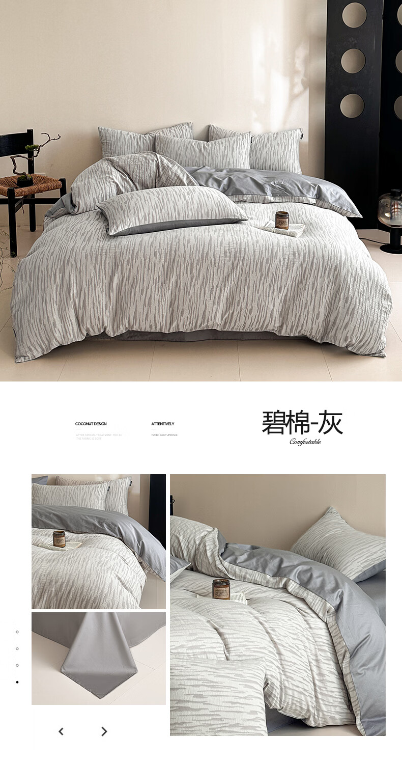 无印良品A类全棉床上四件套纯棉高端轻奢高级感双人被套200x230cm床单床笠 碧棉-灰【A类新疆全棉】 1.8m 床单款 四件套-被套200x230cm