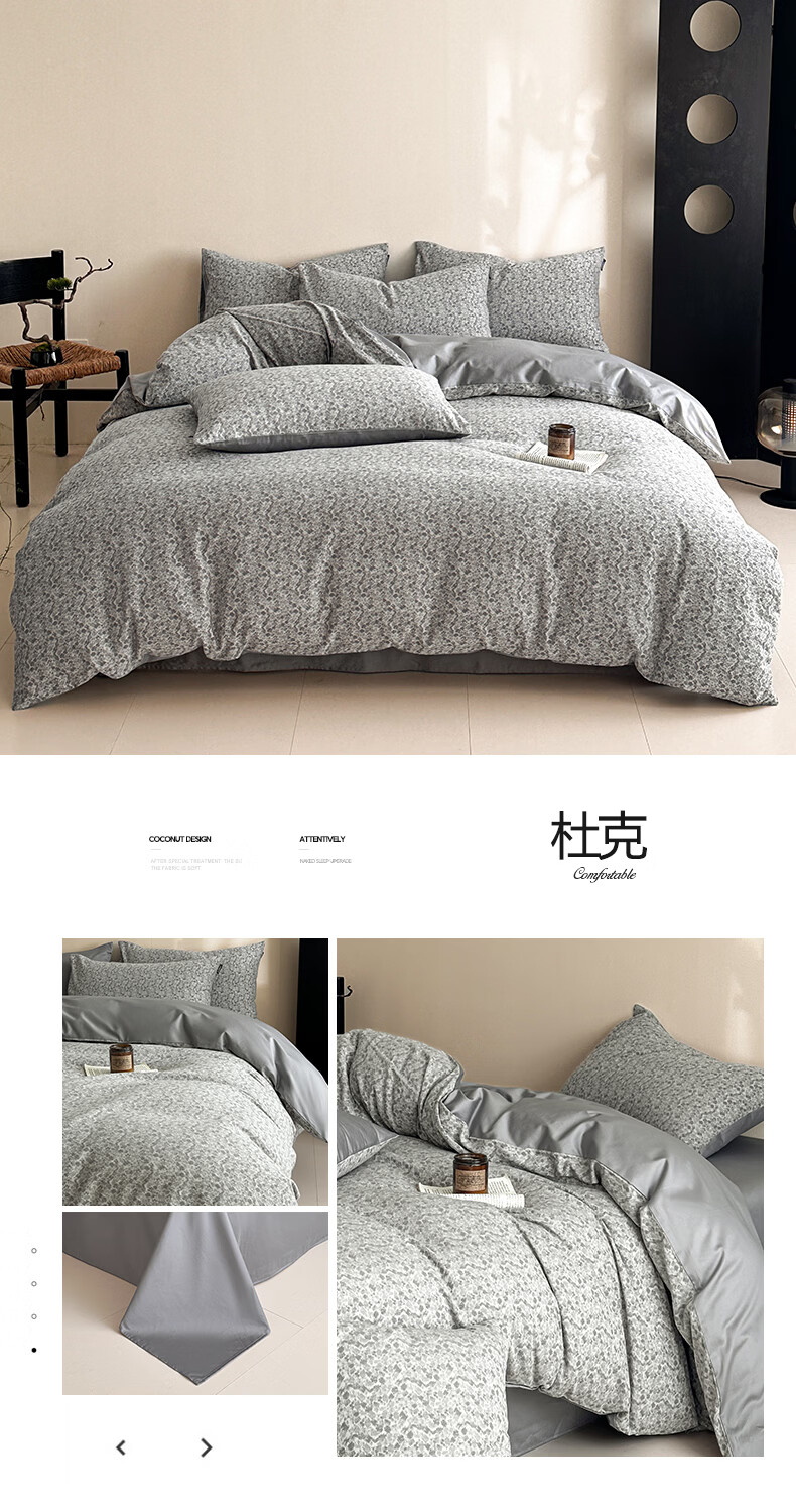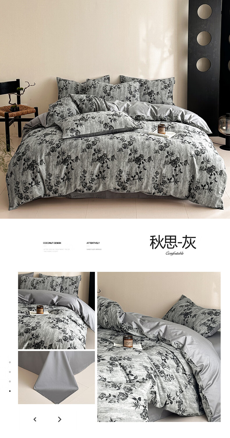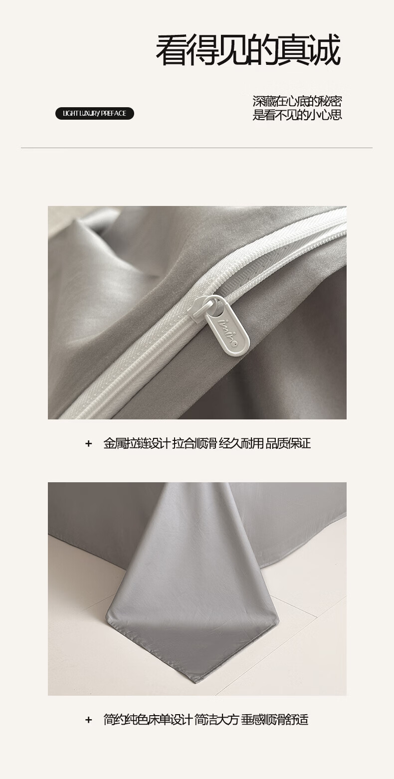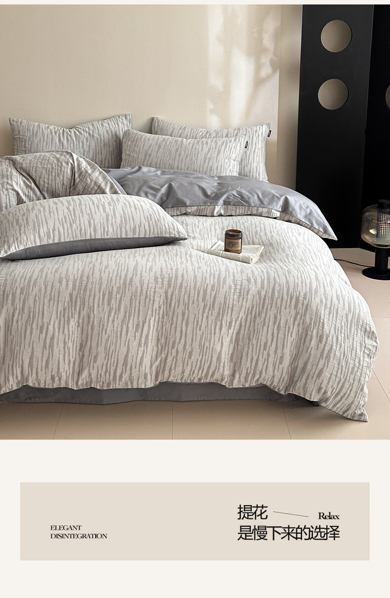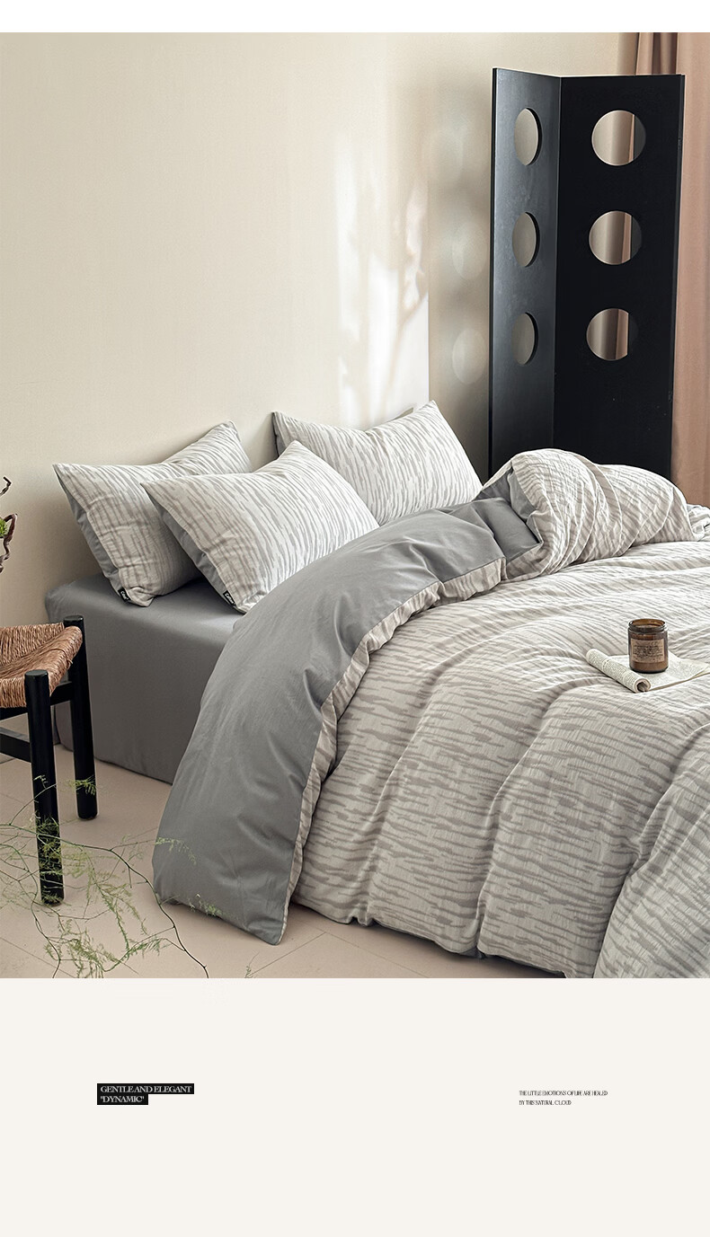 无印良品A类全棉床上四件套纯棉高端轻奢高级感双人被套200x230cm床单床笠 碧棉-灰【A类新疆全棉】 1.8m 床单款 四件套-被套200x230cm