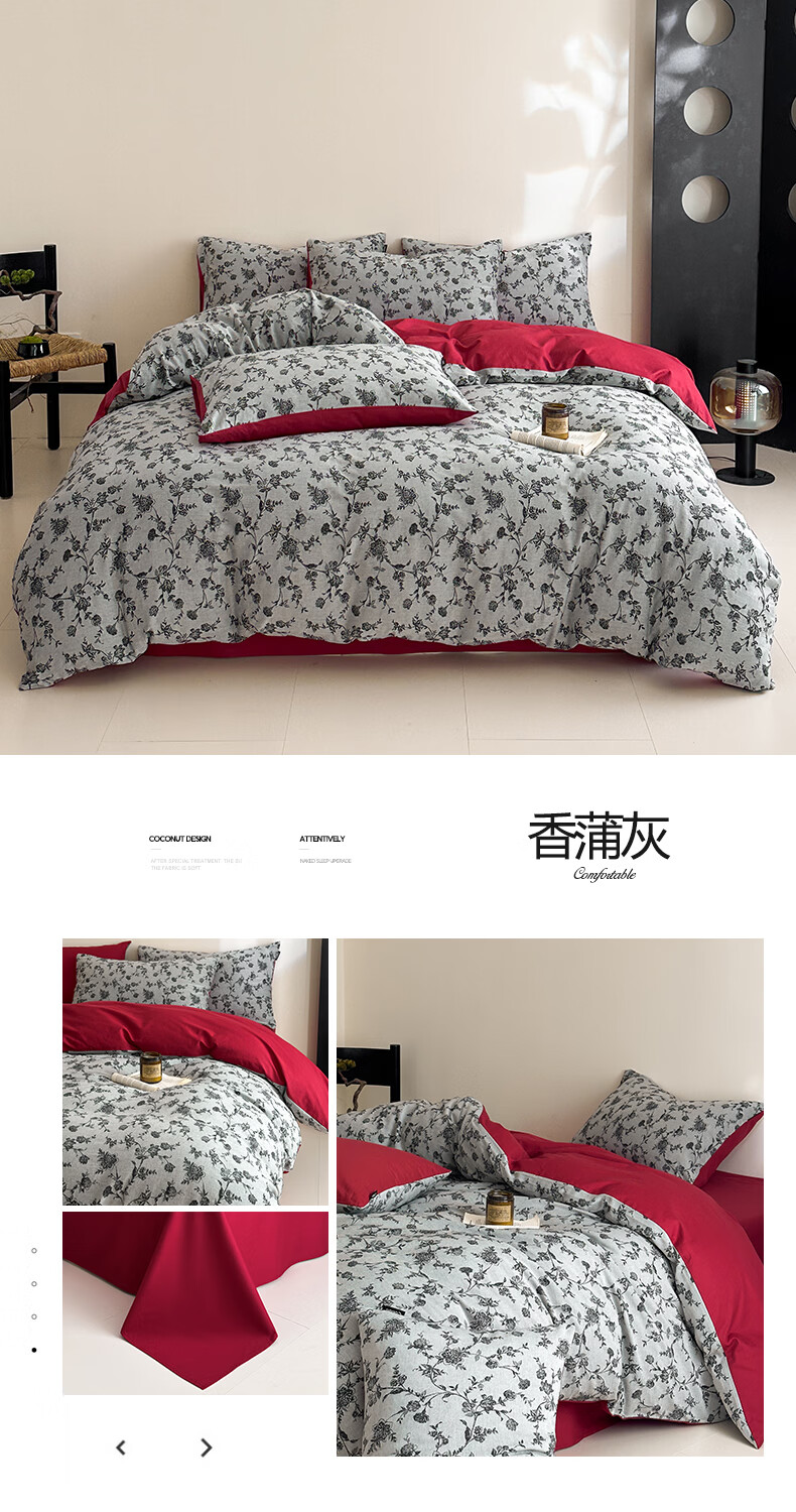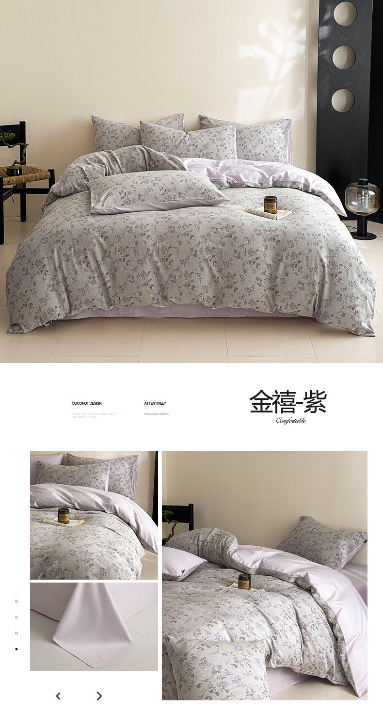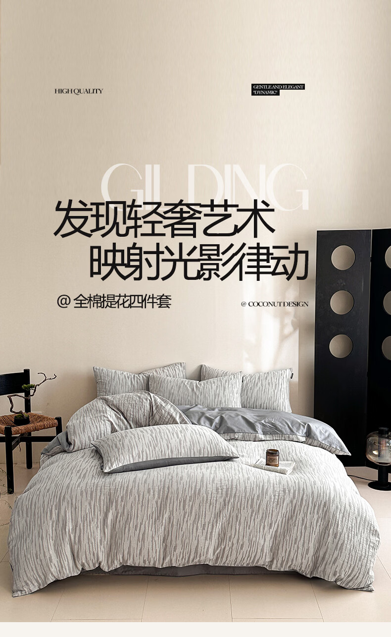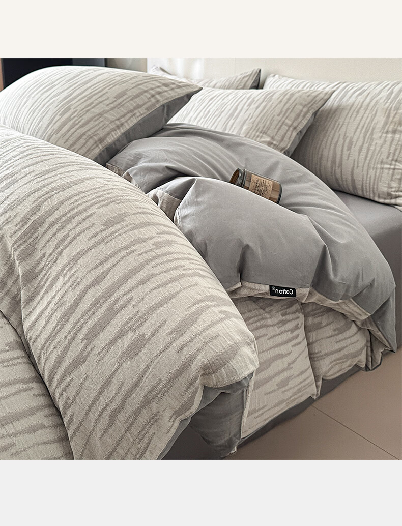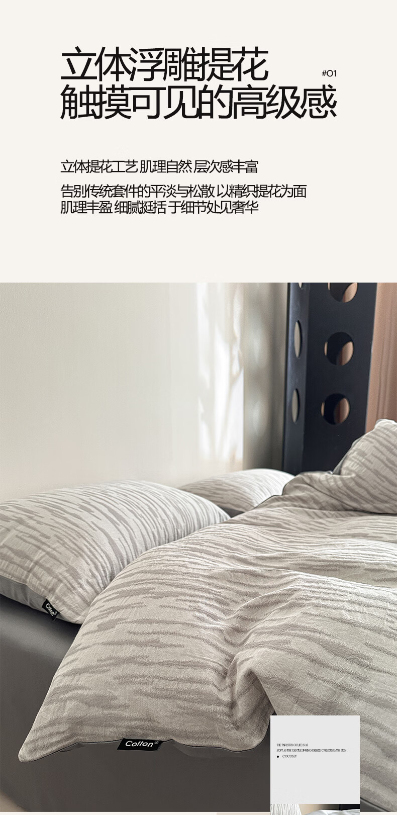 无印良品A类全棉床上四件套纯棉高端轻奢高级感双人被套200x230cm床单床笠 碧棉-灰【A类新疆全棉】 1.8m 床单款 四件套-被套200x230cm