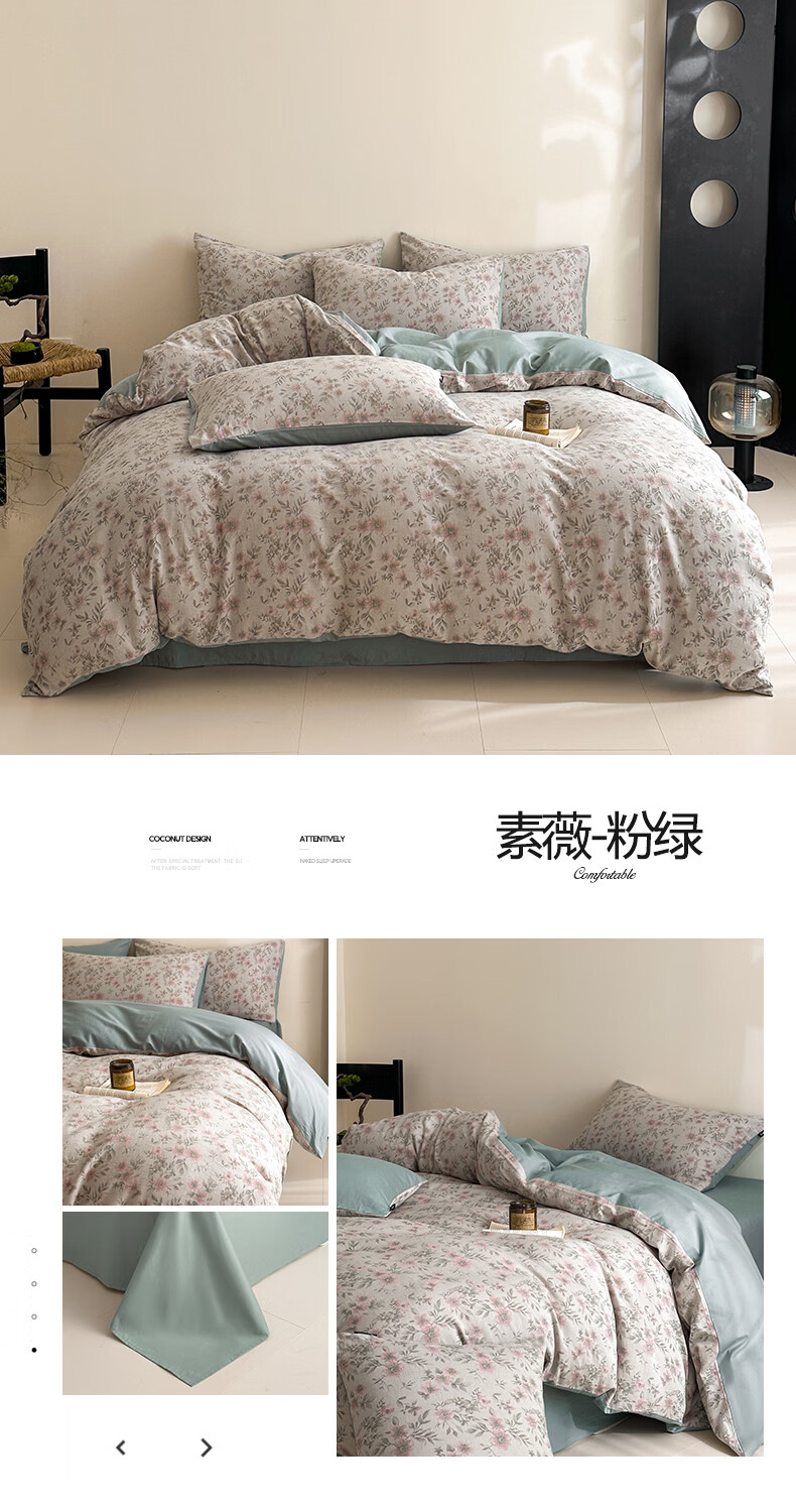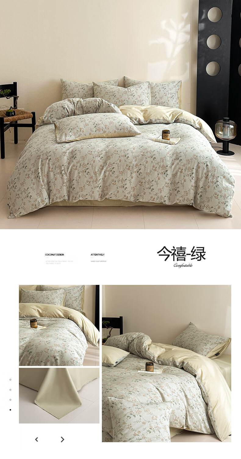 软贝小清新四件套 透气亲肤印花卡通简约田园风被套床单款套件 素卉-米黄 2.0m 床单款 四件套(被套200*230cm)
