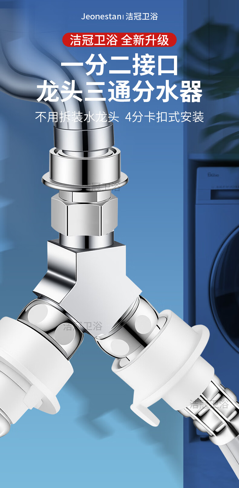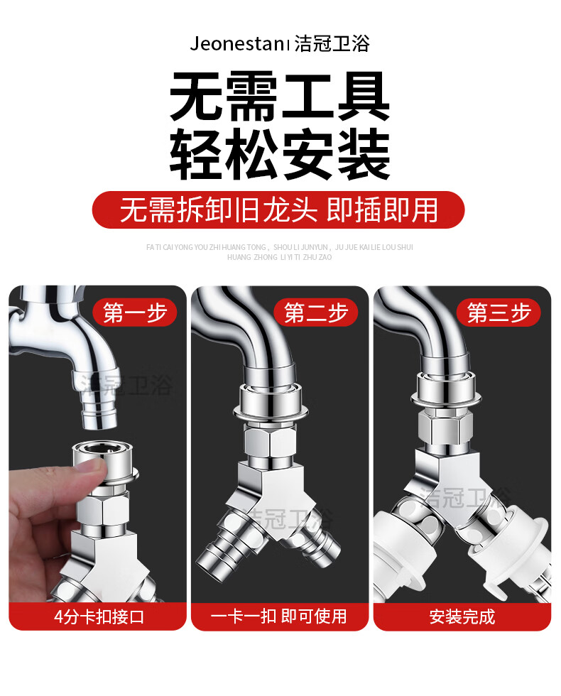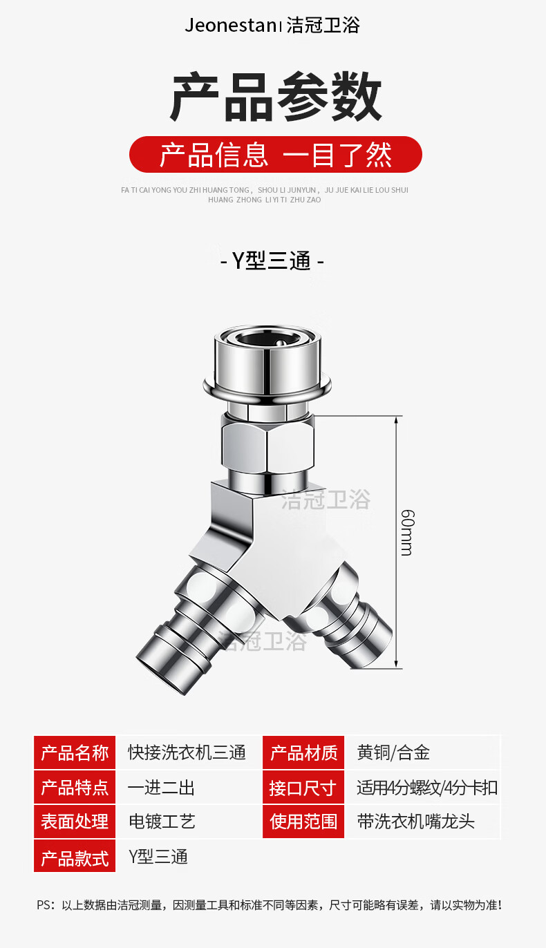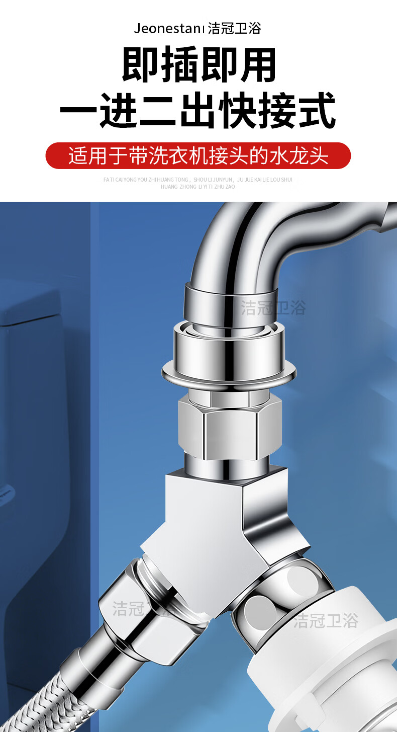 Jeonestan【德国】洗衣机水龙头全铜三通角阀一进二出接头分水器 【塑料卡扣】Y型三通(4分螺纹+4分螺纹)