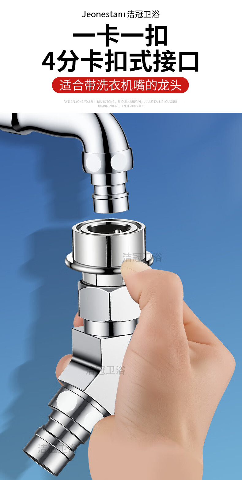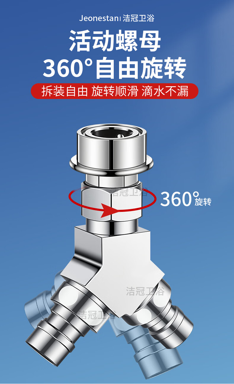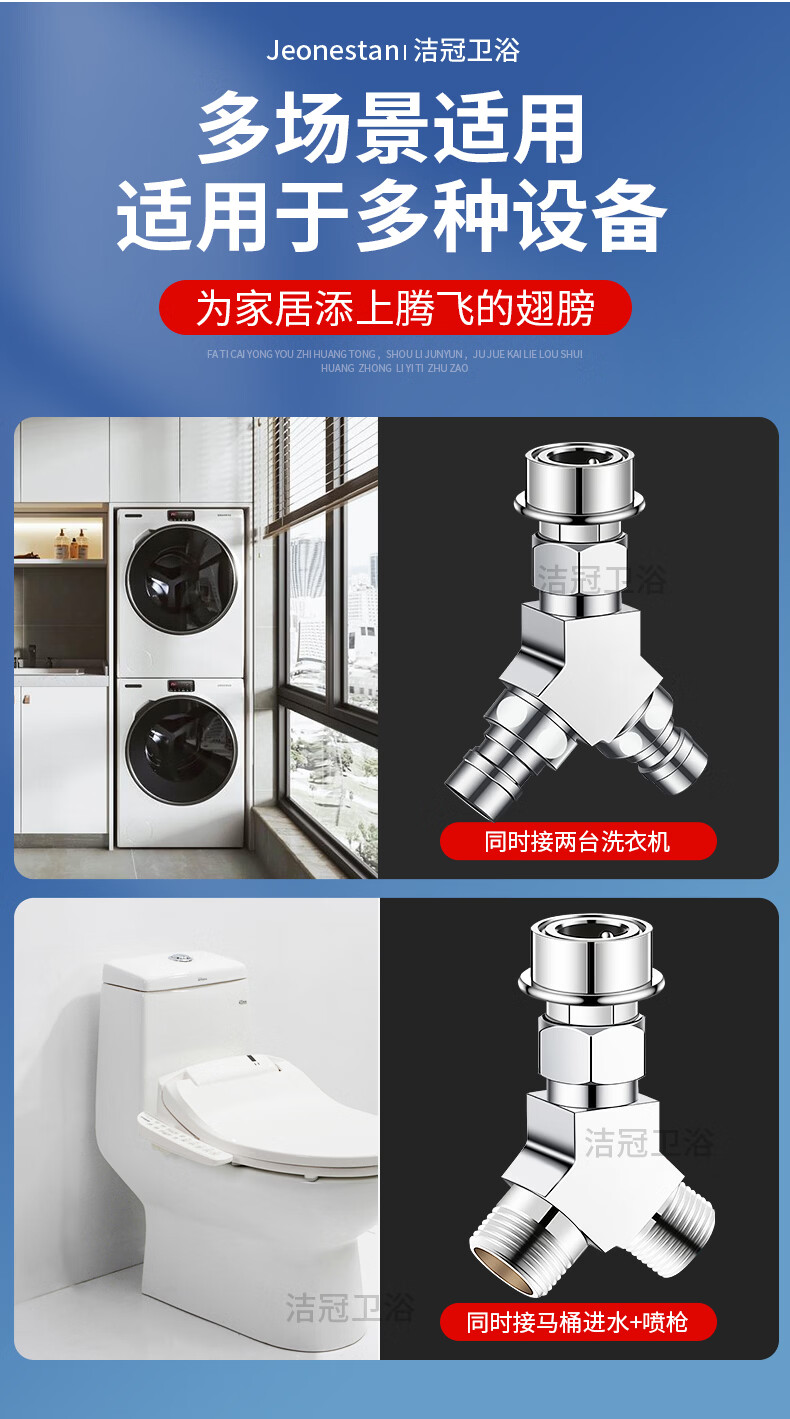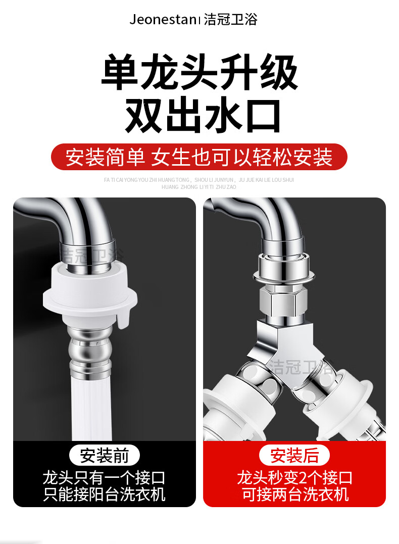 Jeonestan【德国】洗衣机水龙头全铜三通角阀一进二出接头分水器 【塑料卡扣】Y型三通(4分螺纹+4分螺纹)