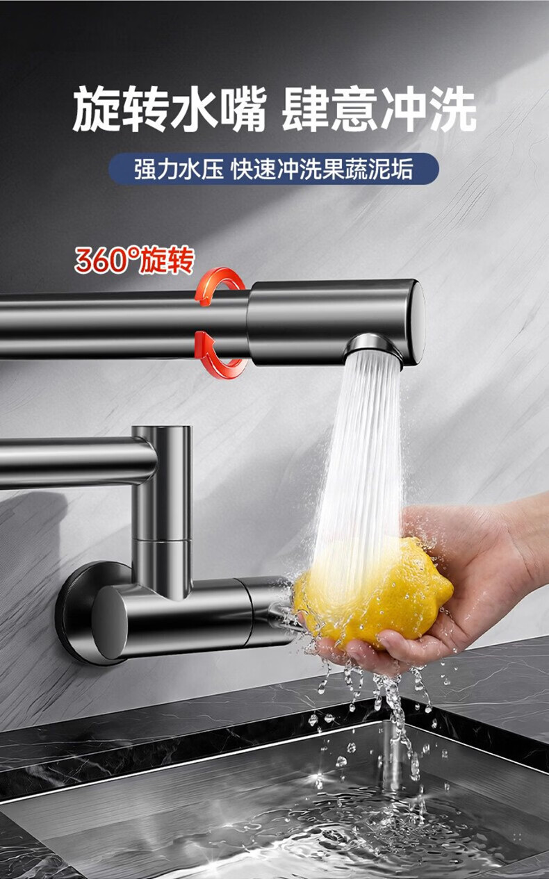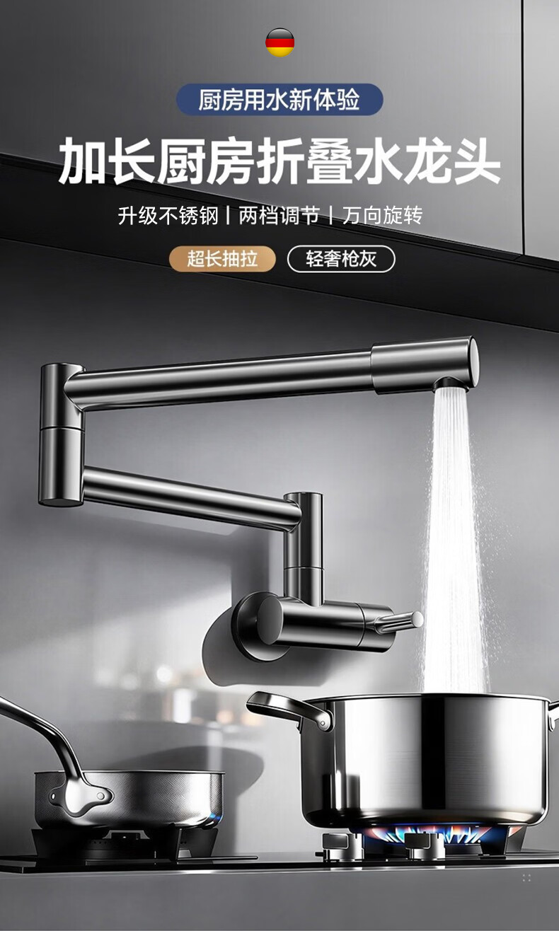 Rosecret【德国】入墙折叠厨房龙头 枪灰色