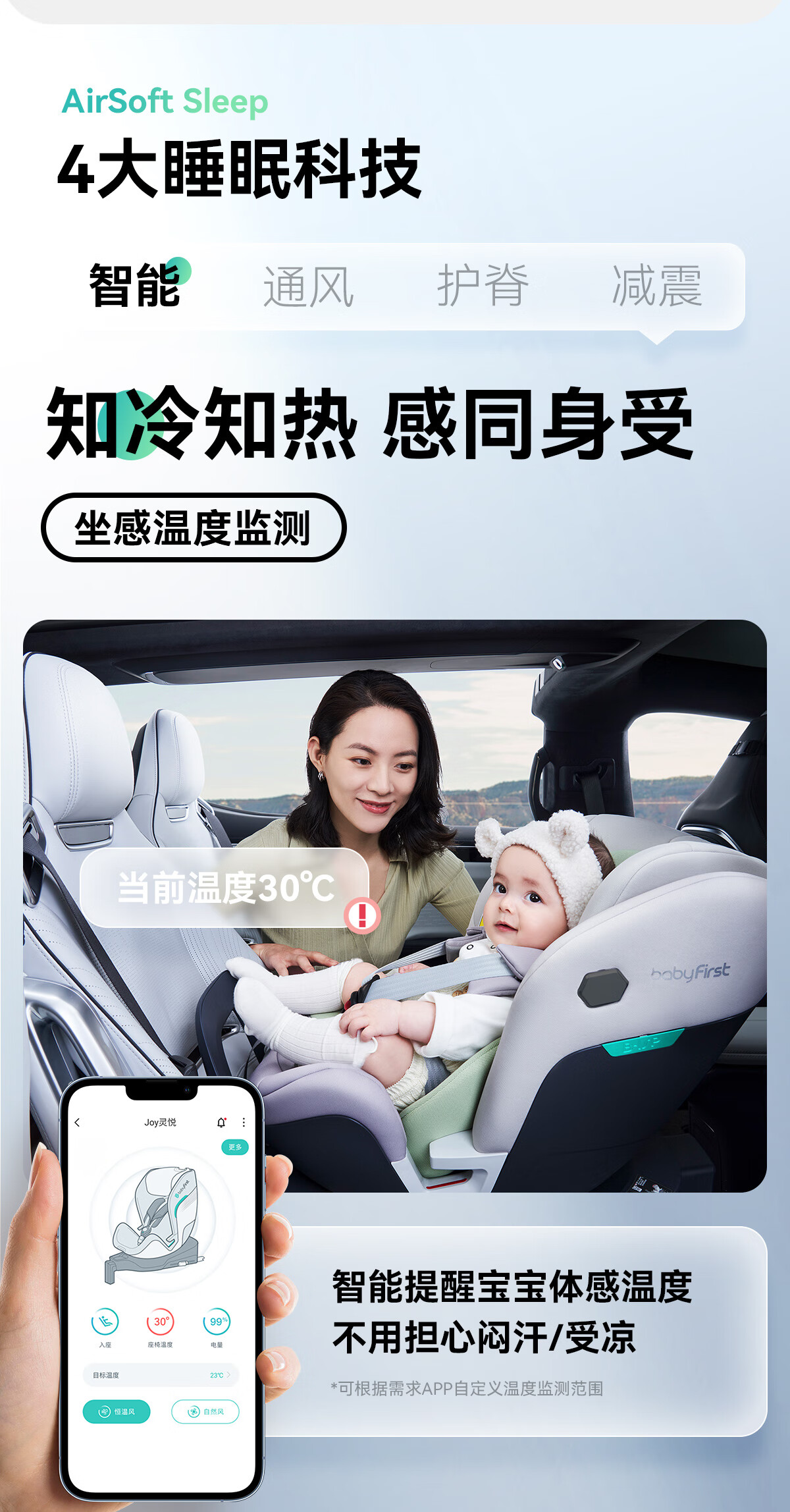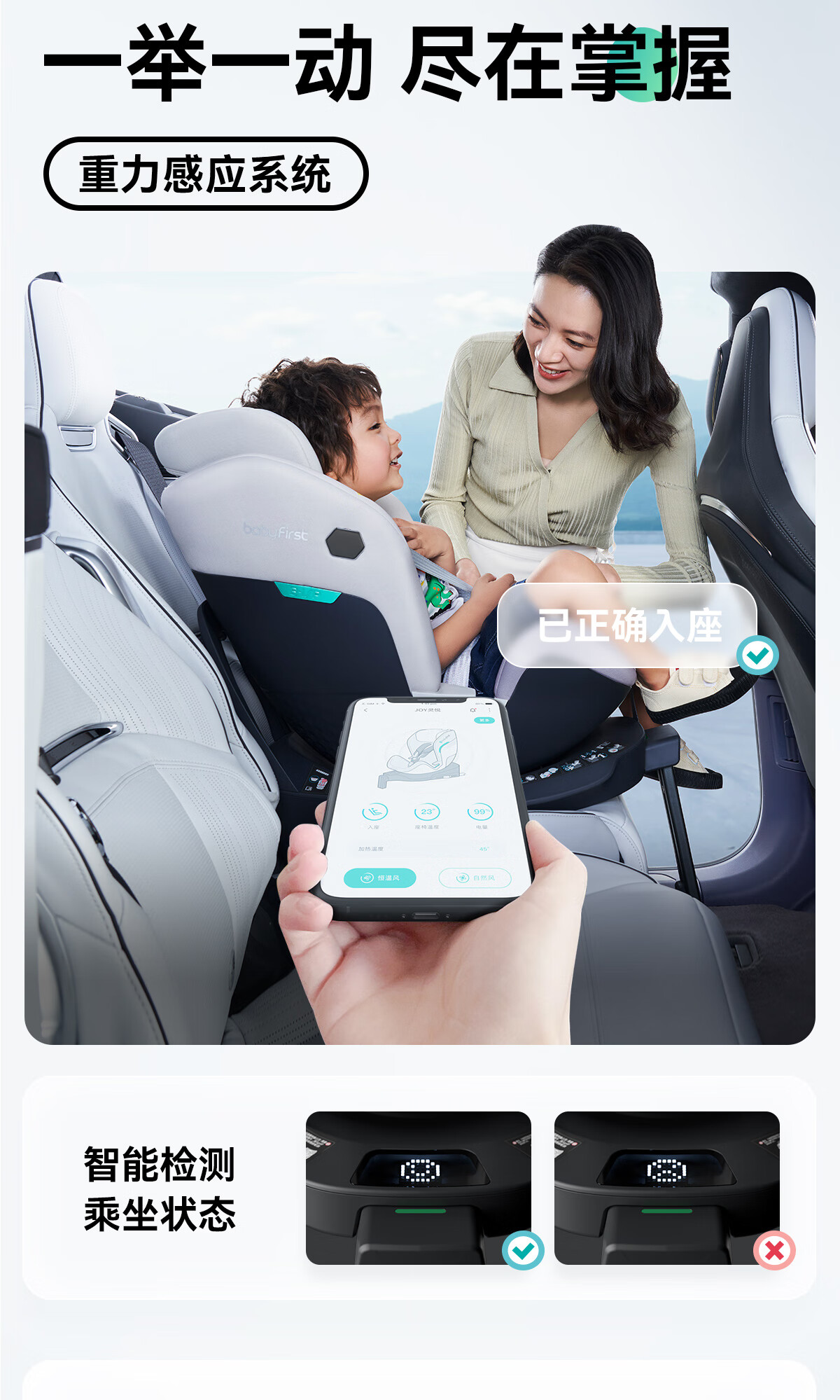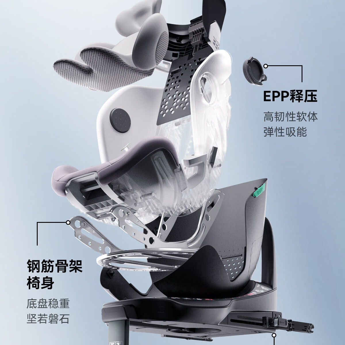 宝贝第一(Babyfirst)灵悦Pro婴儿童宝宝安全座椅汽车用0-4-7岁360度旋转 极地灰R155A