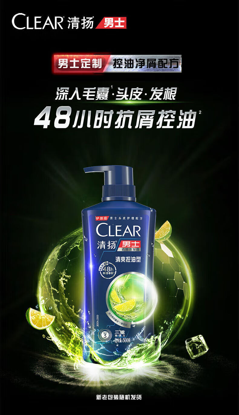 清扬男士去屑洗发水清爽控油活力运动青柠薄荷醇蓬松洗头膏冰感洗发水 清爽柠檬750g*2瓶