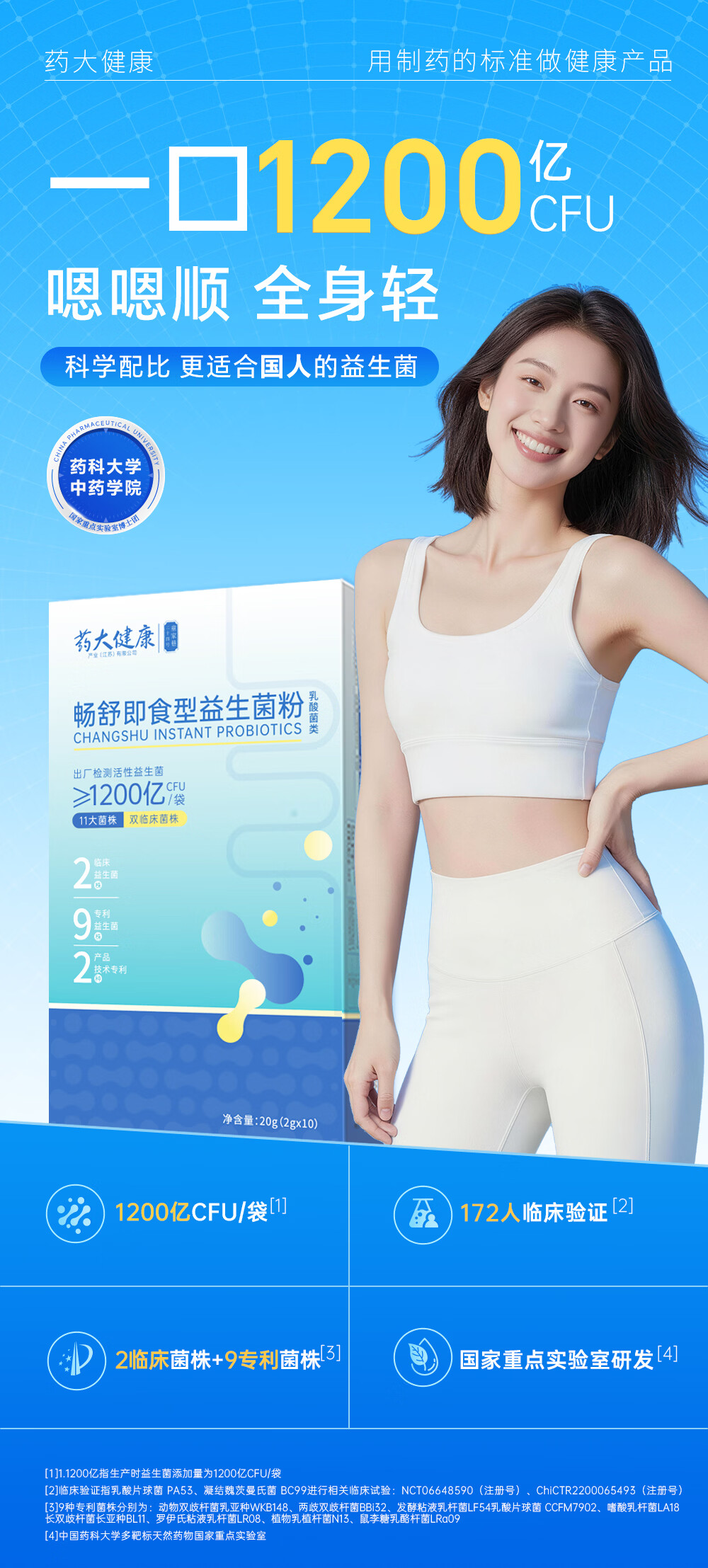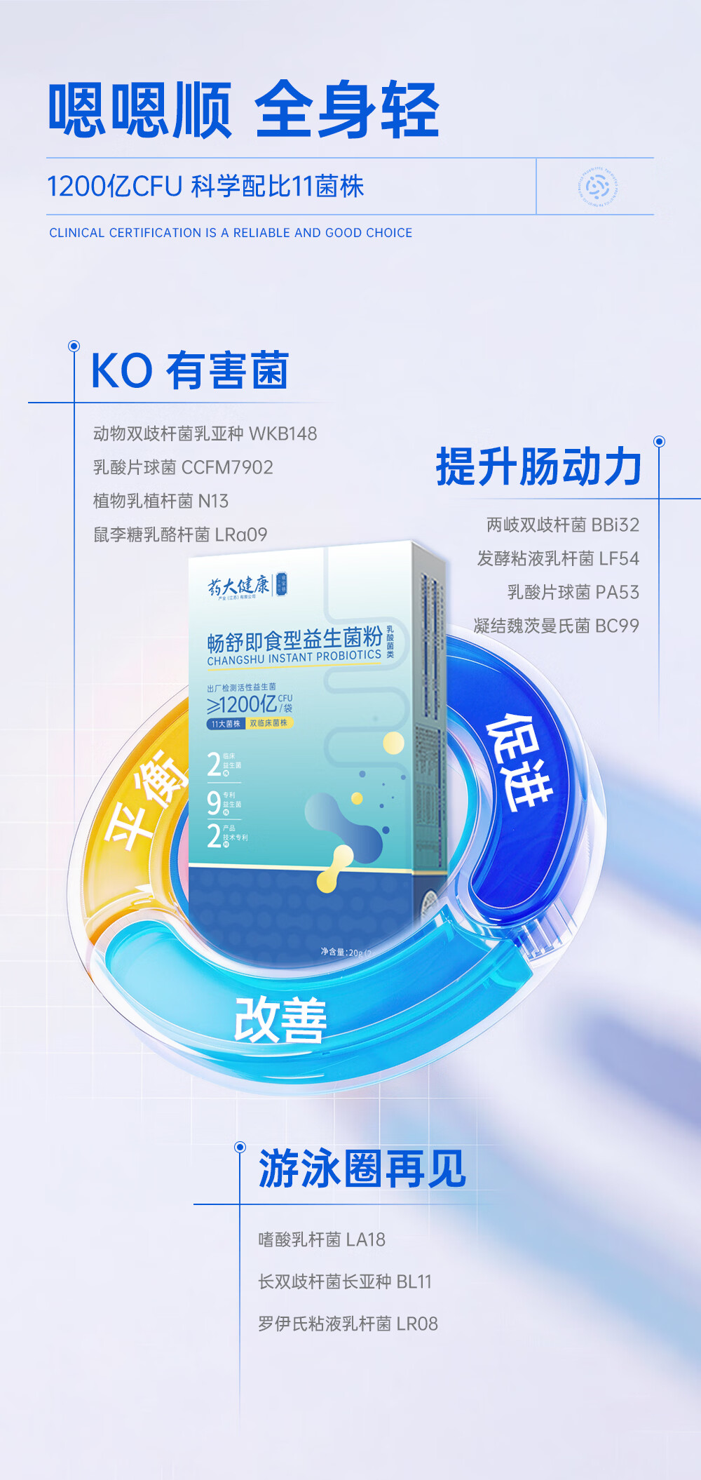 药大健康1200亿益生菌粉畅舒成人肠胃调理 复合11菌株2临床菌株9专利菌株 买8送8【到手16盒】 10袋*8盒
