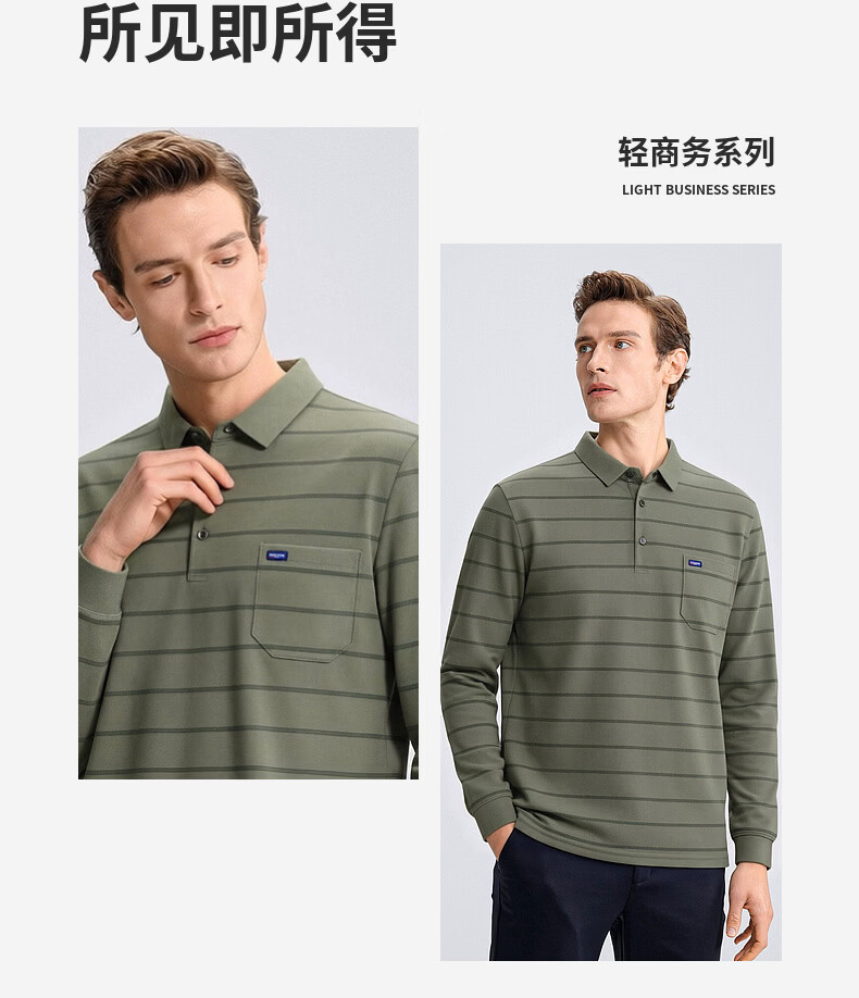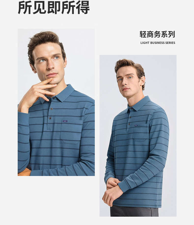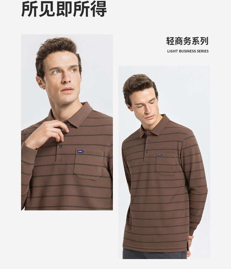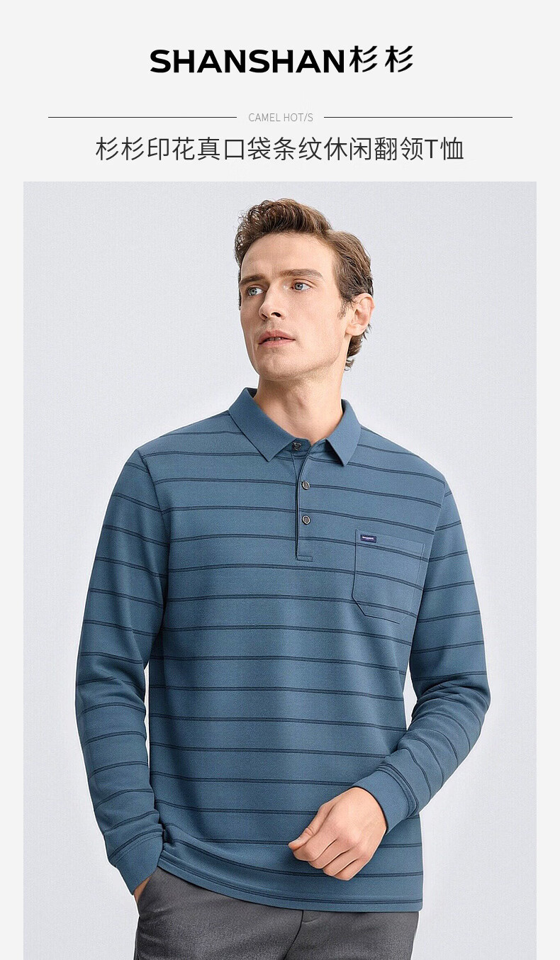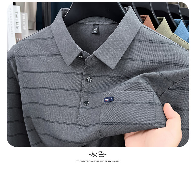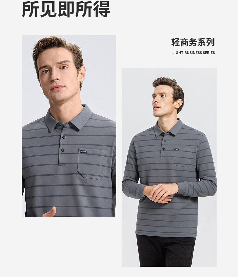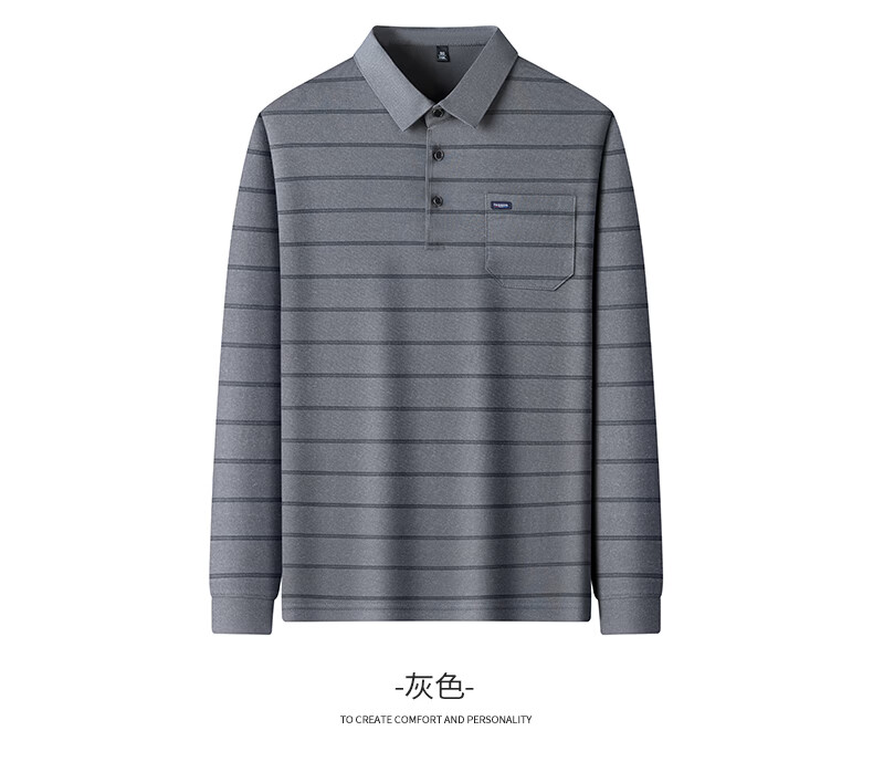 SHANSHAN杉杉【锦氨弹力】长袖t恤男翻领POLO衫简约打底爸爸装通勤春秋 灰色 L /175