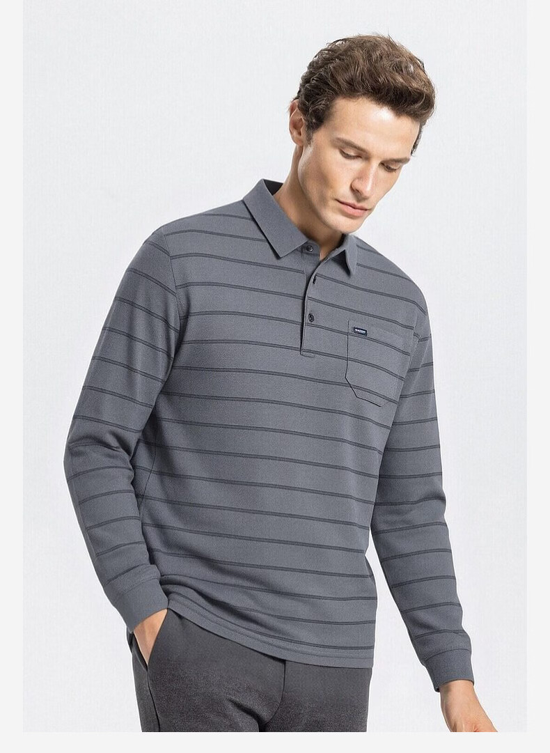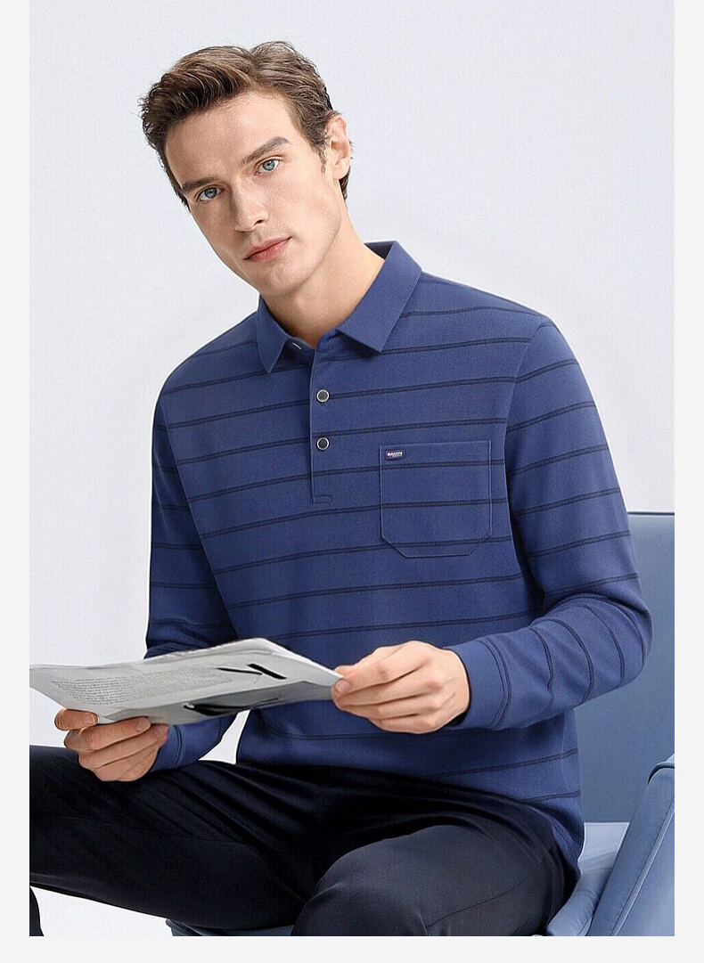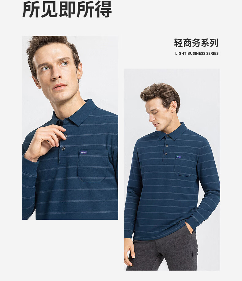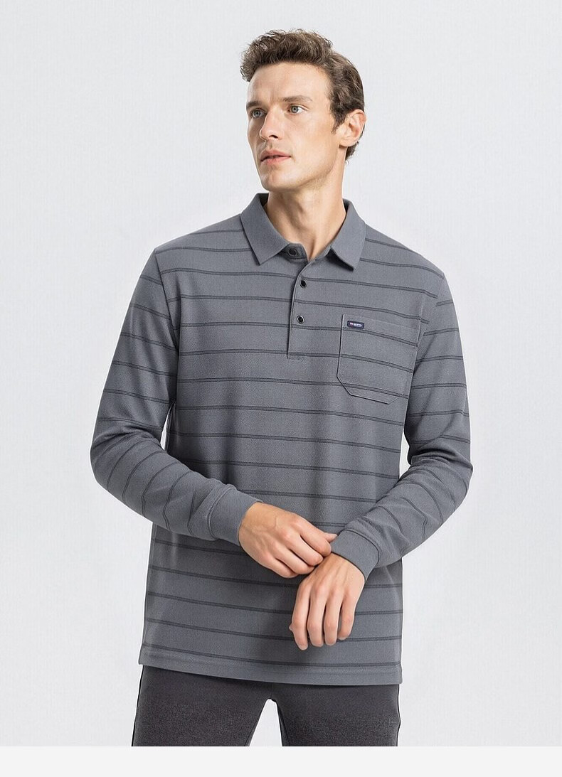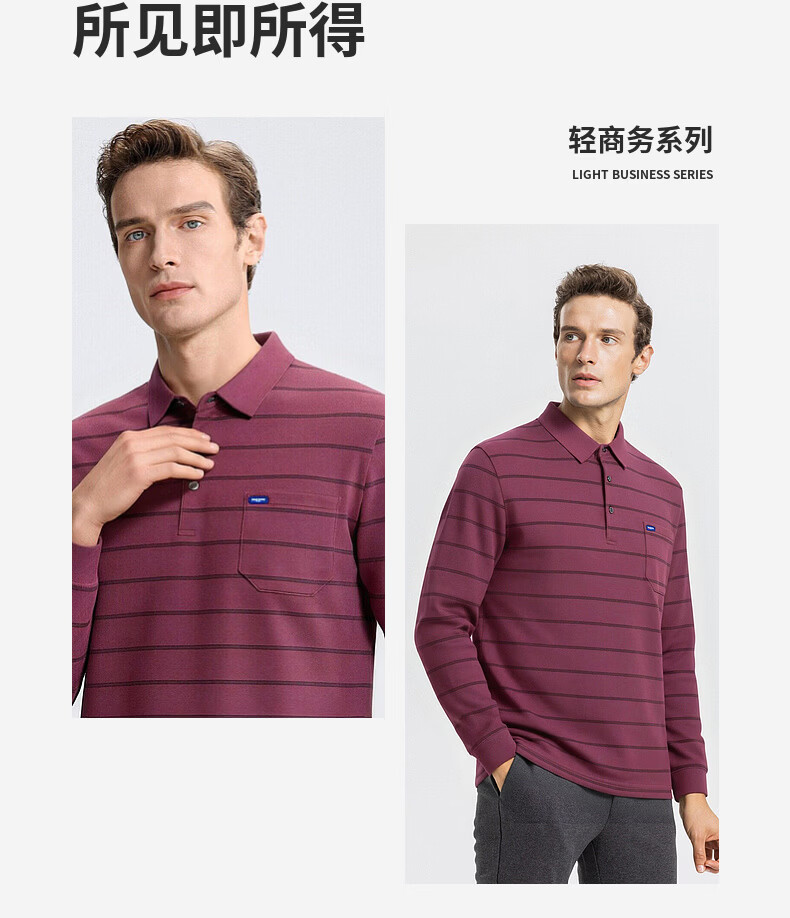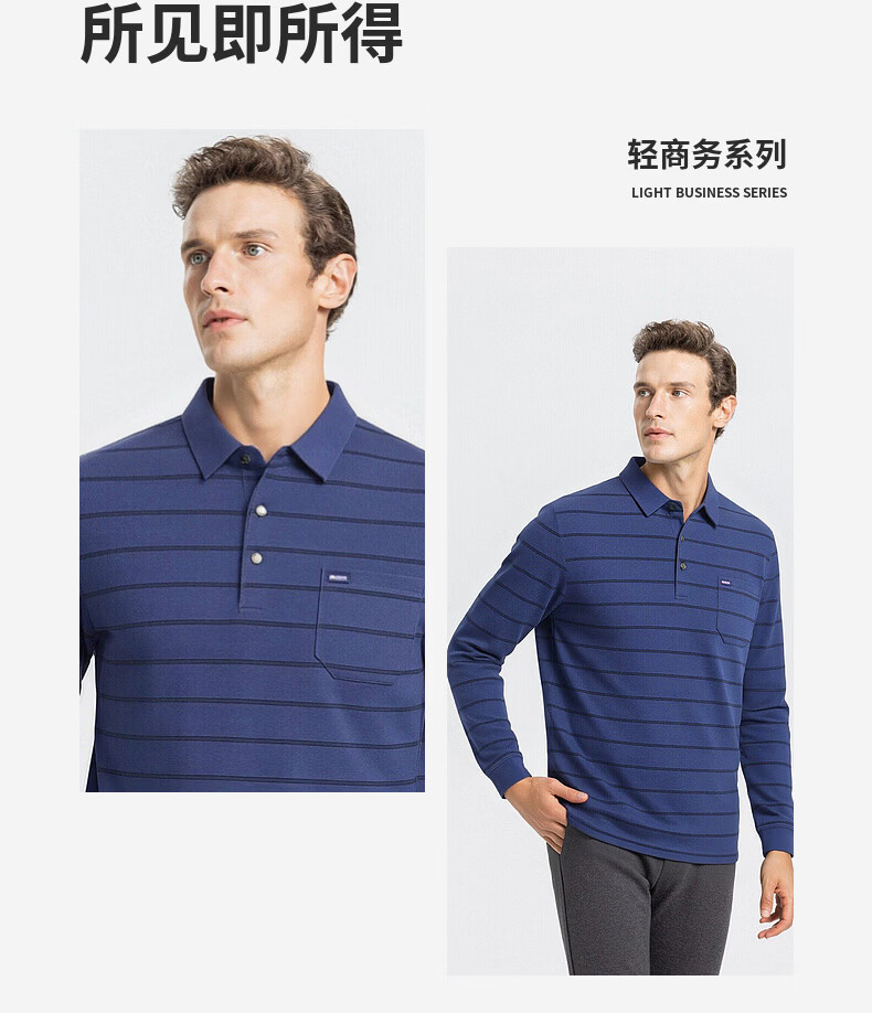 SHANSHAN杉杉【锦氨弹力】长袖t恤男翻领POLO衫简约打底爸爸装通勤春秋 灰色 L /175