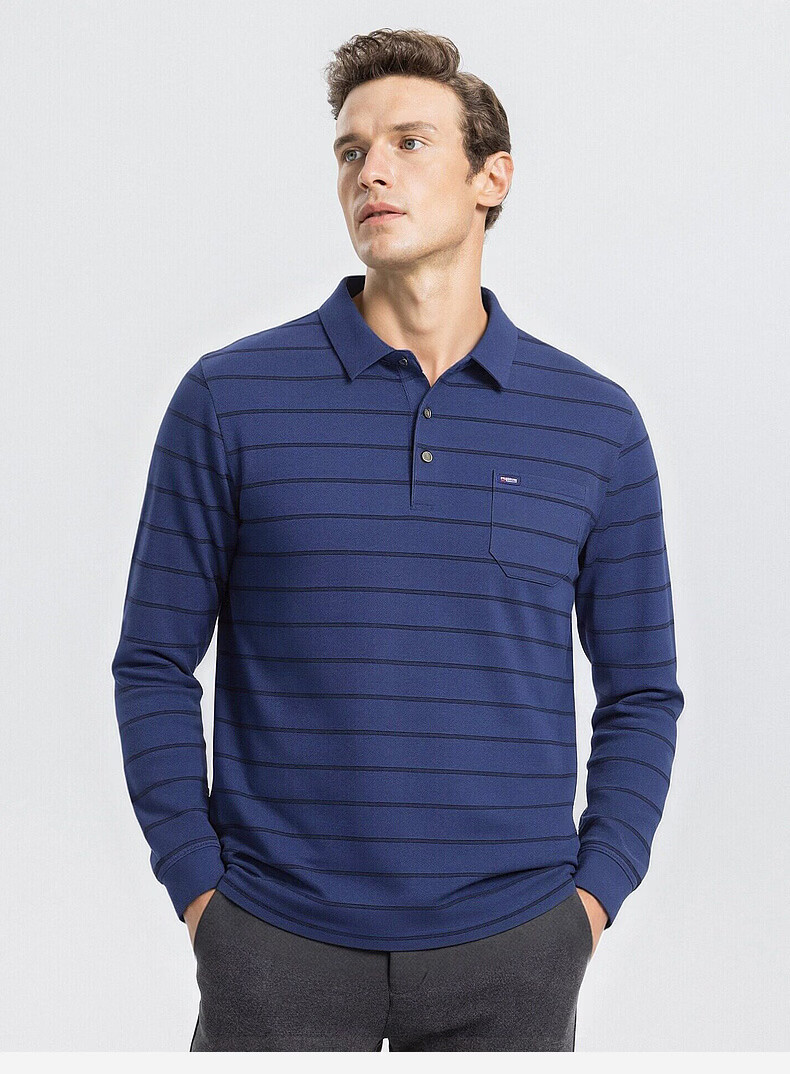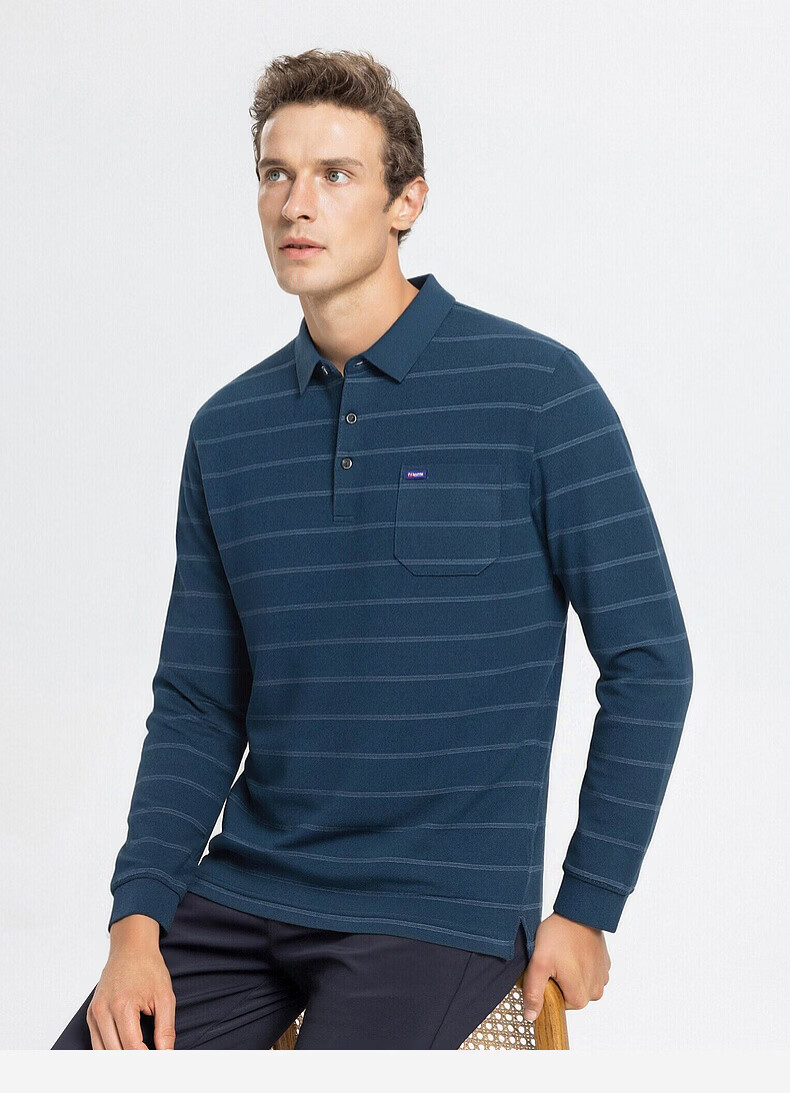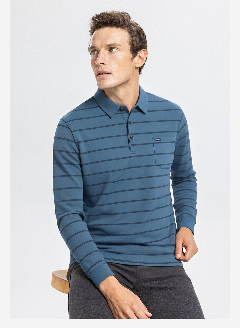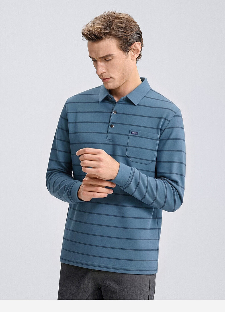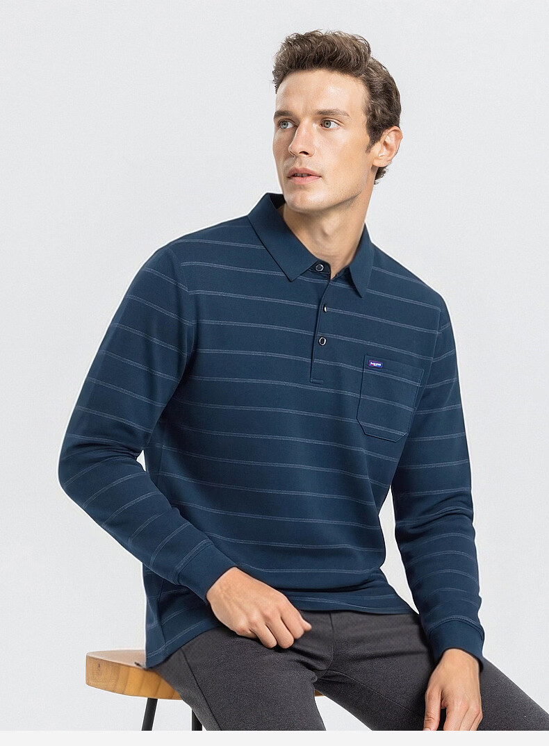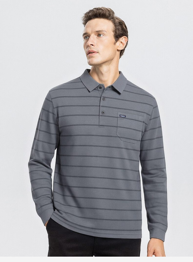 SHANSHAN杉杉【锦氨弹力】长袖t恤男翻领POLO衫简约打底爸爸装通勤春秋 灰色 L /175