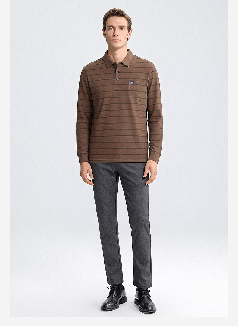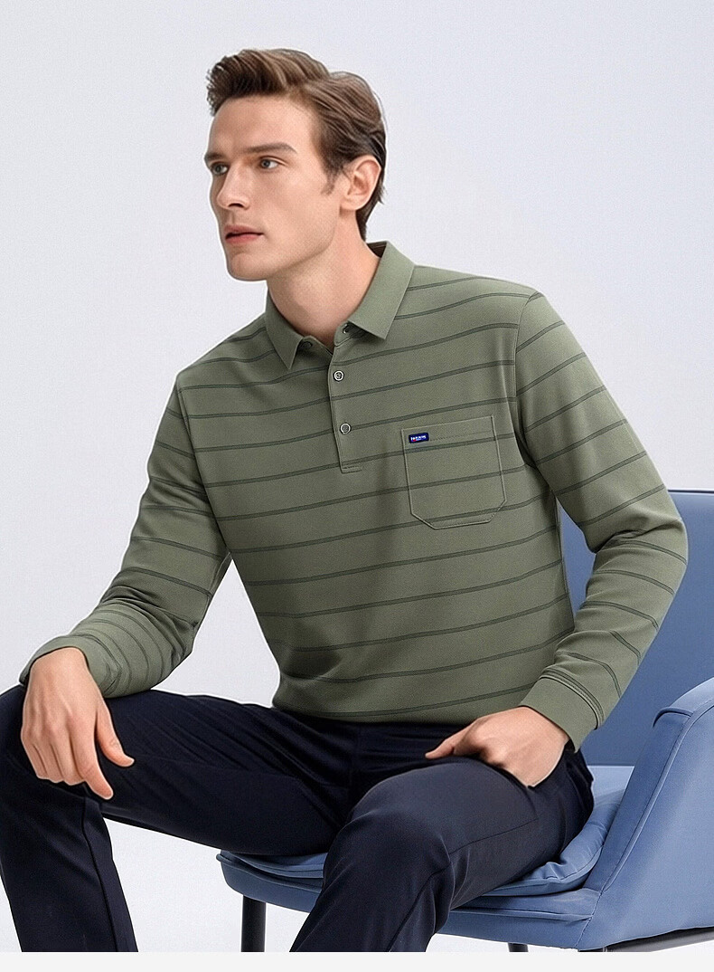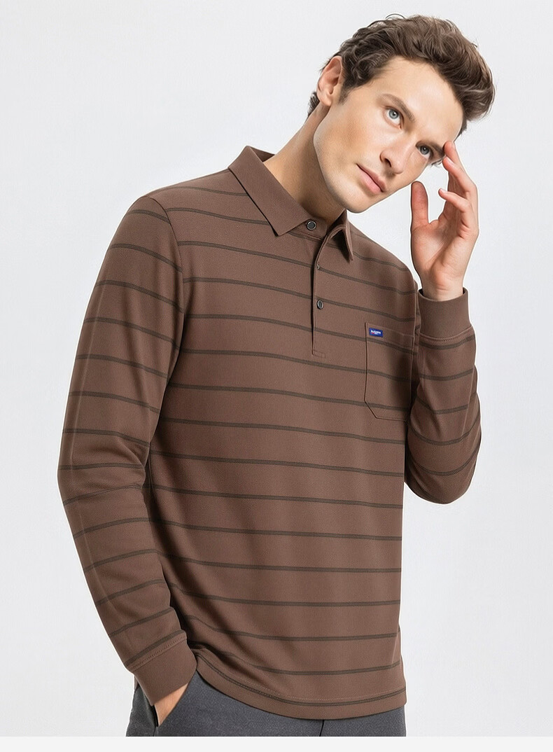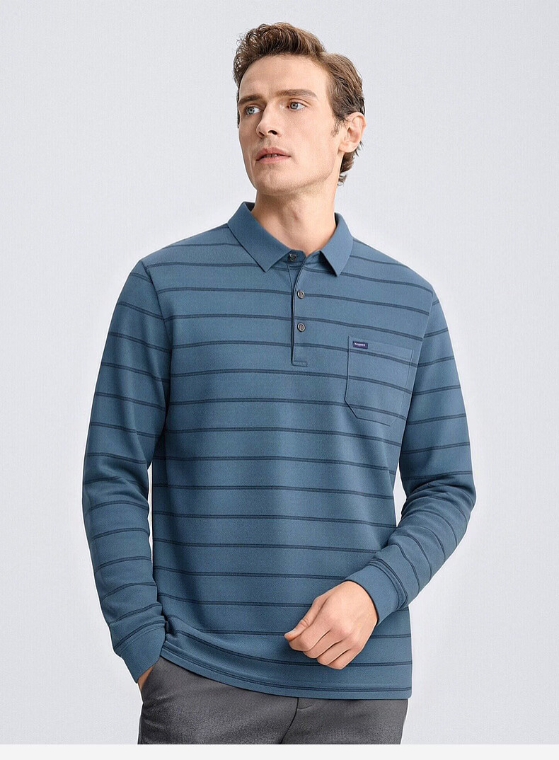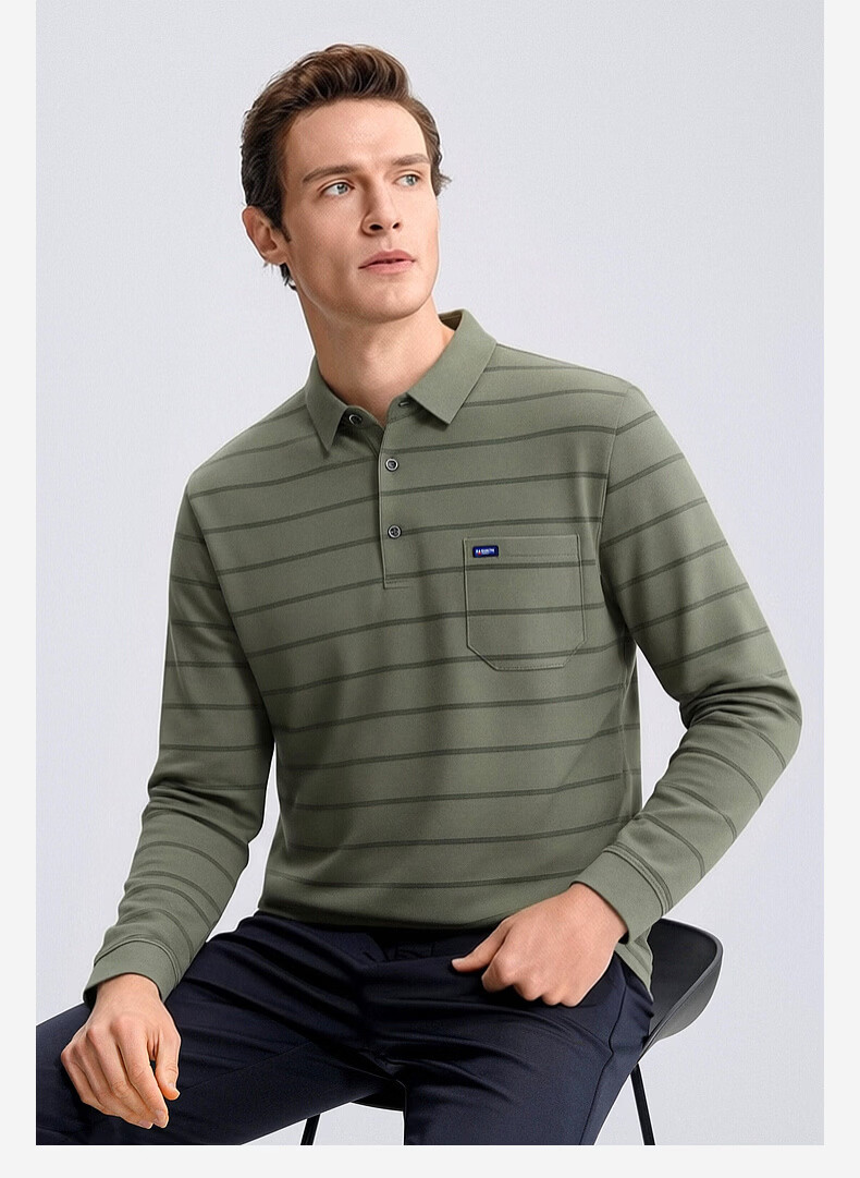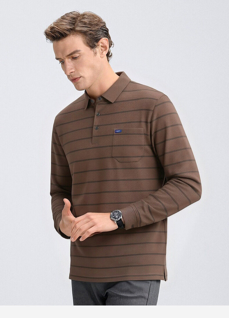 SHANSHAN杉杉【锦氨弹力】长袖t恤男翻领POLO衫简约打底爸爸装通勤春秋 灰色 L /175