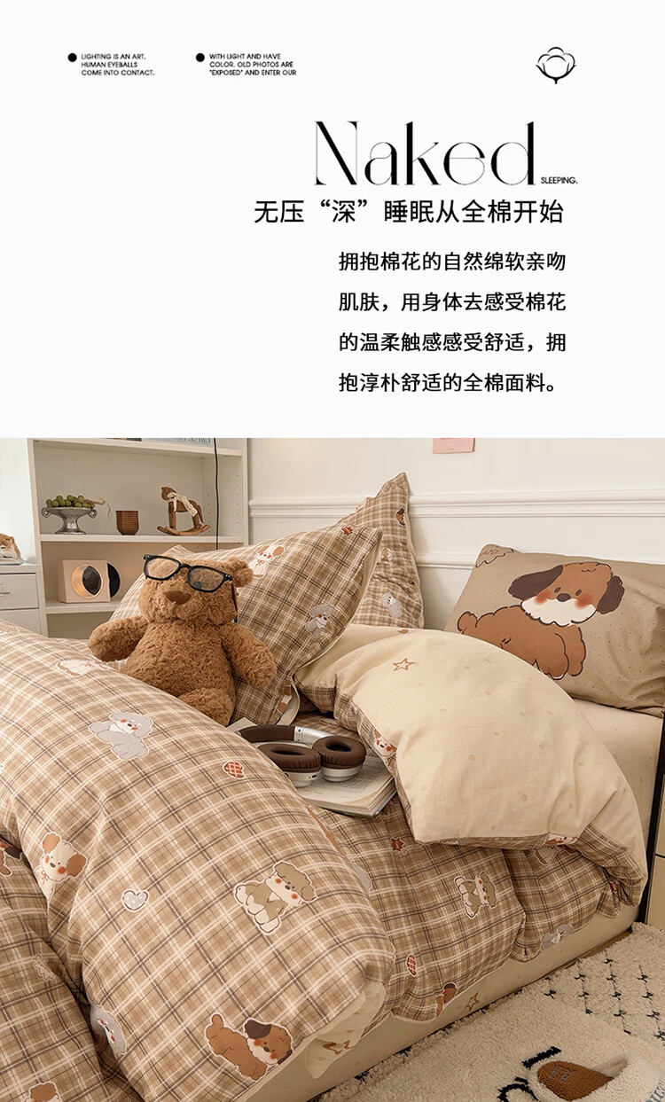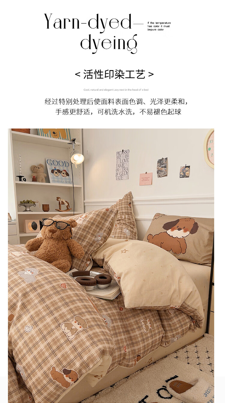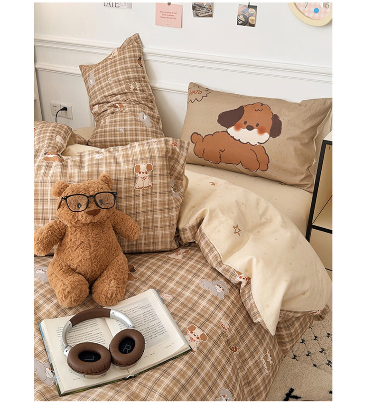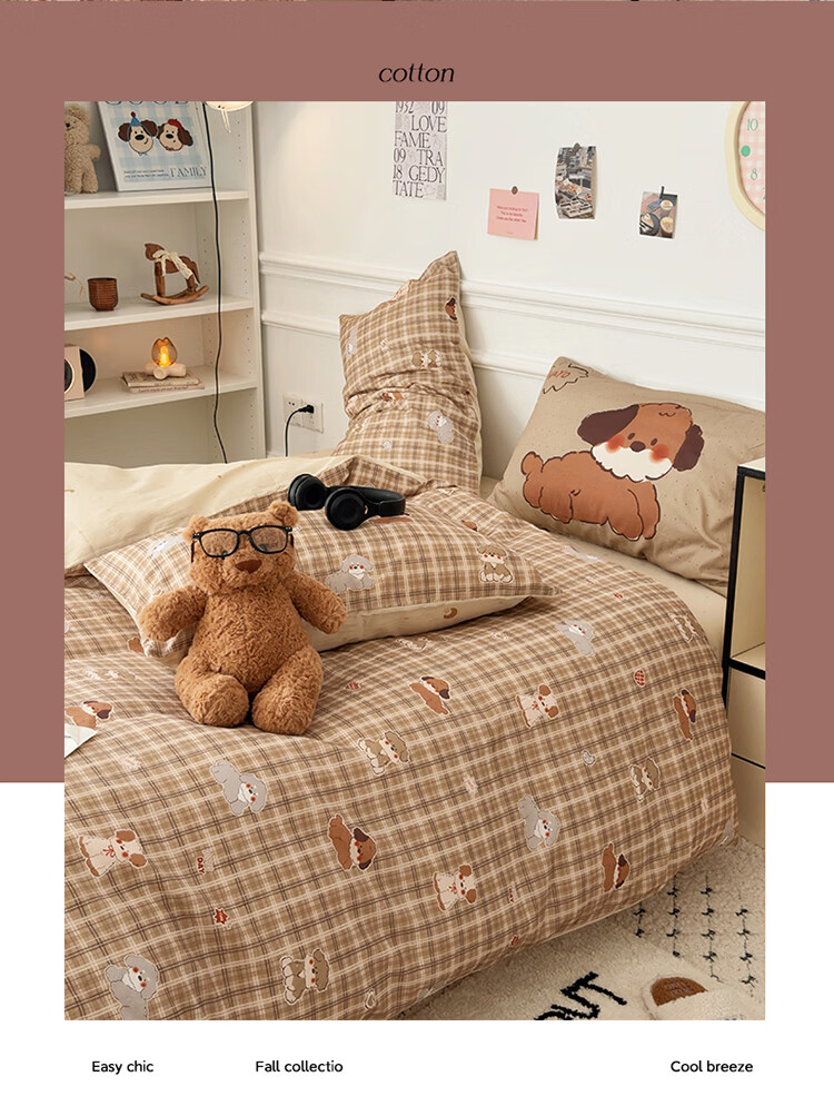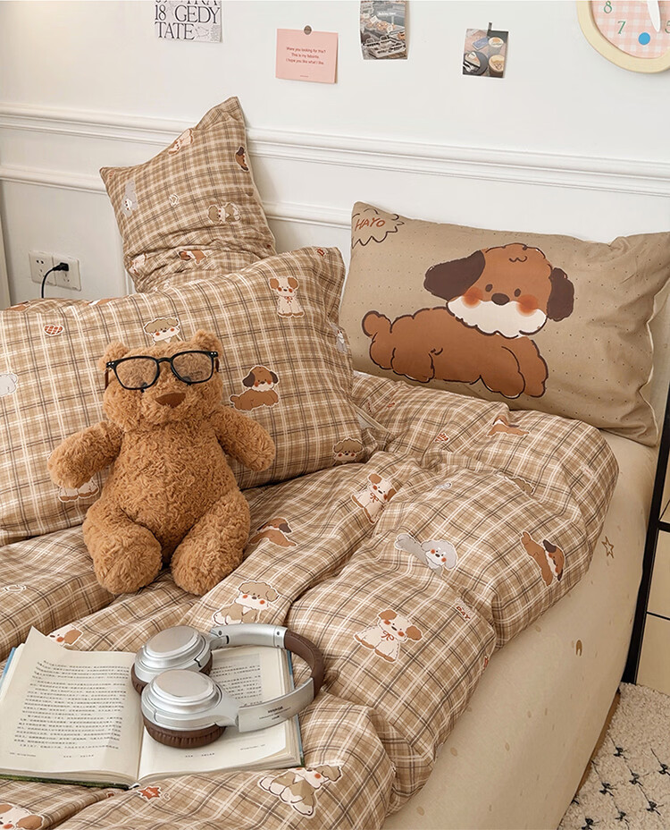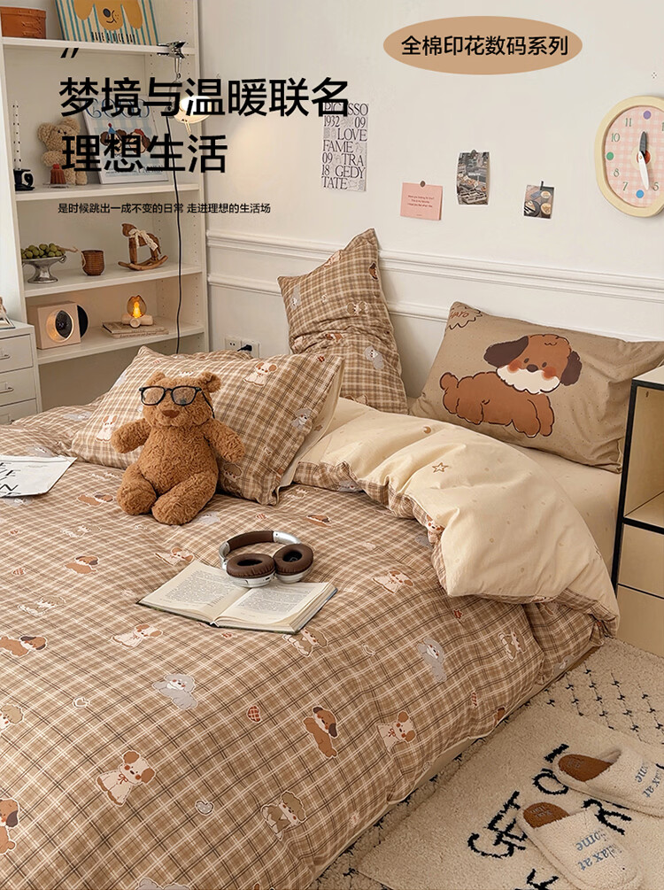 无印良品儿童全棉床上四件套纯棉卡通四季裸睡家用床单被套罩床笠款三件套 英伦小汪【亲肤柔软 100%全棉】 1.8m 床单款 四件套-被套200x230cm