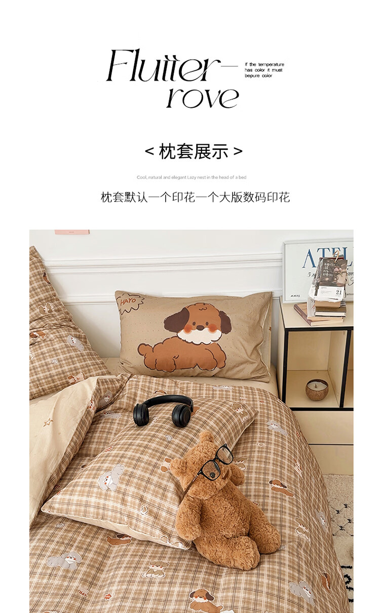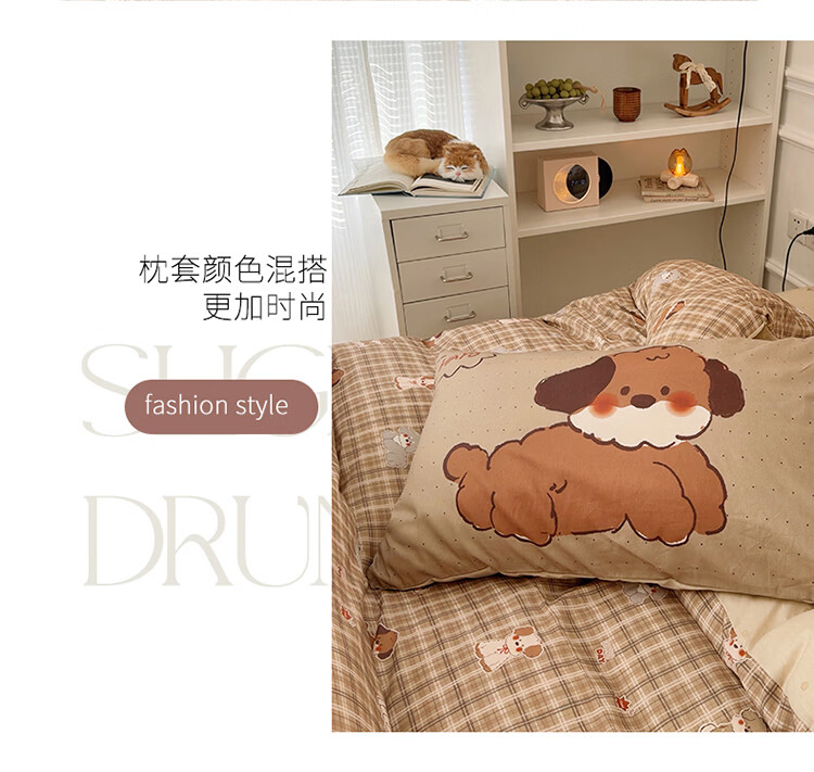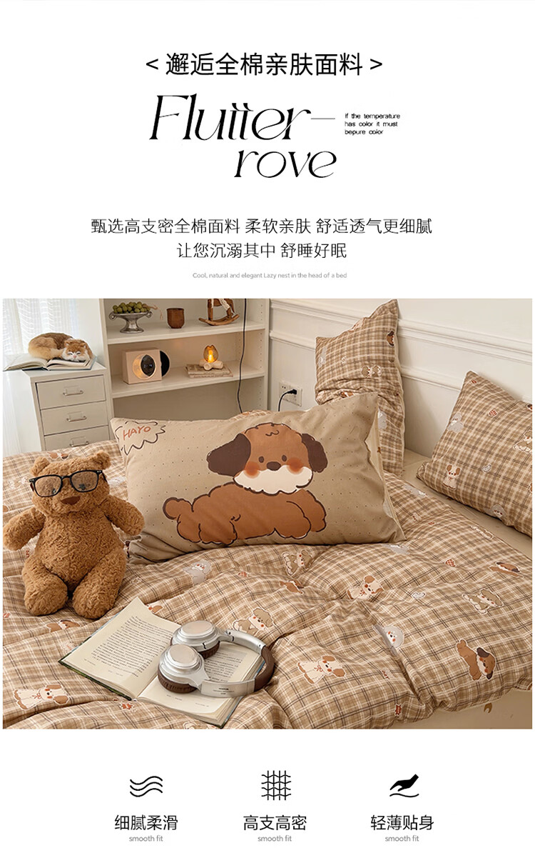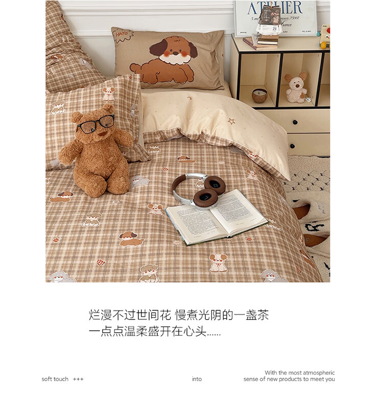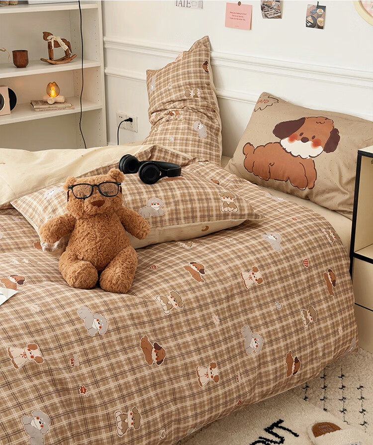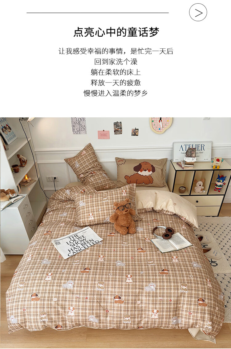 无印良品儿童全棉床上四件套纯棉卡通四季裸睡家用床单被套罩床笠款三件套 英伦小汪【亲肤柔软 100%全棉】 1.8m 床单款 四件套-被套200x230cm