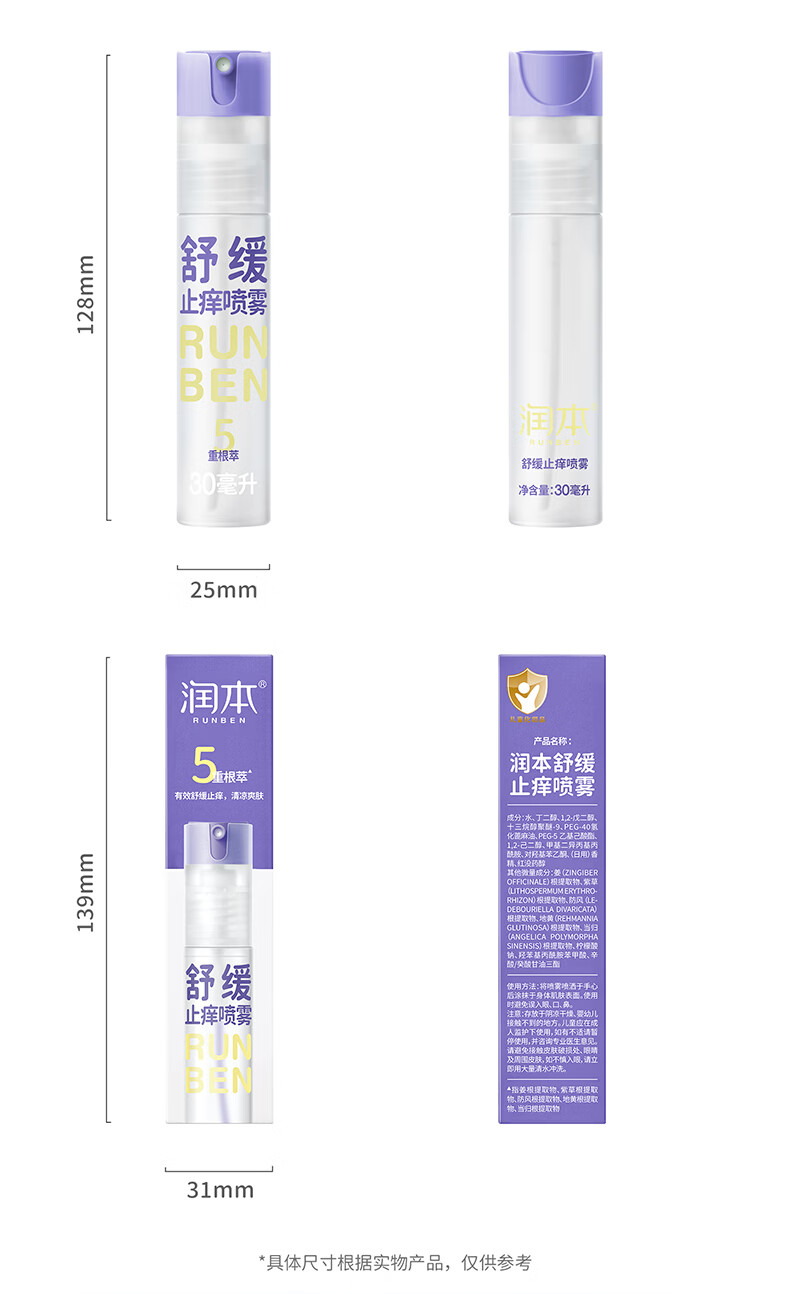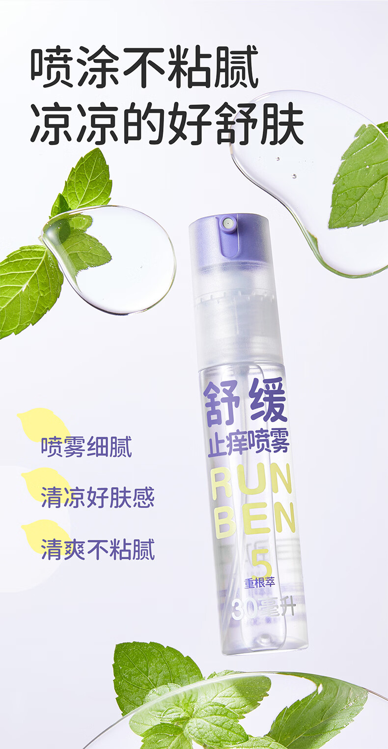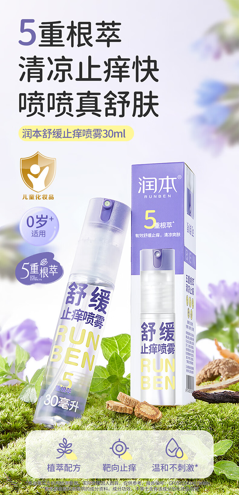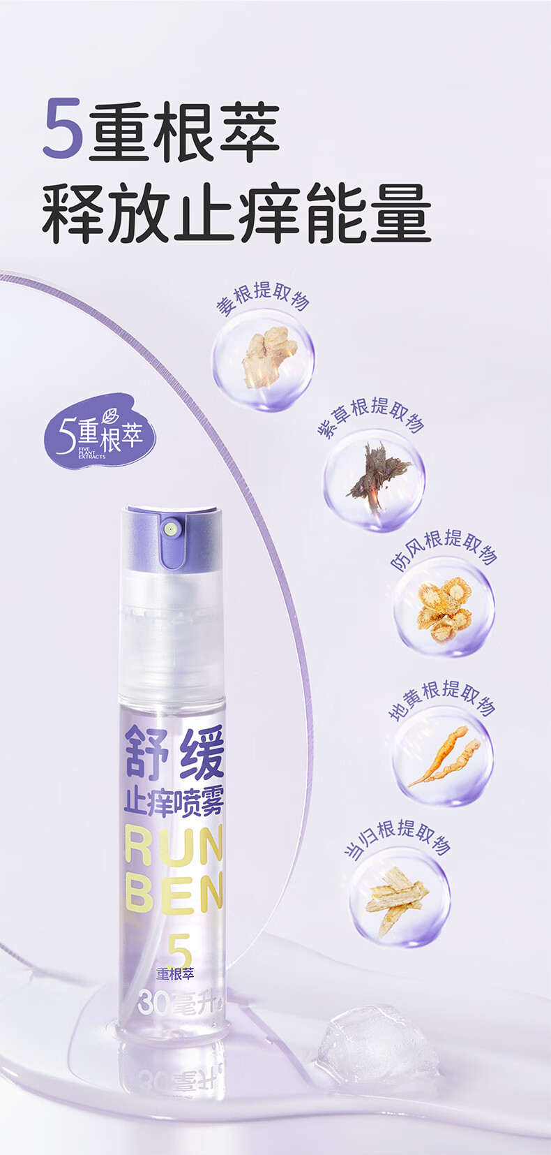 润本紫草舒缓止痒喷雾30ml 户外游玩便携紫草膏舒缓蚊虫叮咬清凉消包