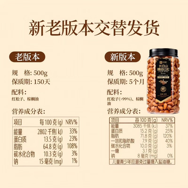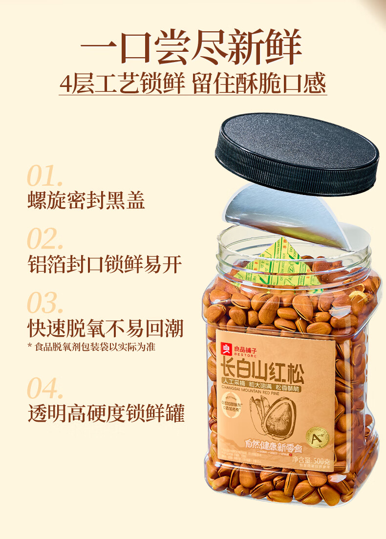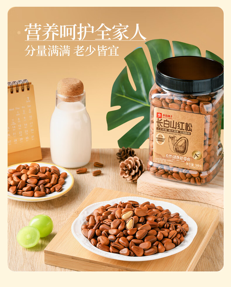 良品铺子长白山红松500g A++级东北手剥松子仁大颗粒坚果零食企业送礼团购
