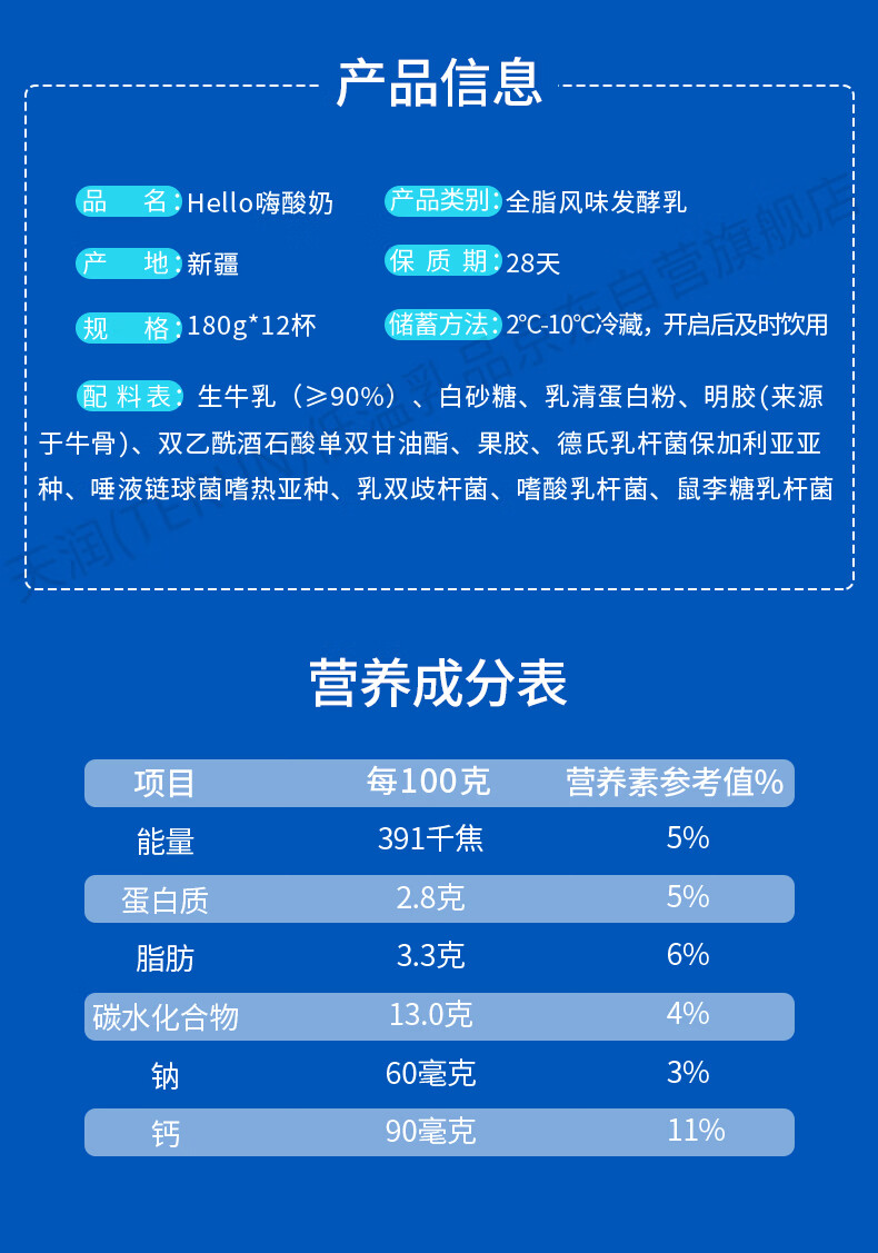 天润新疆特产 经典原味低温酸奶杯装 180g*12杯