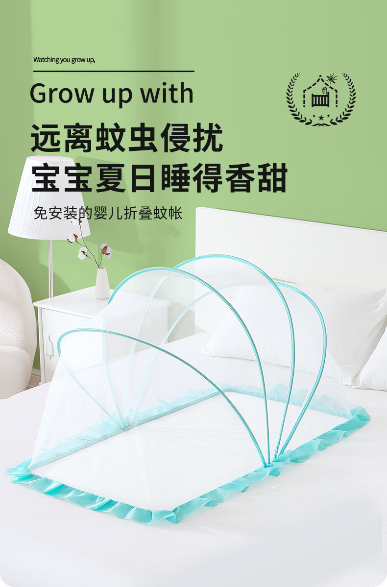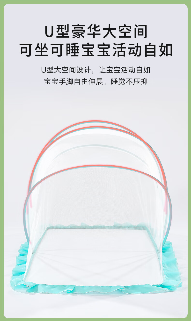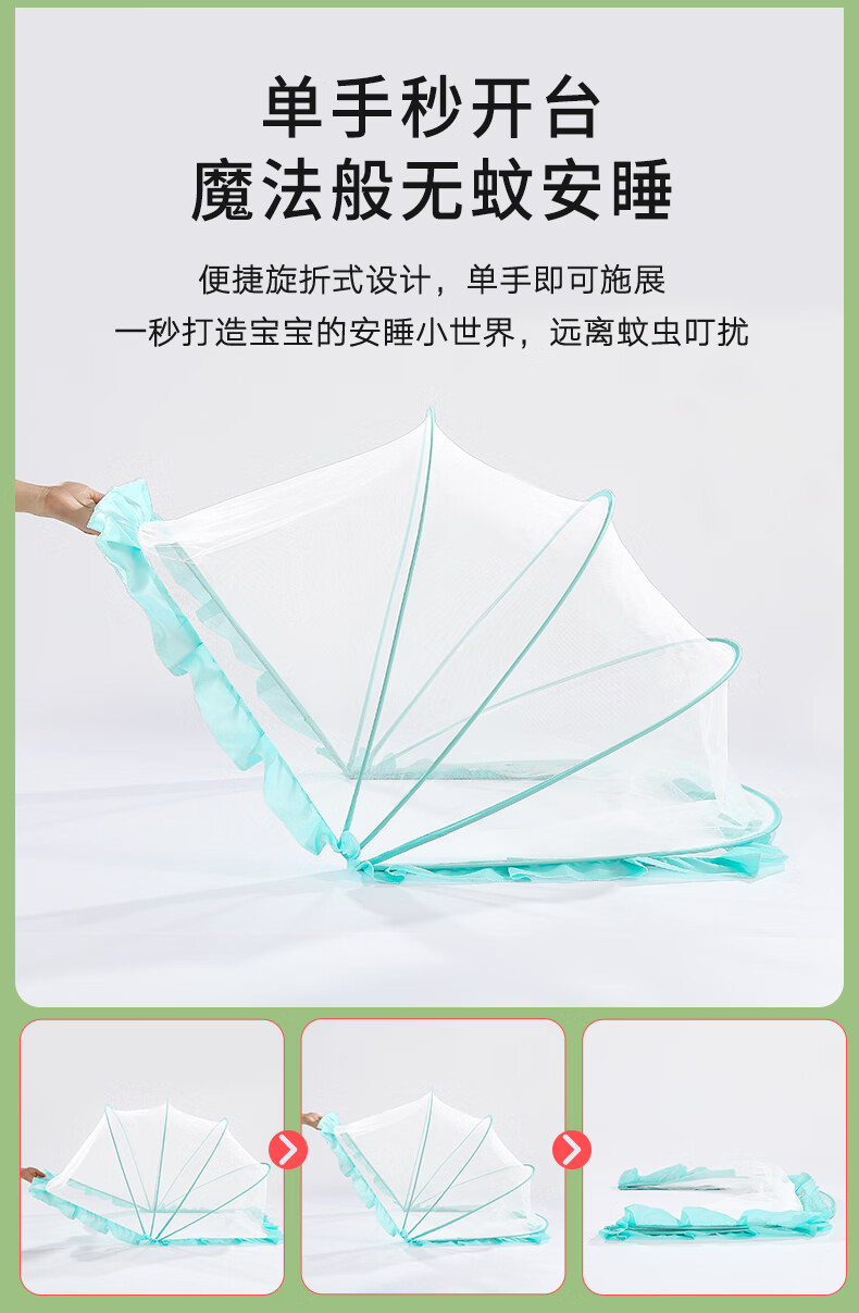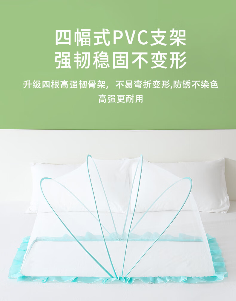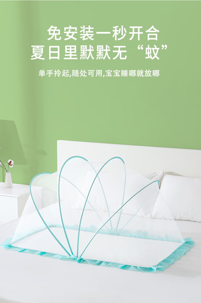 南极人婴儿童蚊帐罩可折叠宝宝防蚊罩婴儿床全罩式通用蒙古包 绿色大号