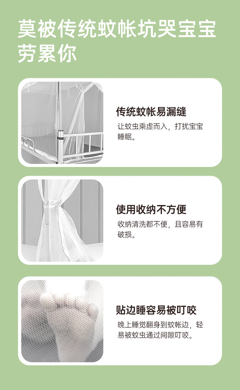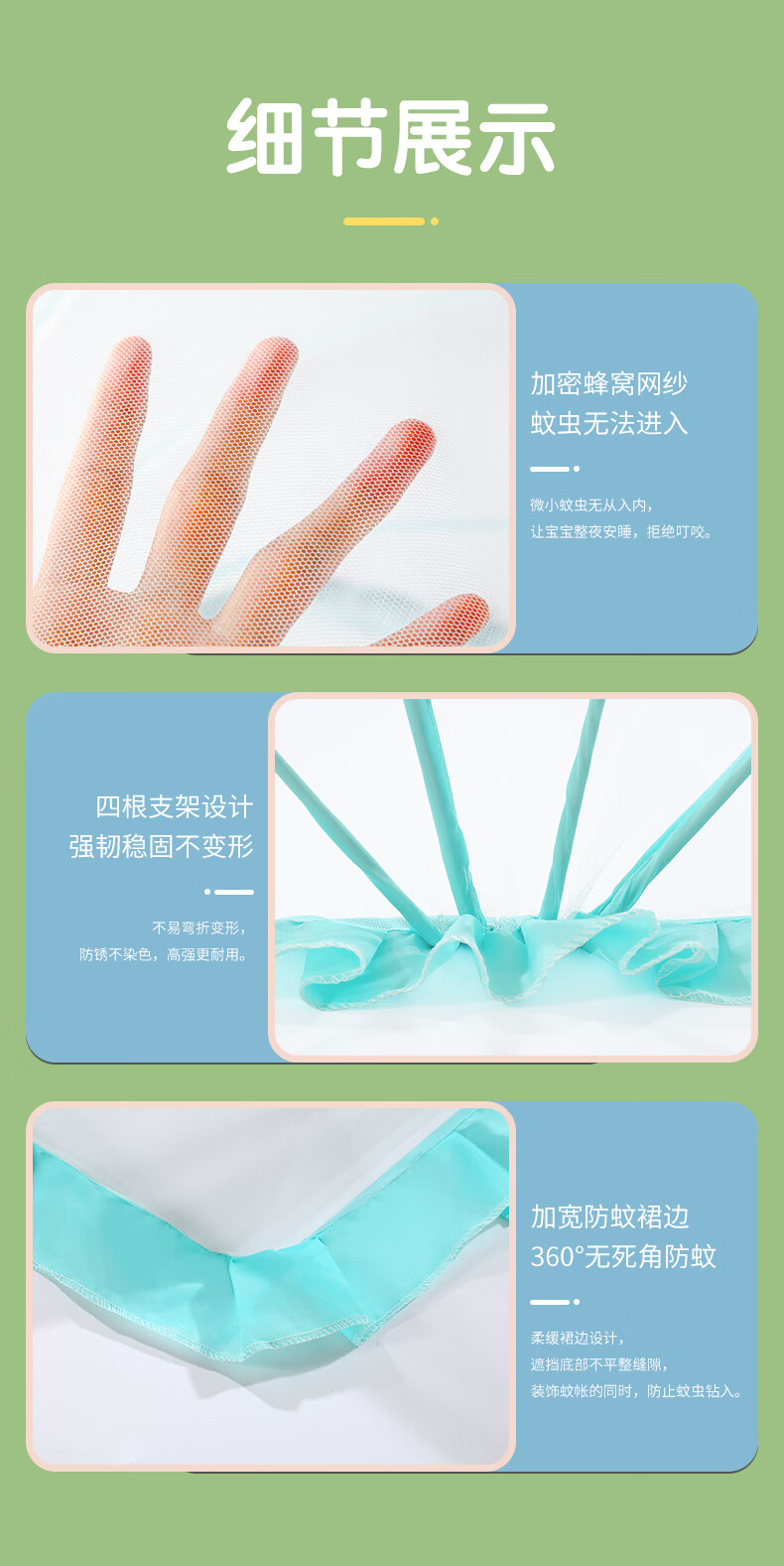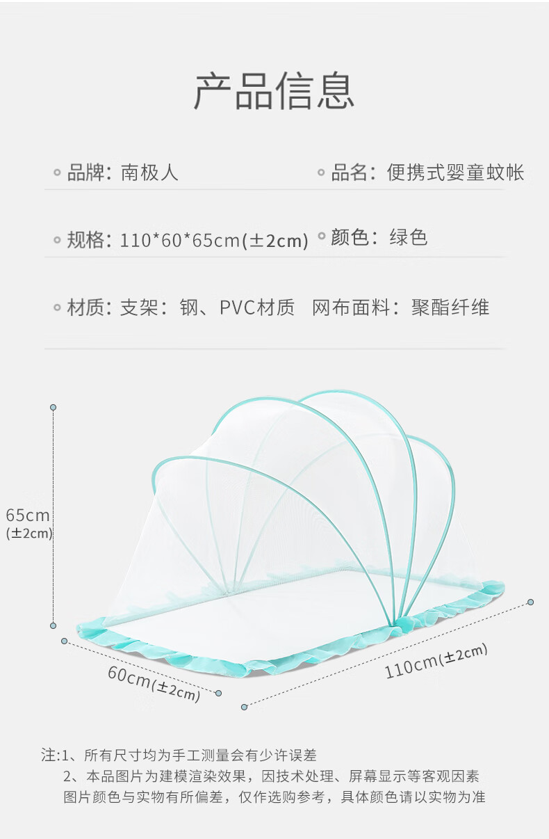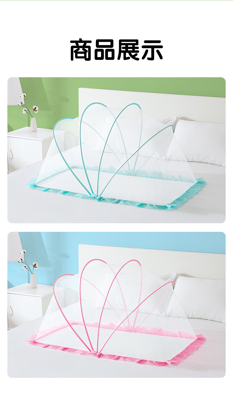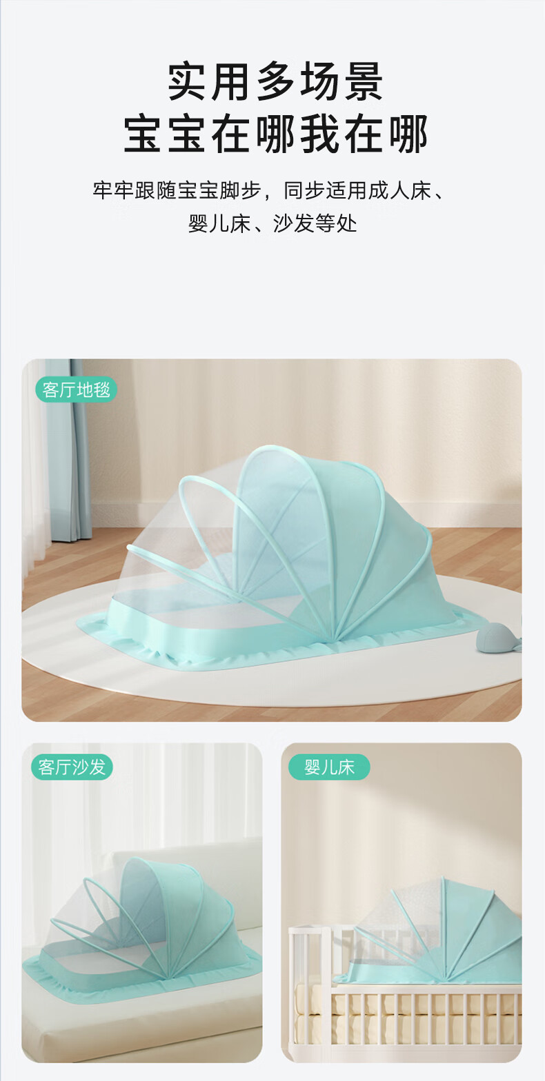 南极人婴儿童蚊帐罩可折叠宝宝防蚊罩婴儿床全罩式通用蒙古包 绿色大号