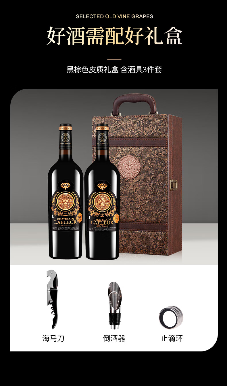 拉斐【旗舰店】法国原瓶进口红酒礼盒干红葡萄酒2瓶红酒750ml*2 拉斐金钻96红酒礼盒装