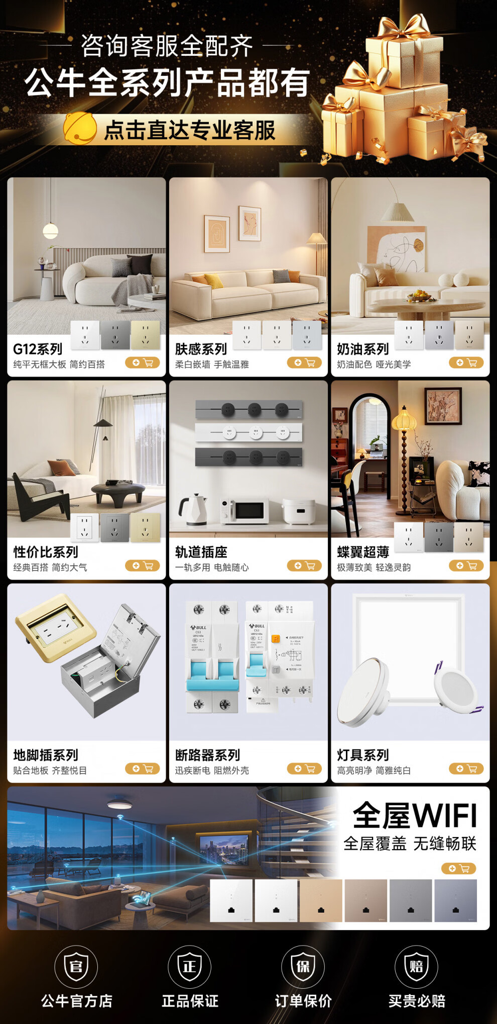 公牛开关插座86型暗装一开五孔USB五孔16A墙壁面板单开双控家用白 正五孔