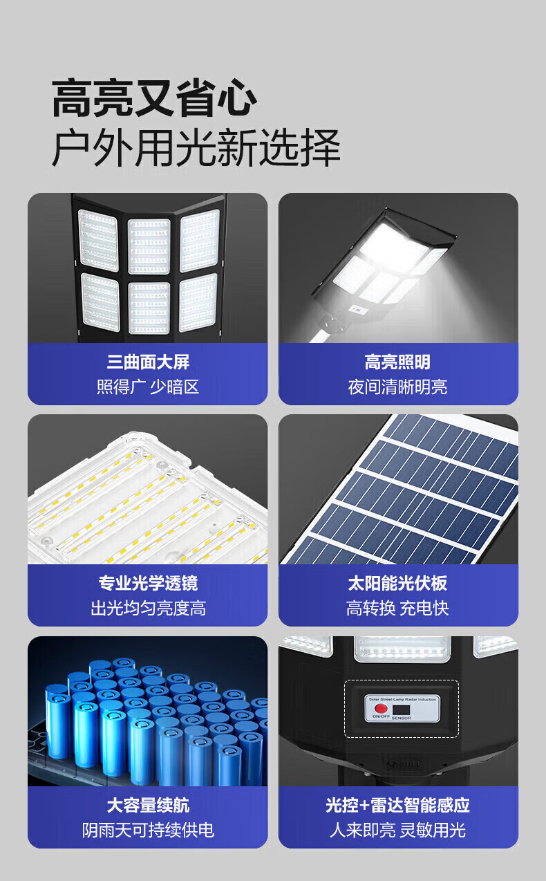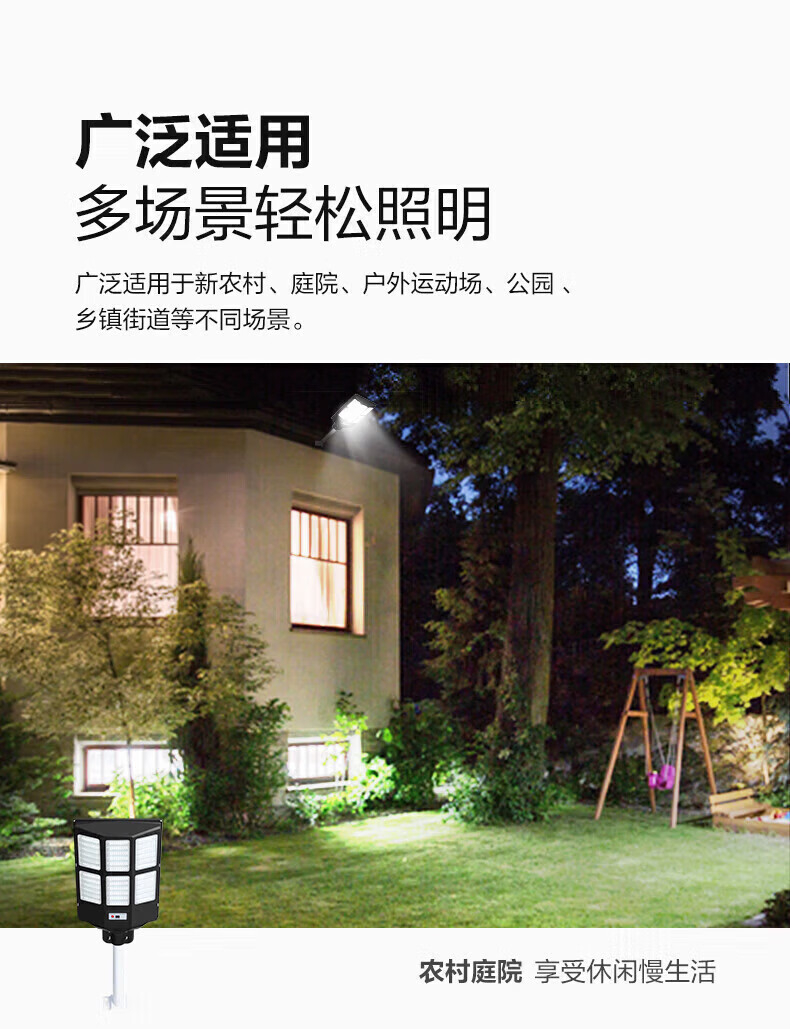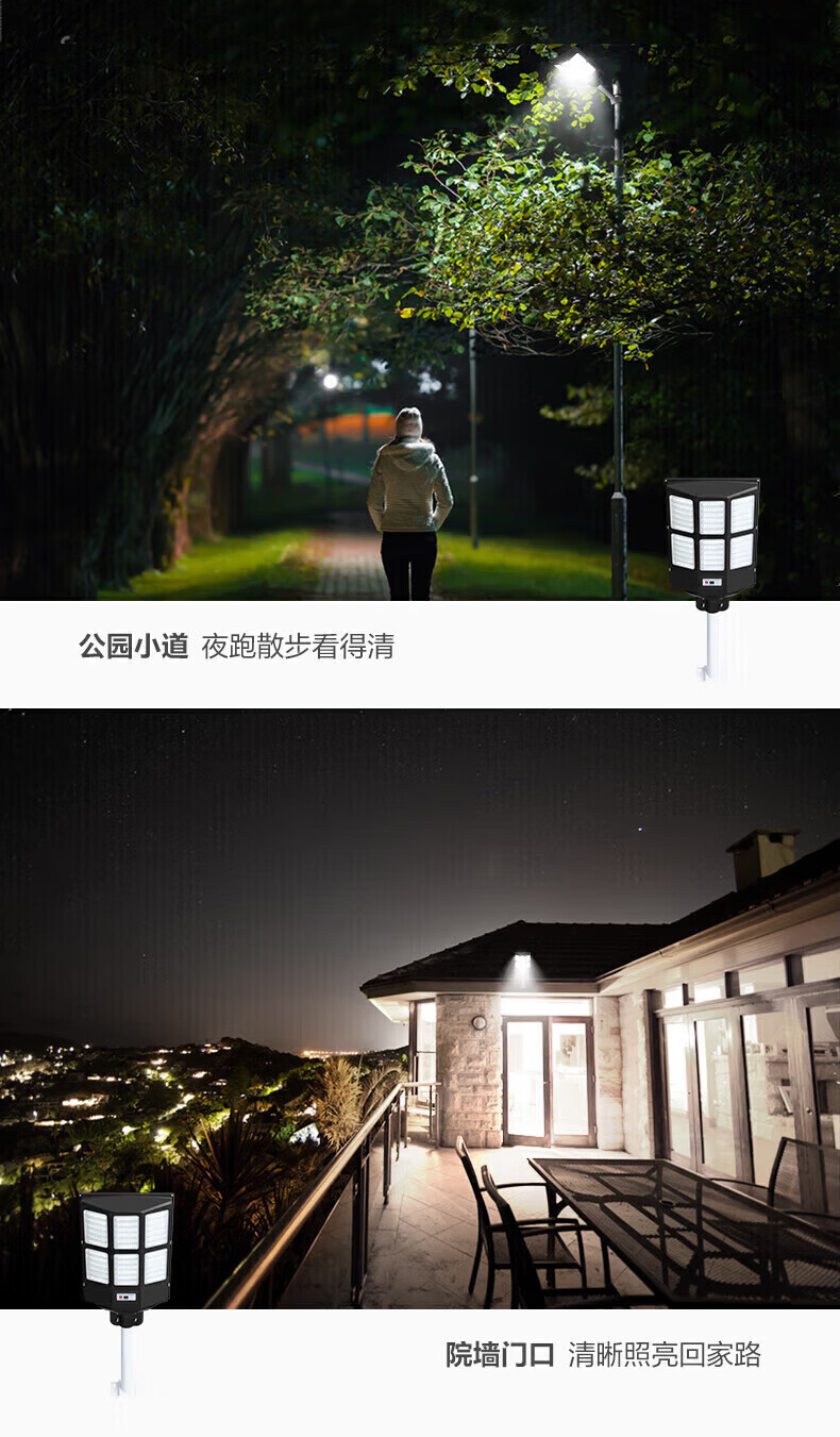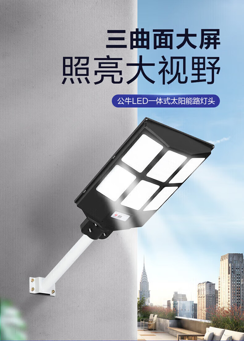 公牛太阳能户外照明灯 庭院灯农村院子家用防雨大功率路灯LED室外射灯 【遥控+光感】300W丨约照240㎡