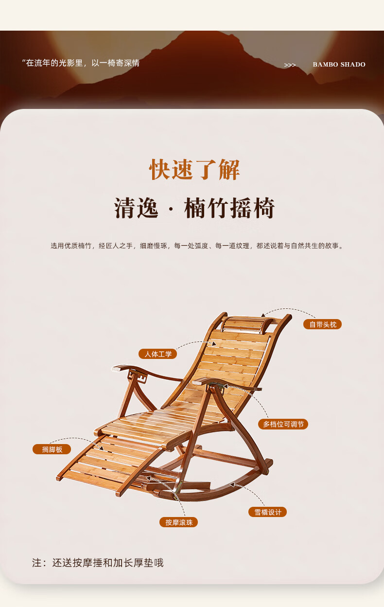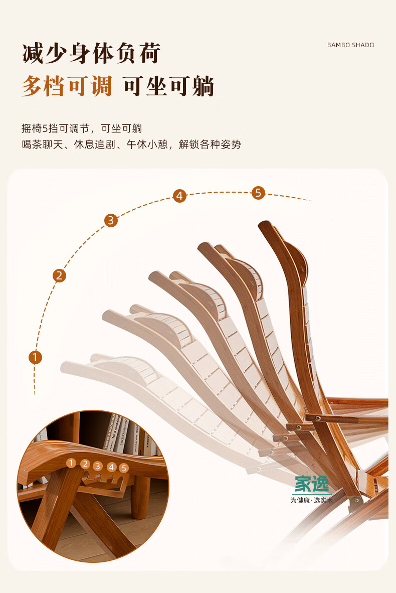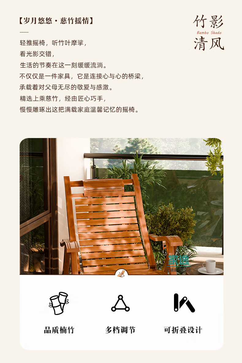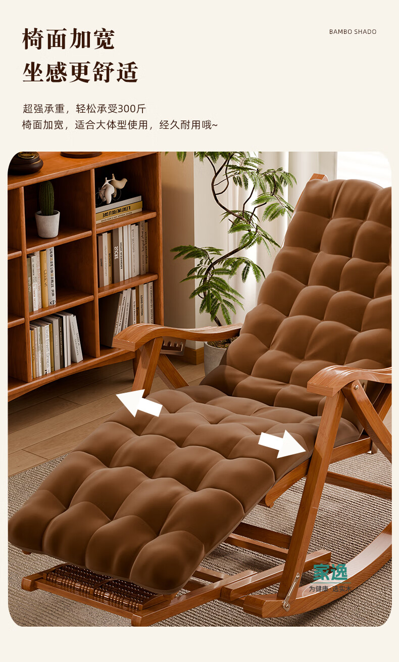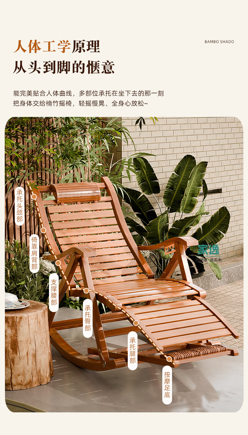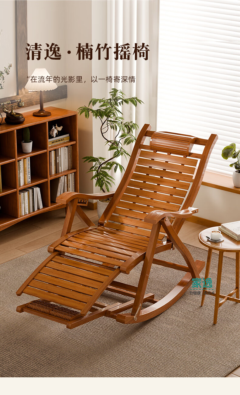 家逸躺椅阳台摇摇椅大人午休椅老人专用逍遥藤椅折叠懒人家用休闲一体