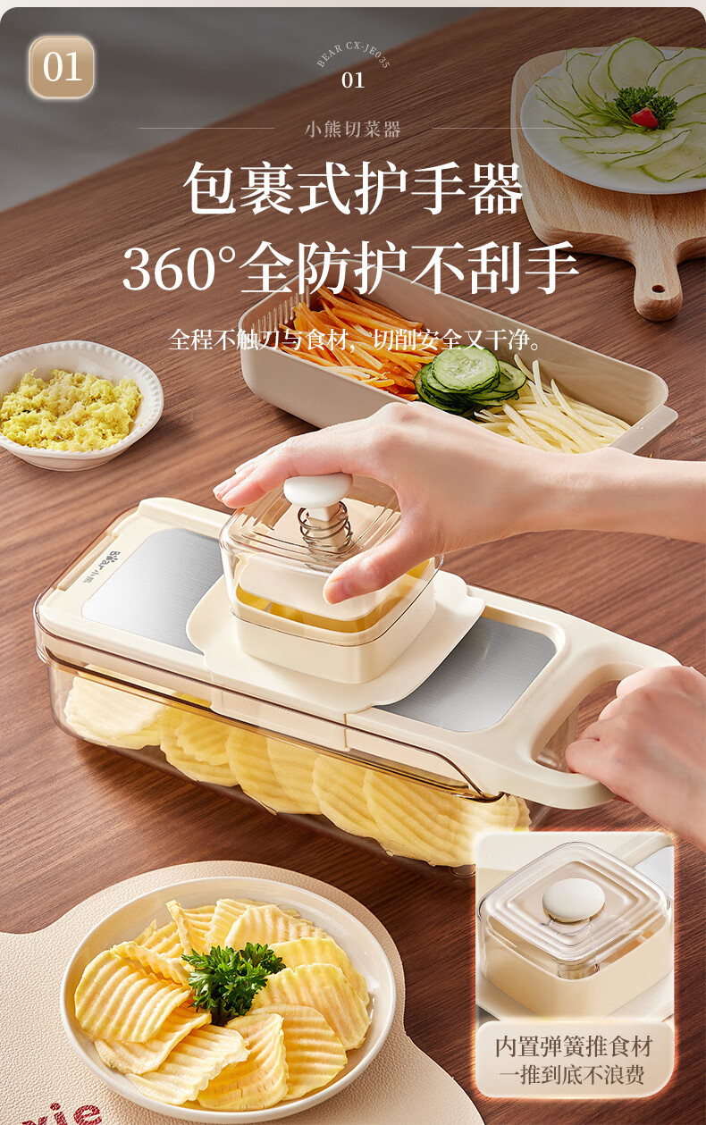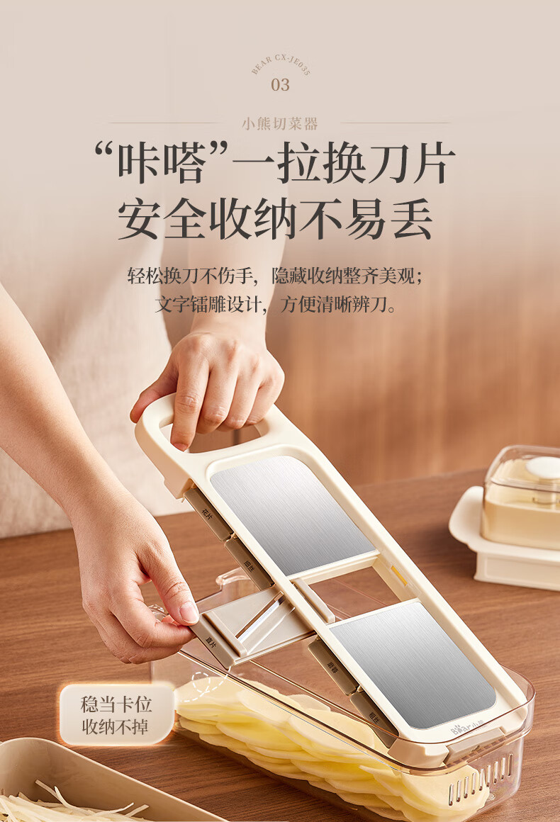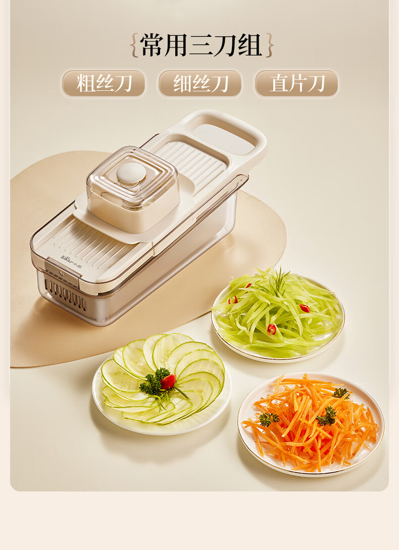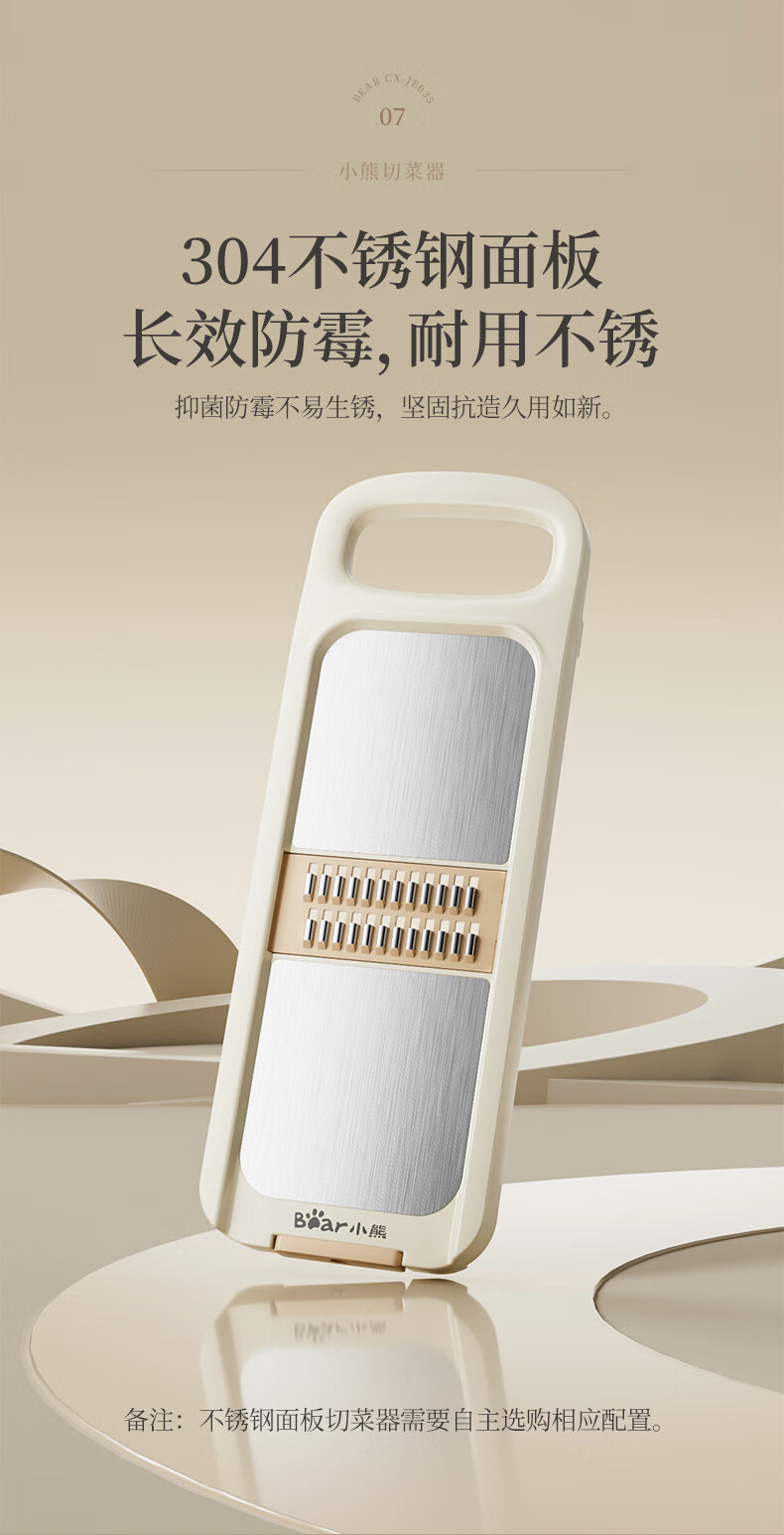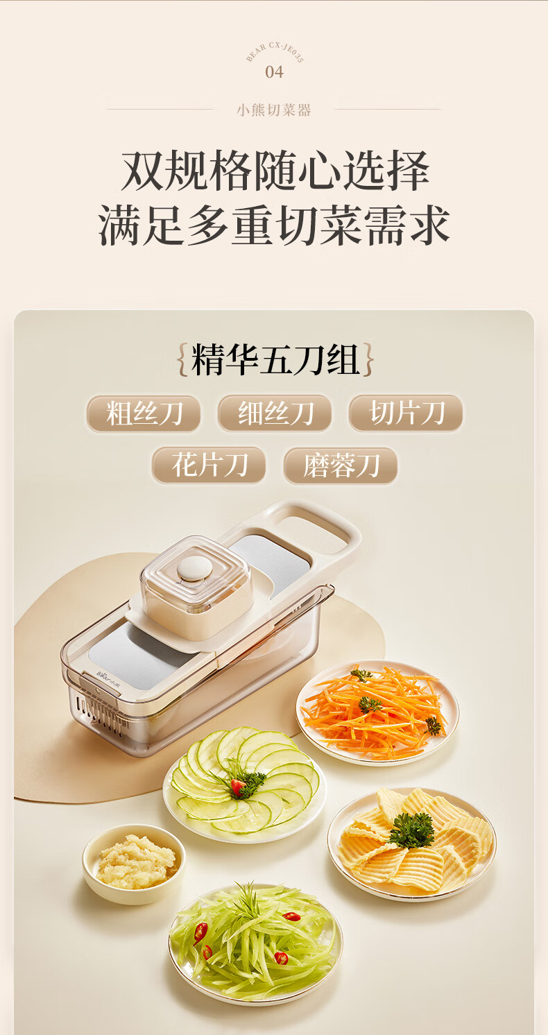 小熊(Bear)多功能切菜神器擦丝器家用刨丝器土豆丝萝卜切片器不锈钢款5刀