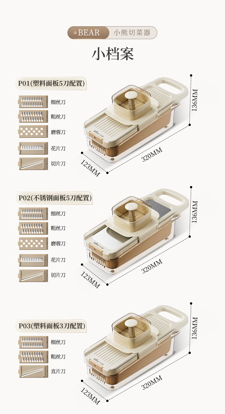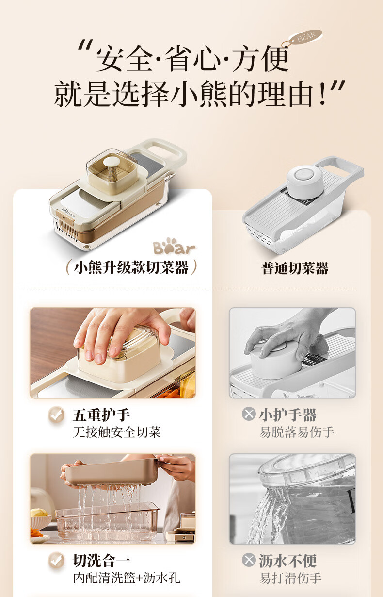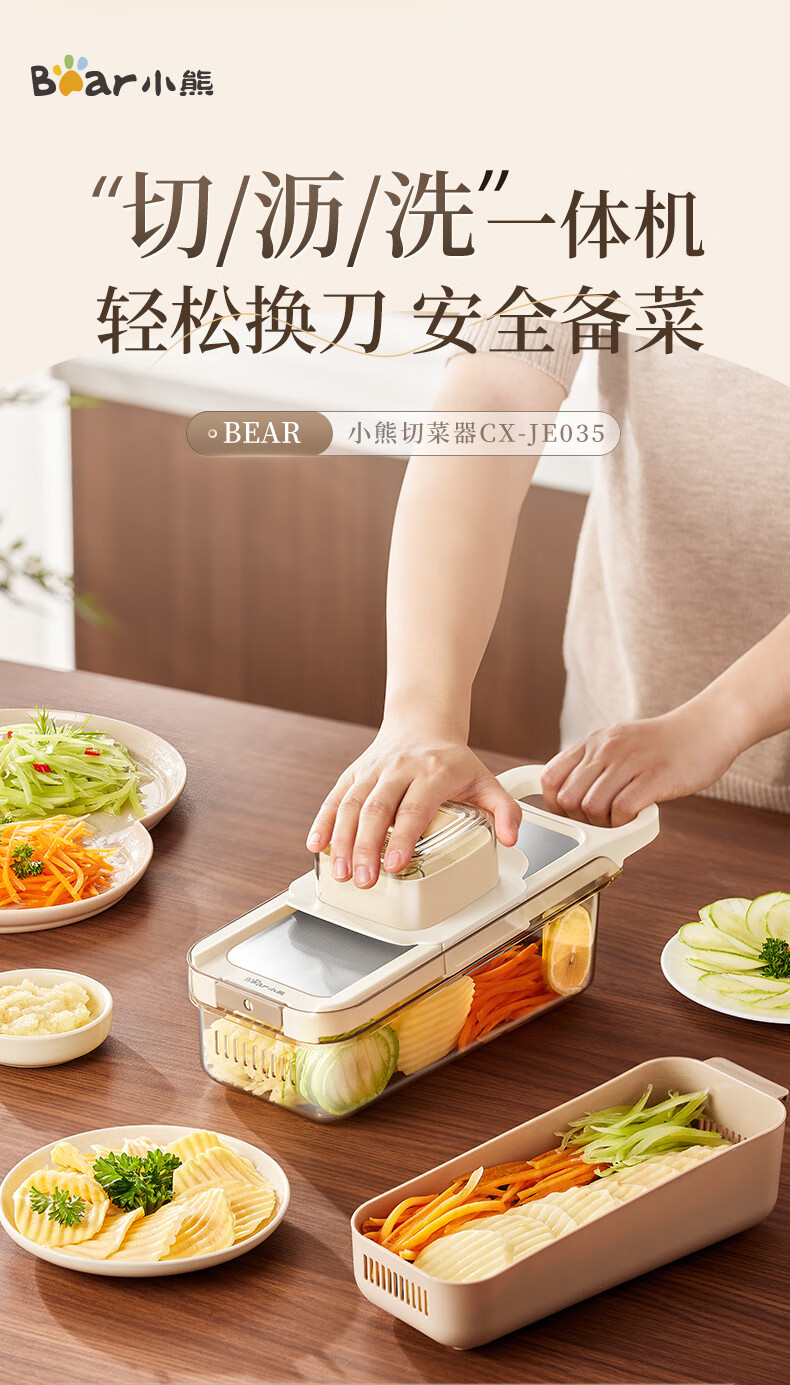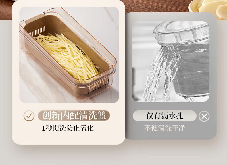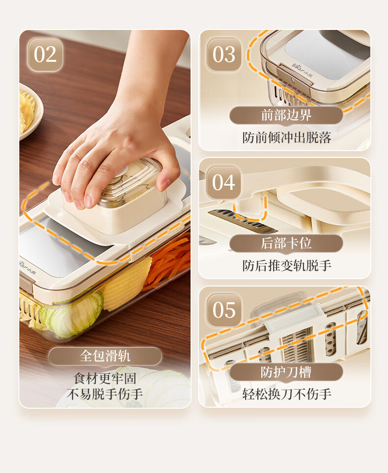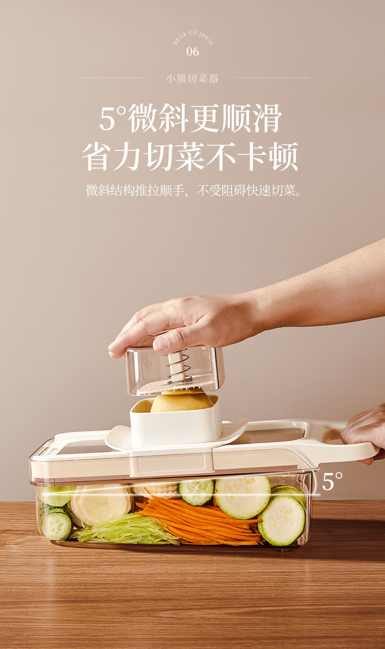 小熊(Bear)多功能切菜神器擦丝器家用刨丝器土豆丝萝卜切片器不锈钢款5刀