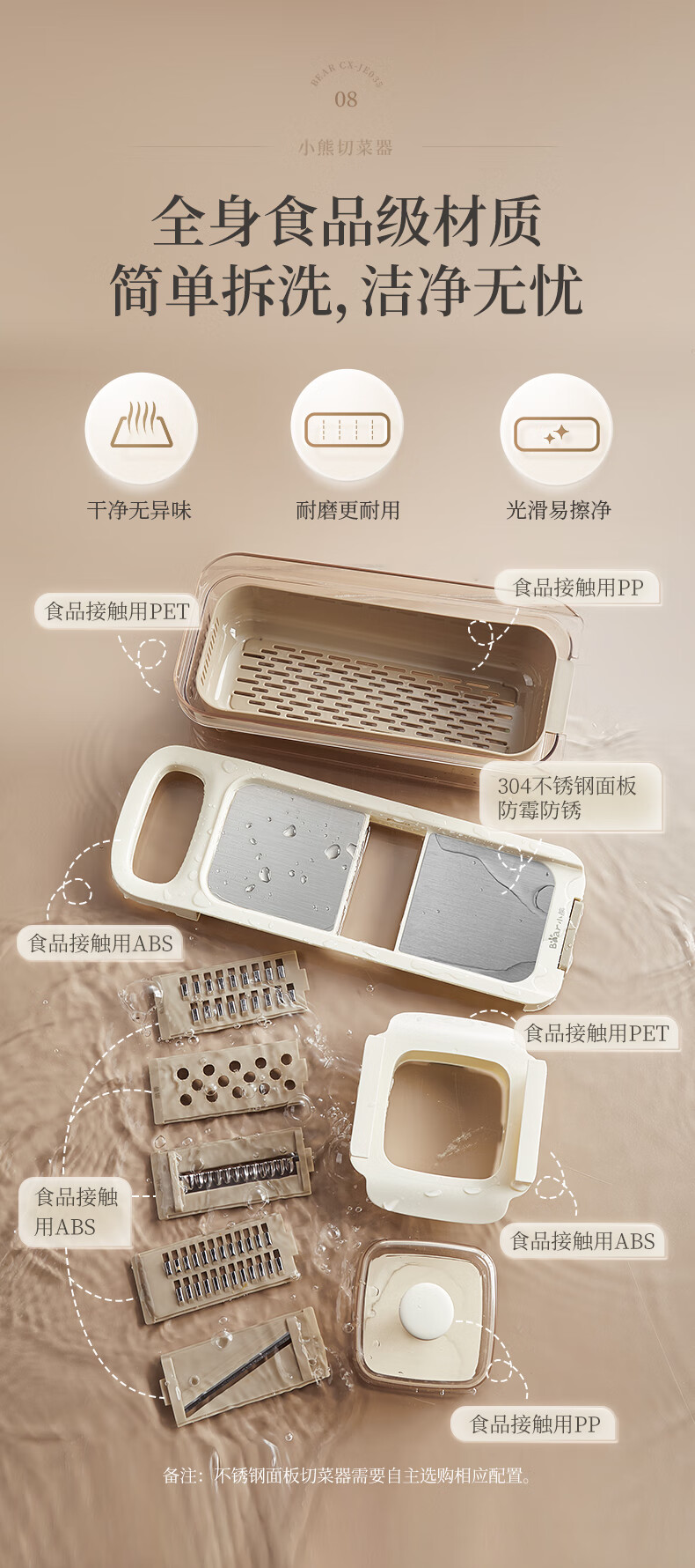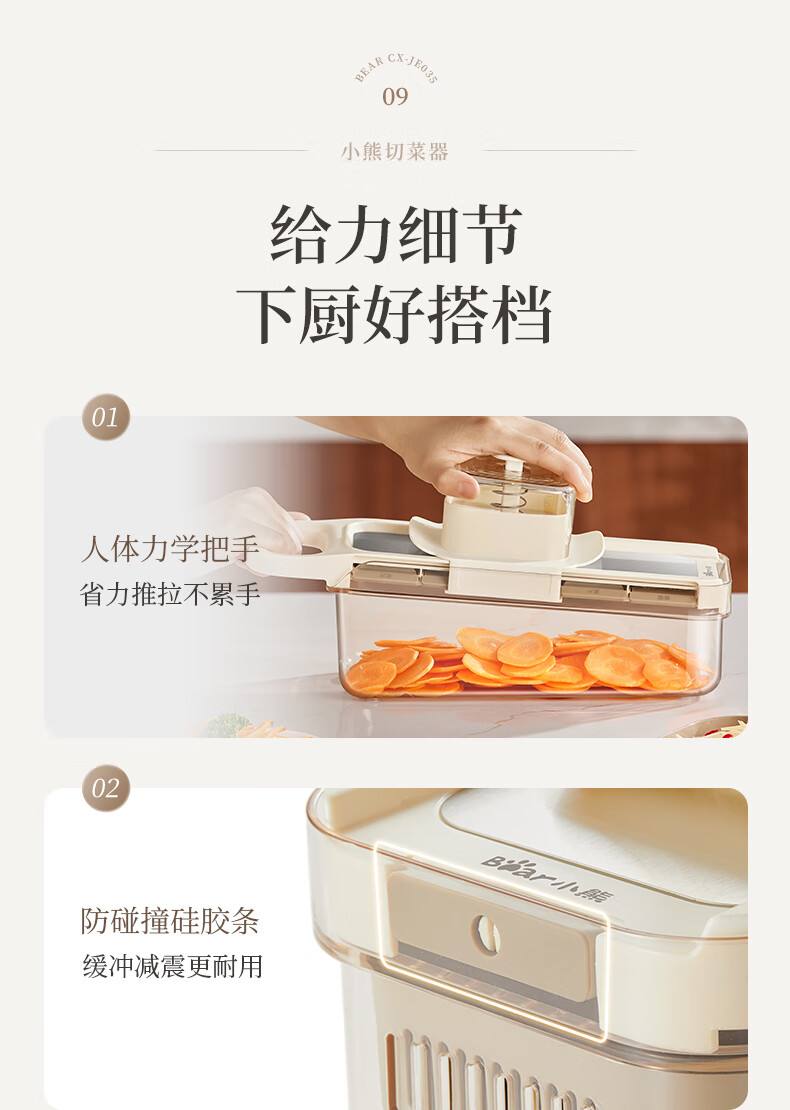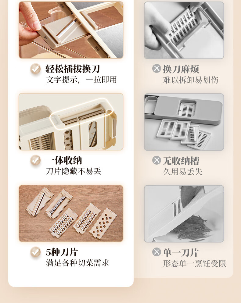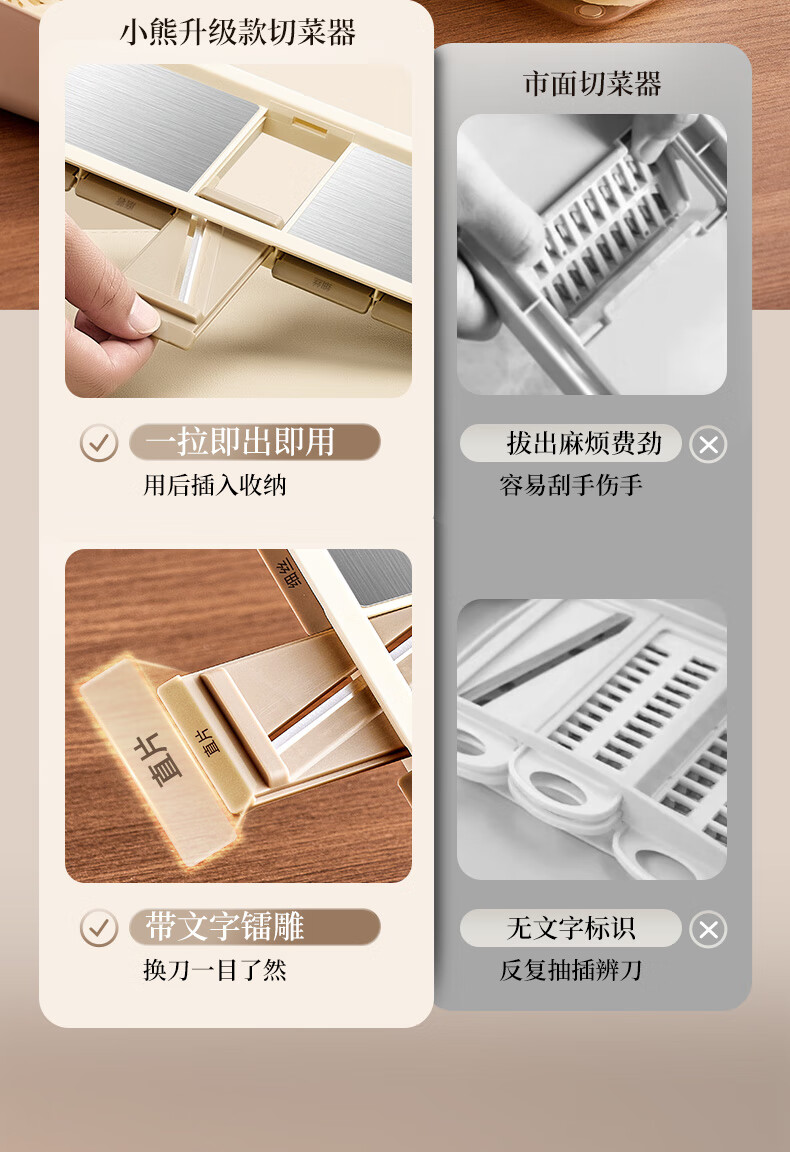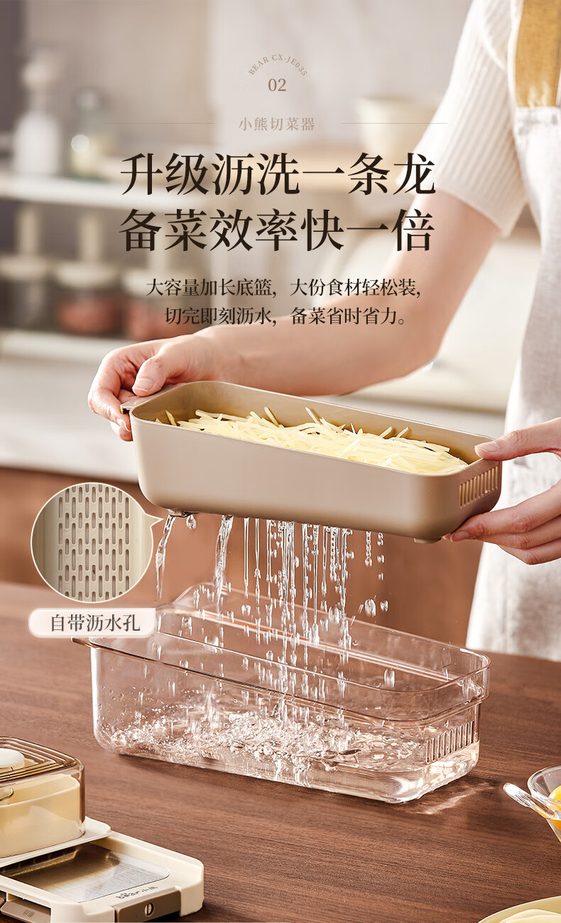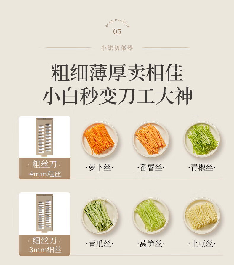 小熊(Bear)多功能切菜神器擦丝器家用刨丝器土豆丝萝卜切片器不锈钢款5刀