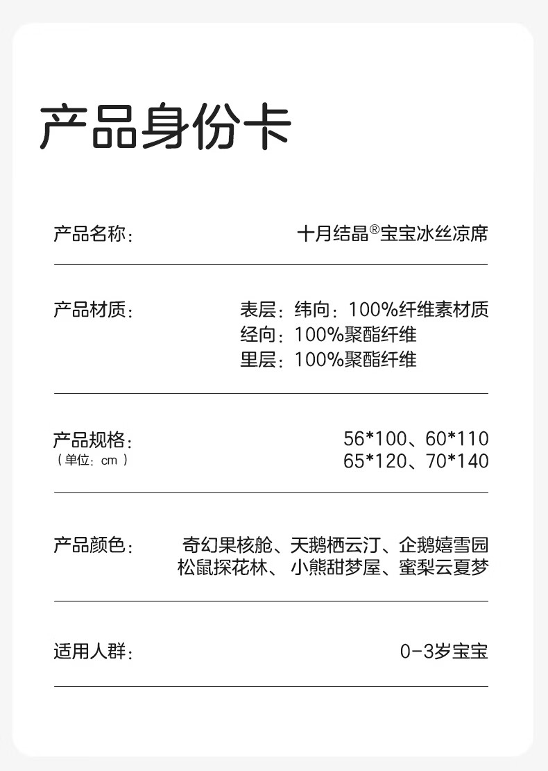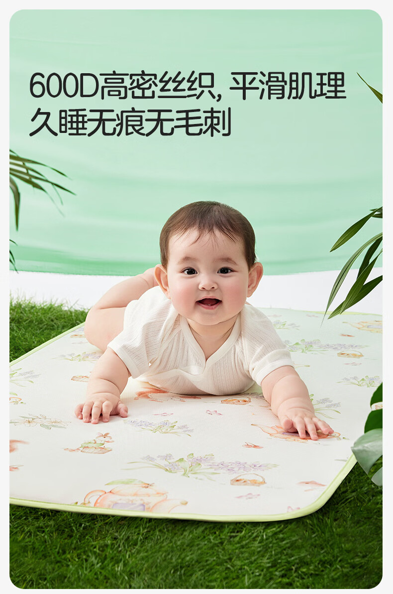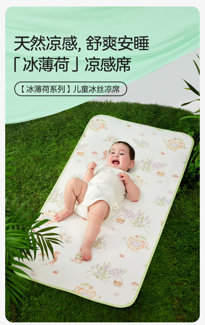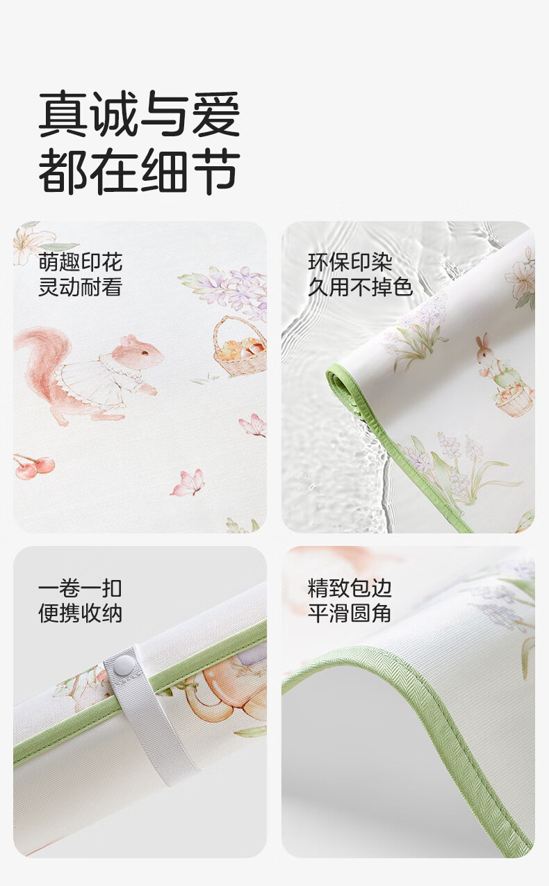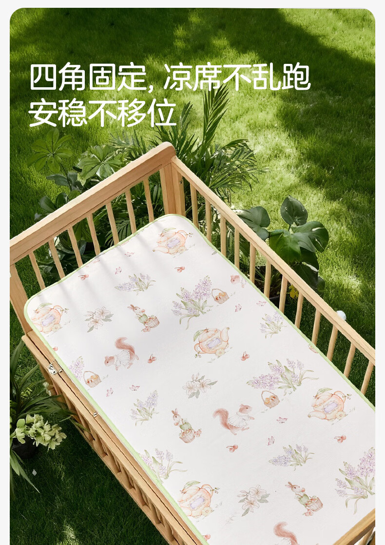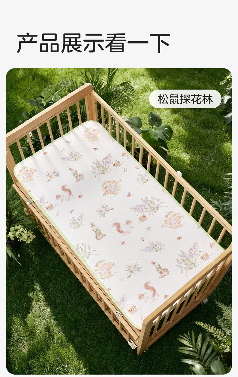 十月结晶婴儿凉席冰丝凉席抑菌除螨透气吸汗儿童幼儿园 松鼠探花林100*56
