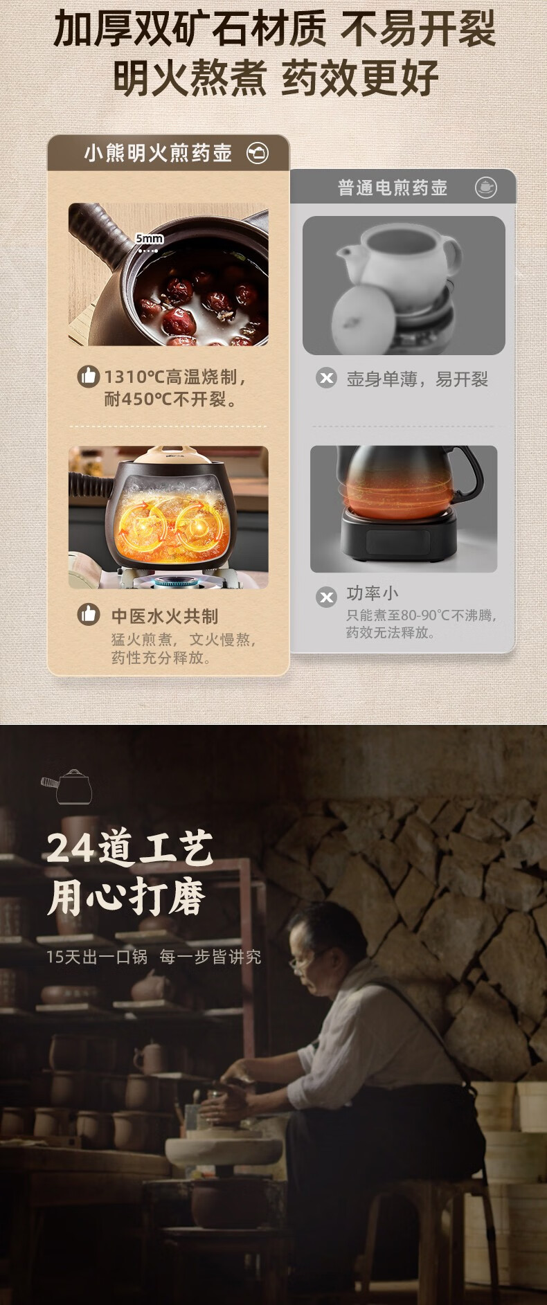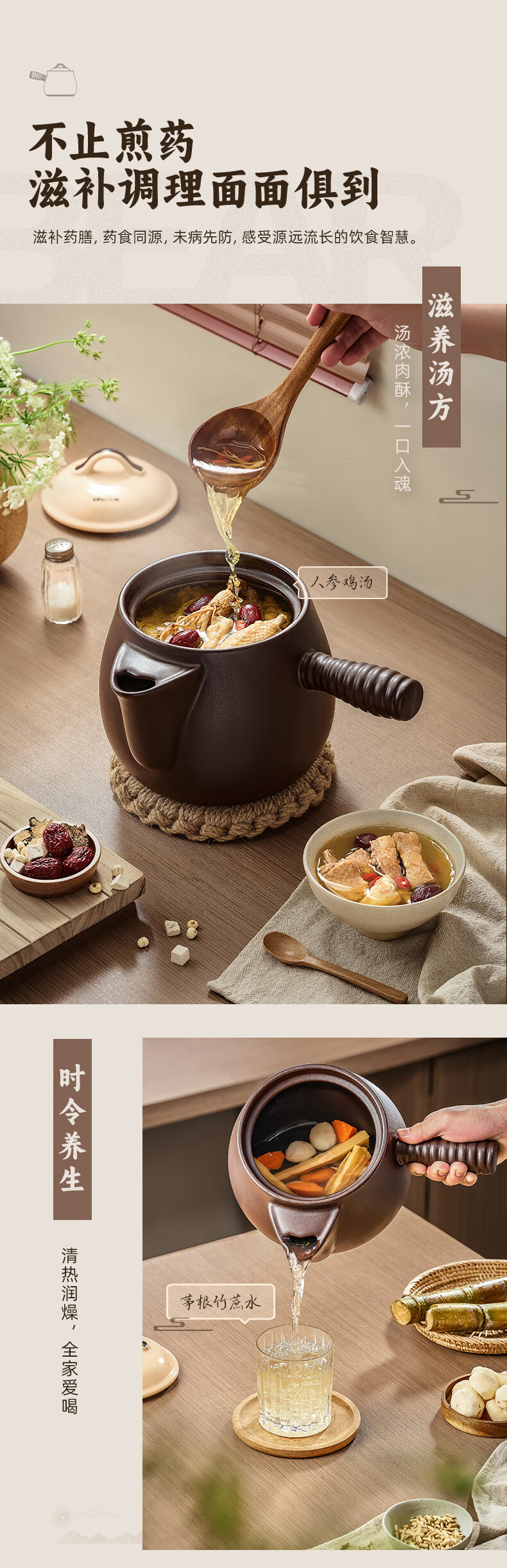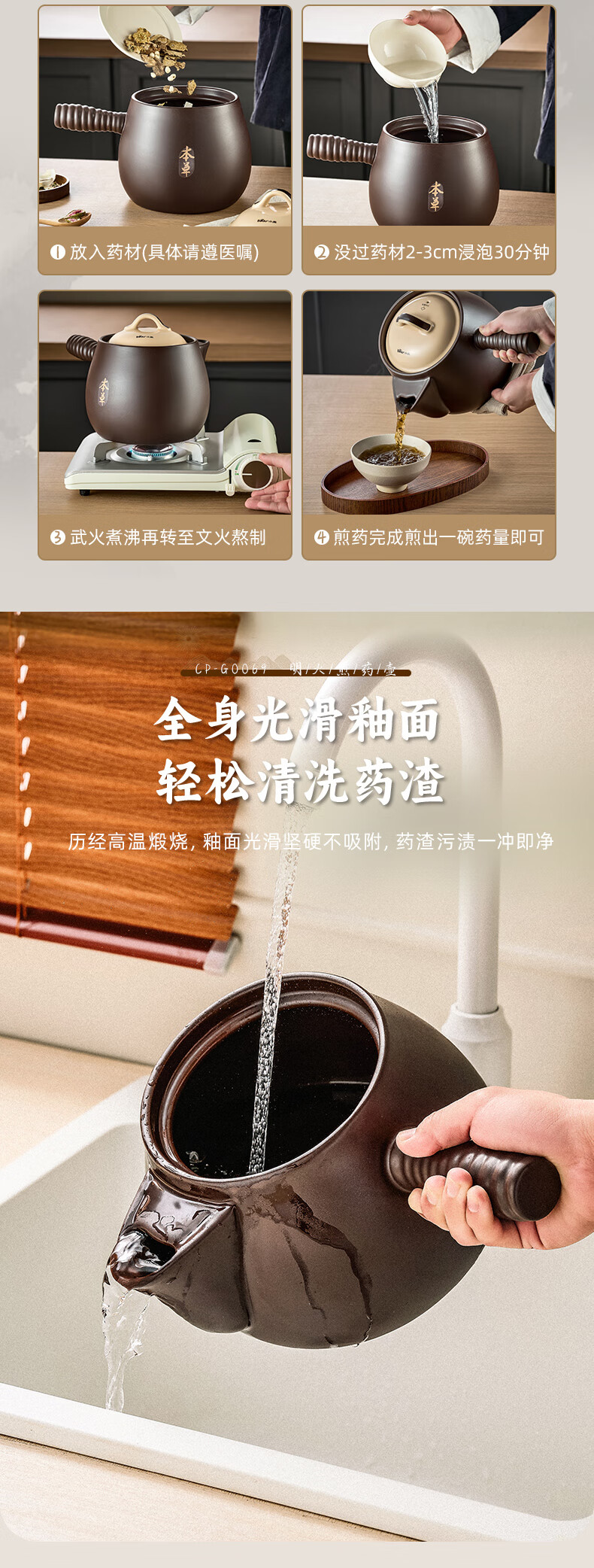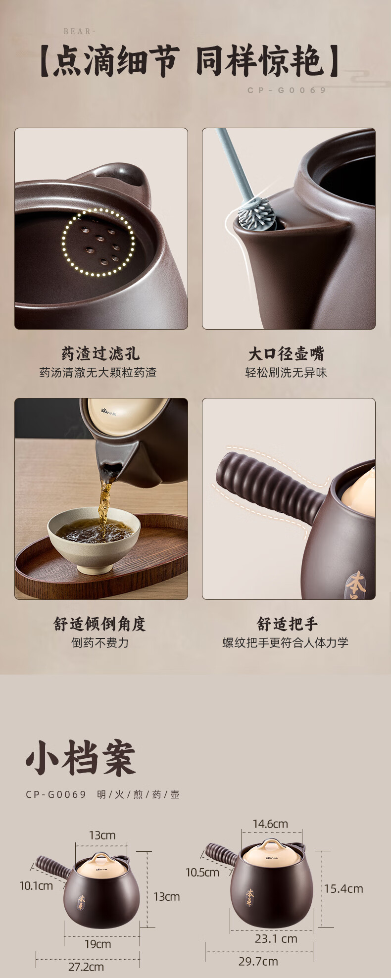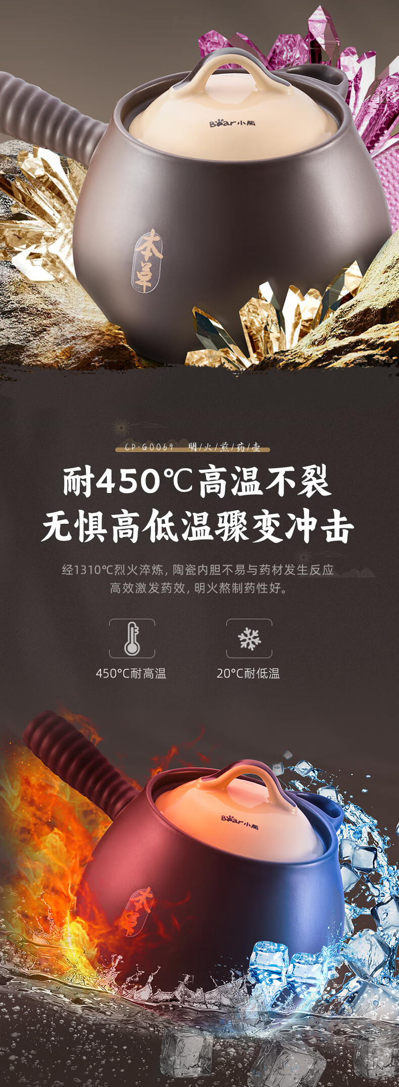 小熊(Bear)中药砂锅 耐高温中药锅煎药壶3L燃气灶熬药陶瓷锅中药罐G0069-P02