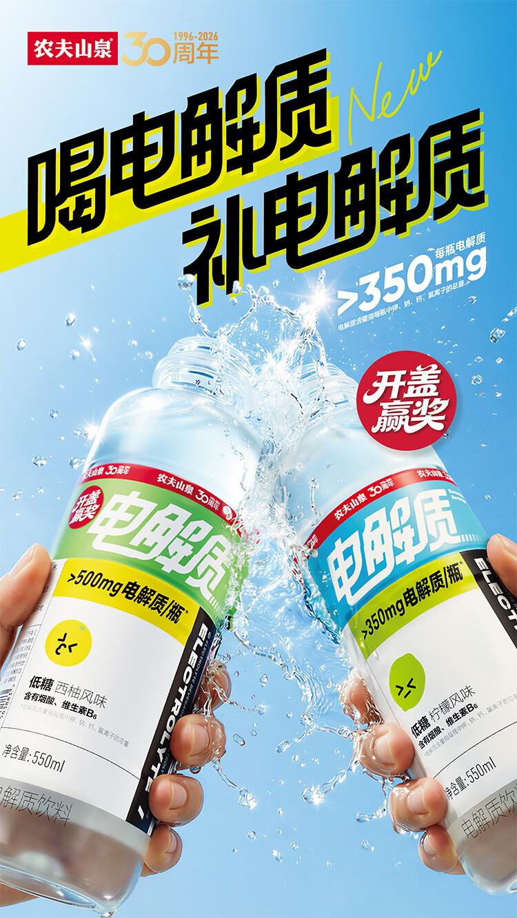 农夫山泉【新品】电解质水柠檬味运动饮料550ml*15瓶快速补水整箱