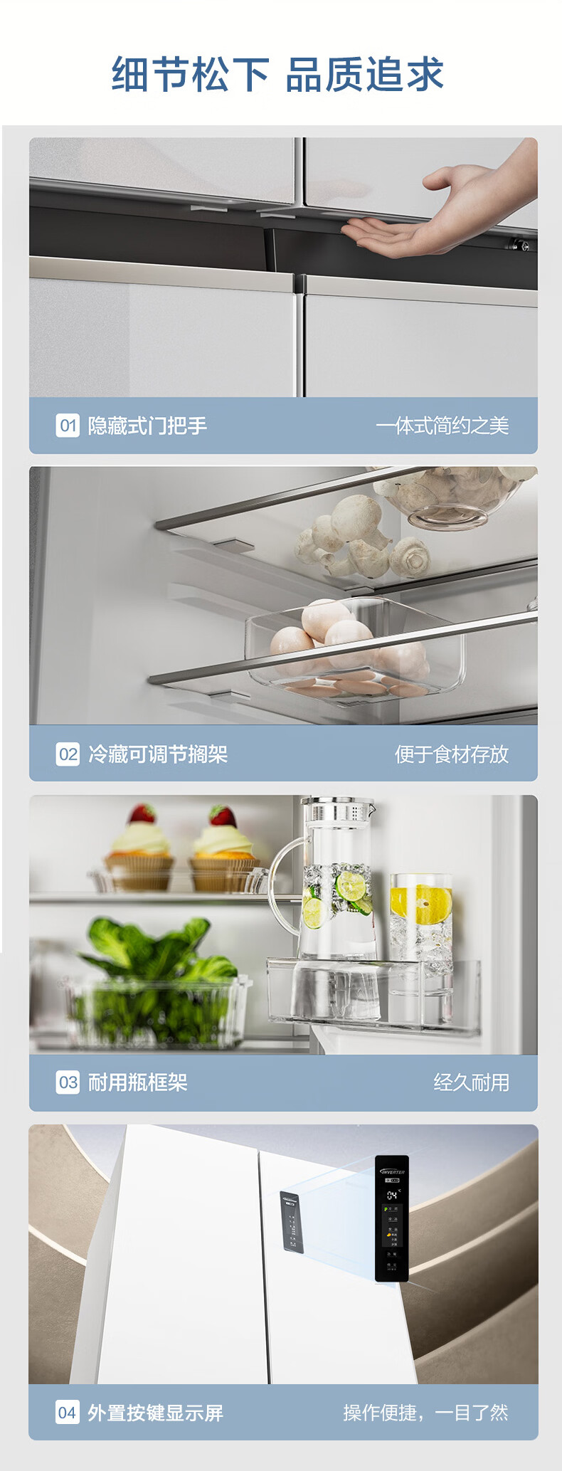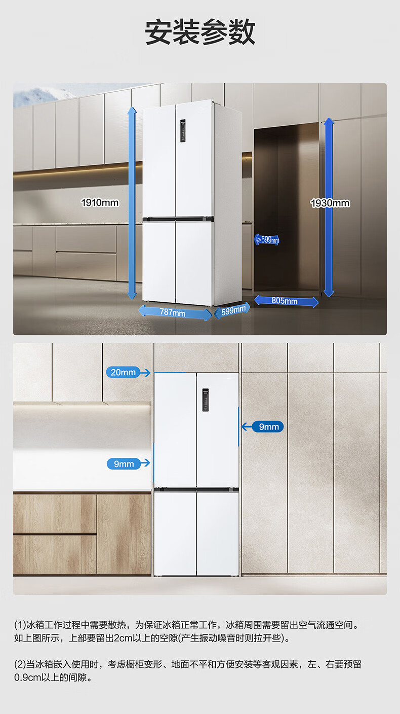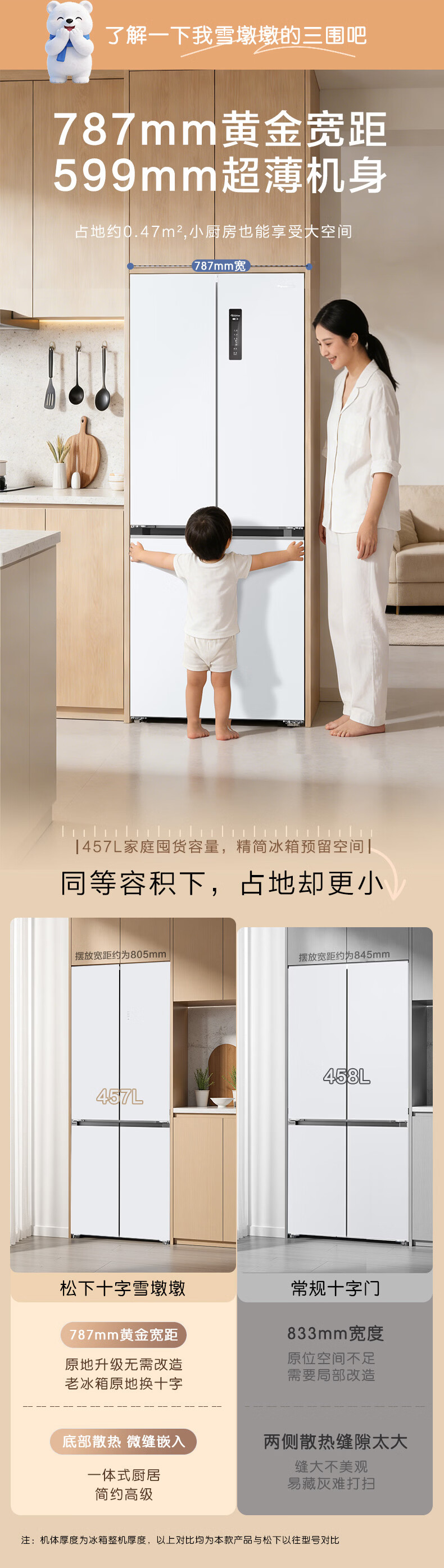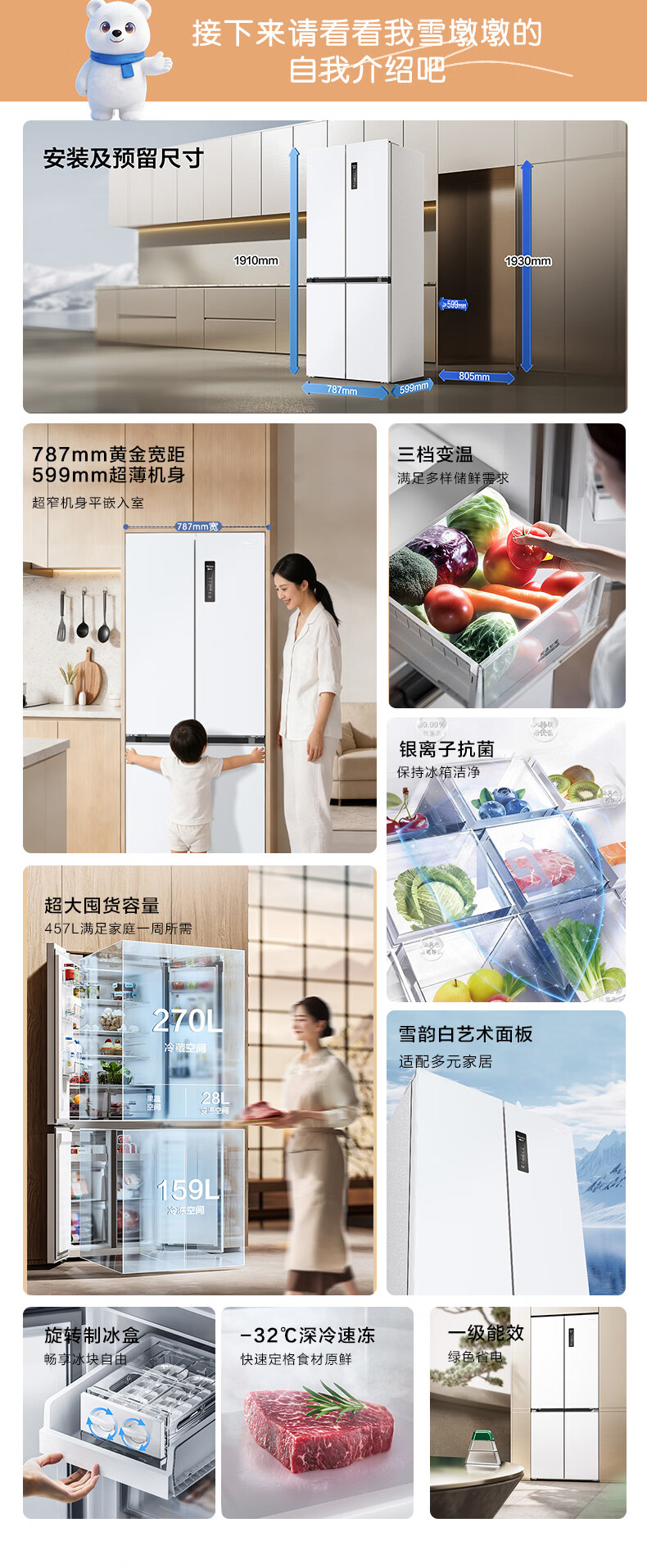 松下(Panasonic)雪墩墩457L十字门冰箱超薄嵌入制冰银离子净味三挡变温一级能效风冷月光白NR-46DDPEA-W以旧换新 【雪墩墩】小户型大容量