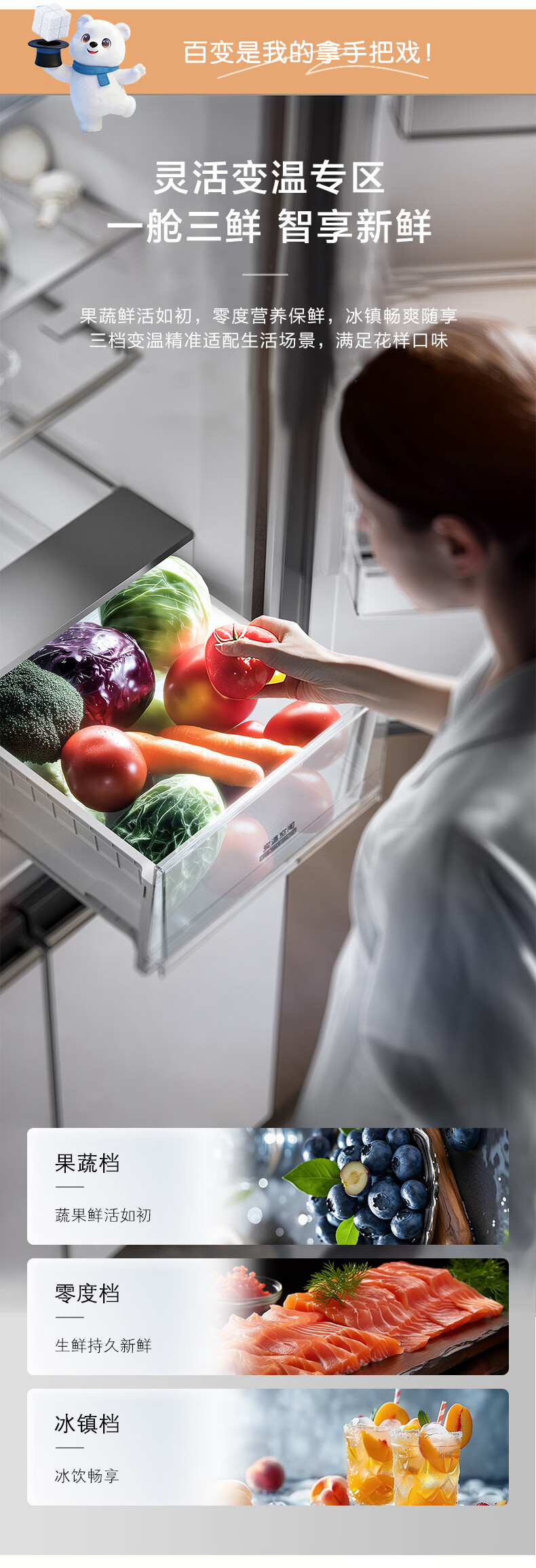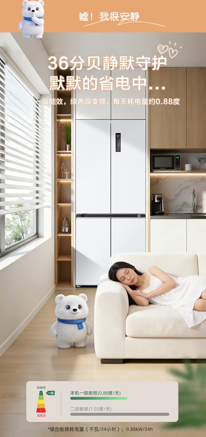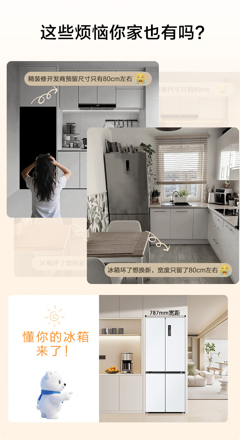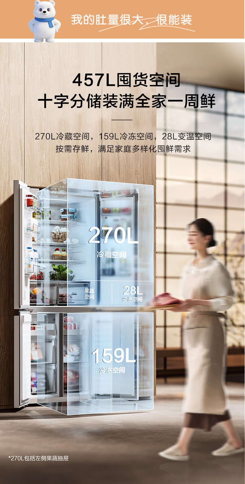 松下(Panasonic)雪墩墩457L十字门冰箱超薄嵌入制冰银离子净味三挡变温一级能效风冷月光白NR-46DDPEA-W以旧换新 【雪墩墩】小户型大容量