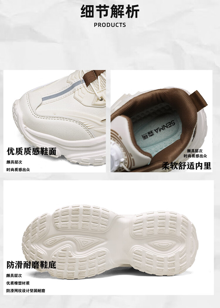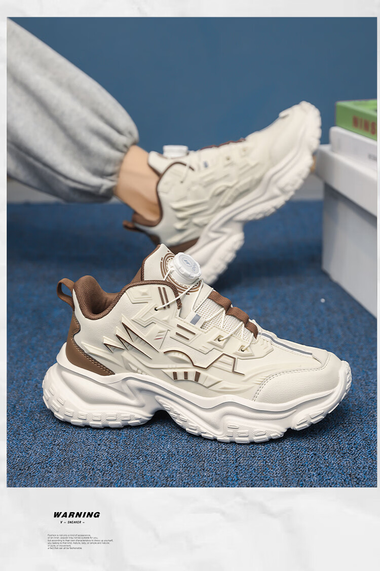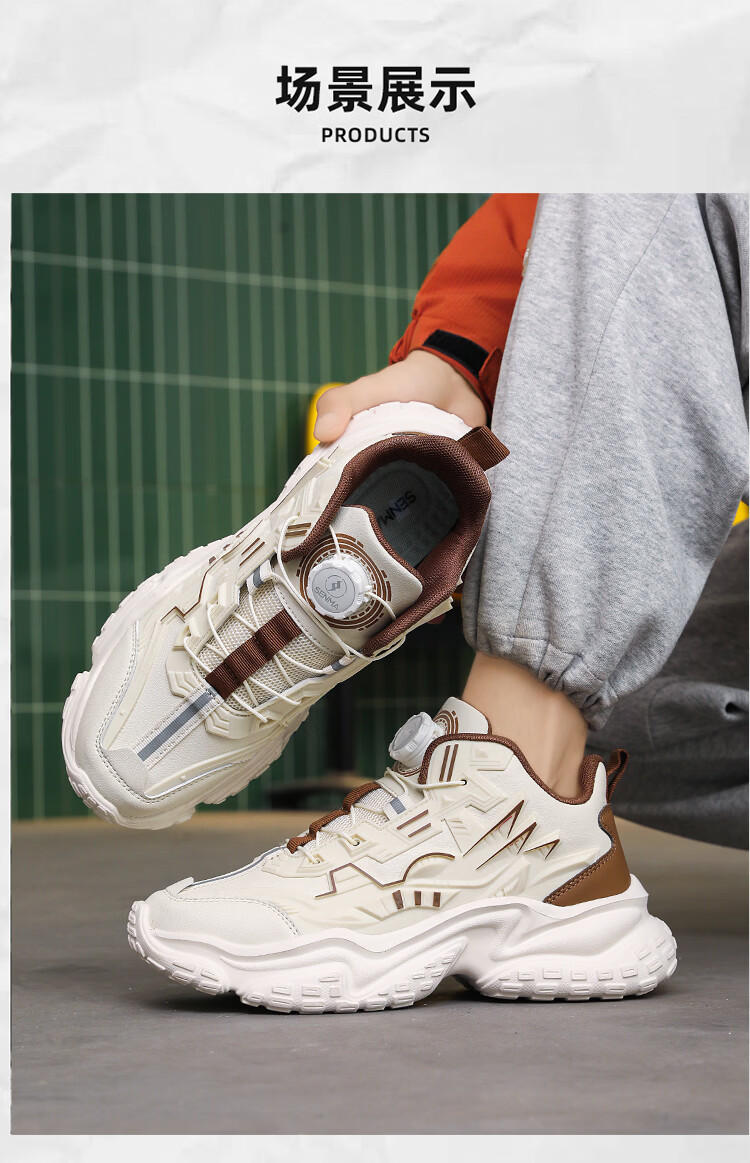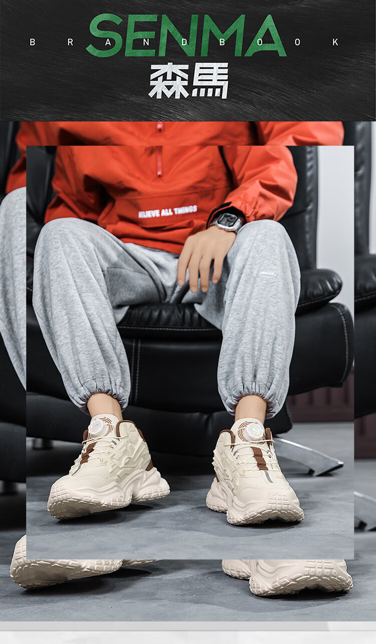 森馬男鞋2026新款夏季百搭厚底增高运动休闲跑步鞋青少年机甲老爹潮鞋 米棕【基础款】 39 标准码数/现货秒发