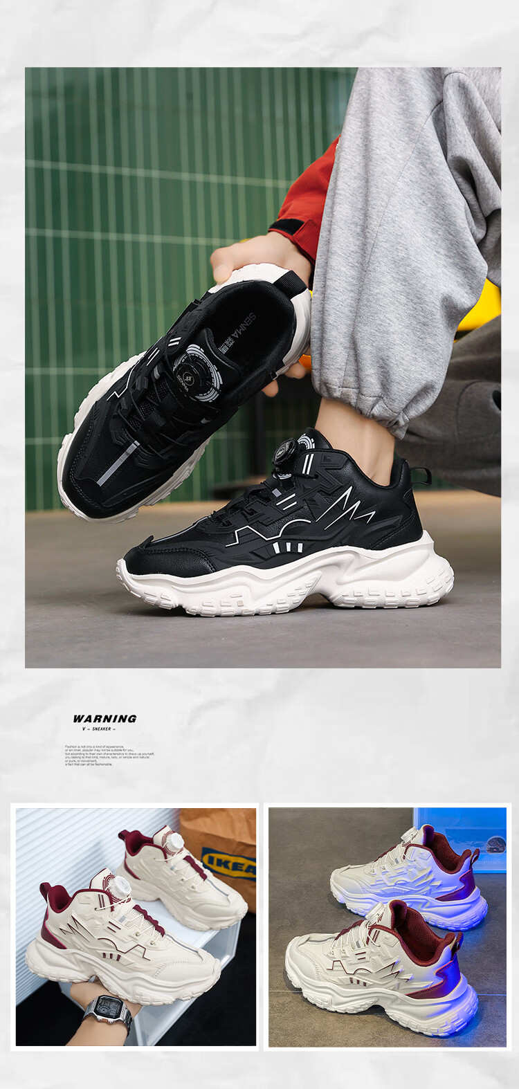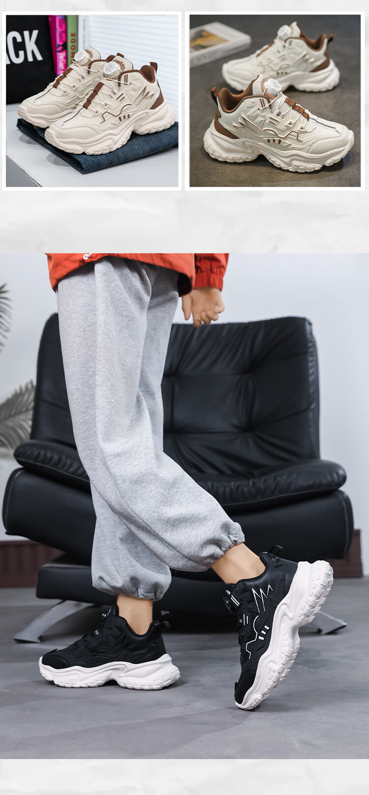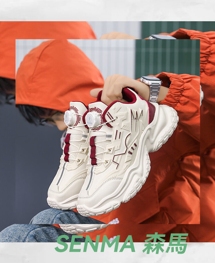 森馬男鞋2026新款夏季百搭厚底增高运动休闲跑步鞋青少年机甲老爹潮鞋 米棕【基础款】 39 标准码数/现货秒发