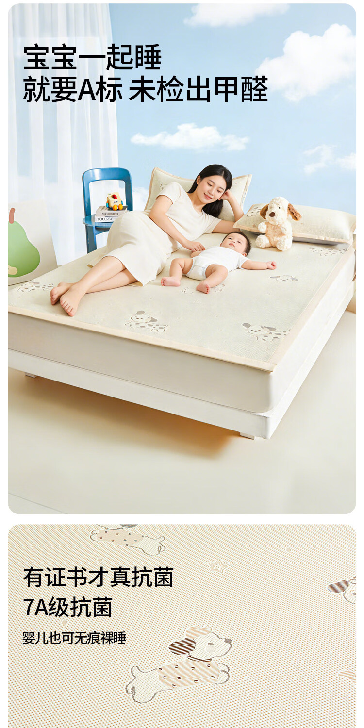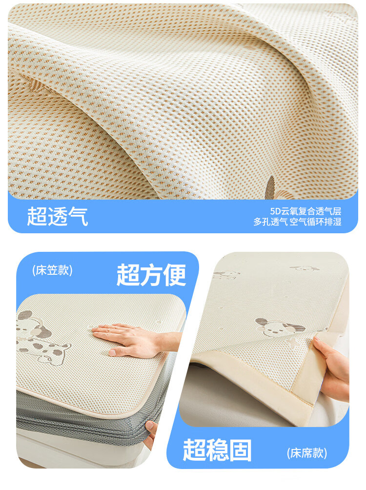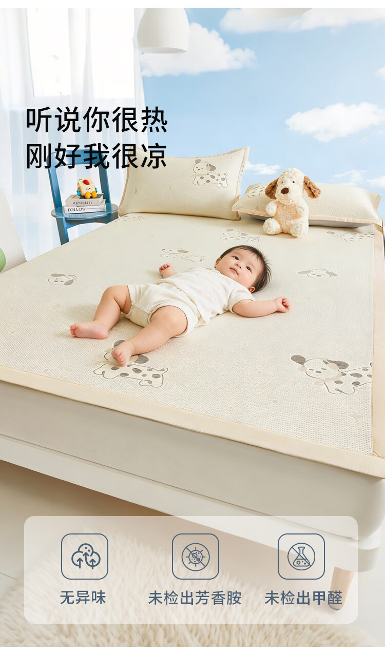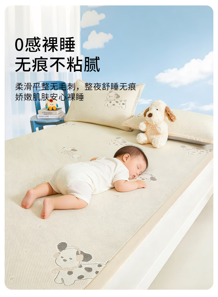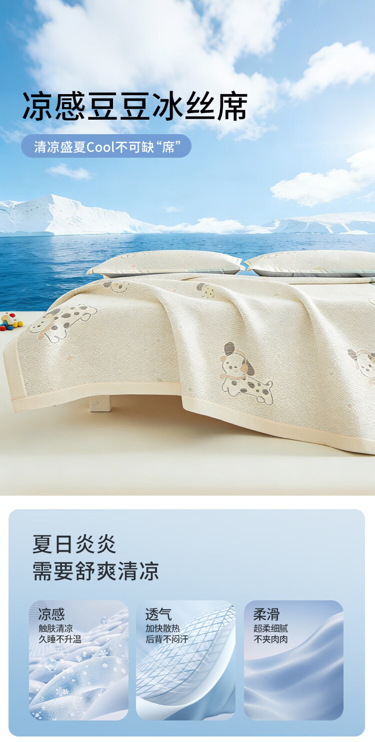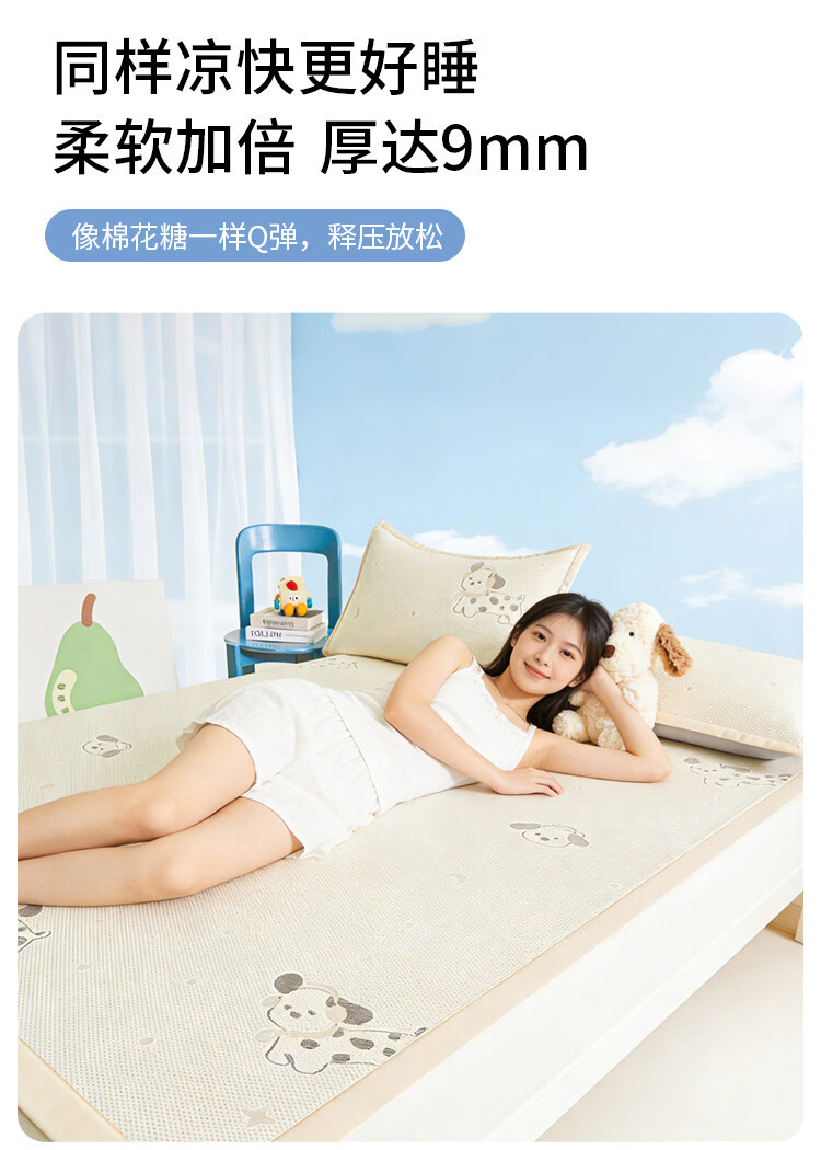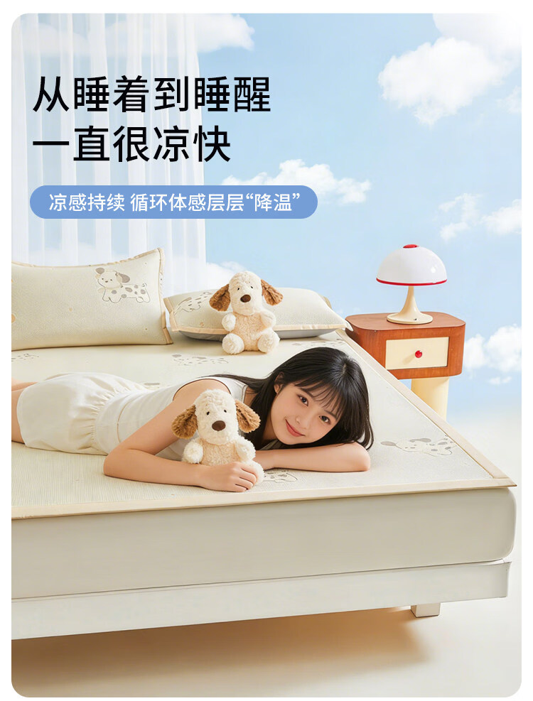 名创优品(MINISO)夏凉席冰丝凉席1.5x2米 豆豆席夏季空调席单双人宿舍冰丝席软席子 腊肠狗-黄-床单款 90cm*200cm