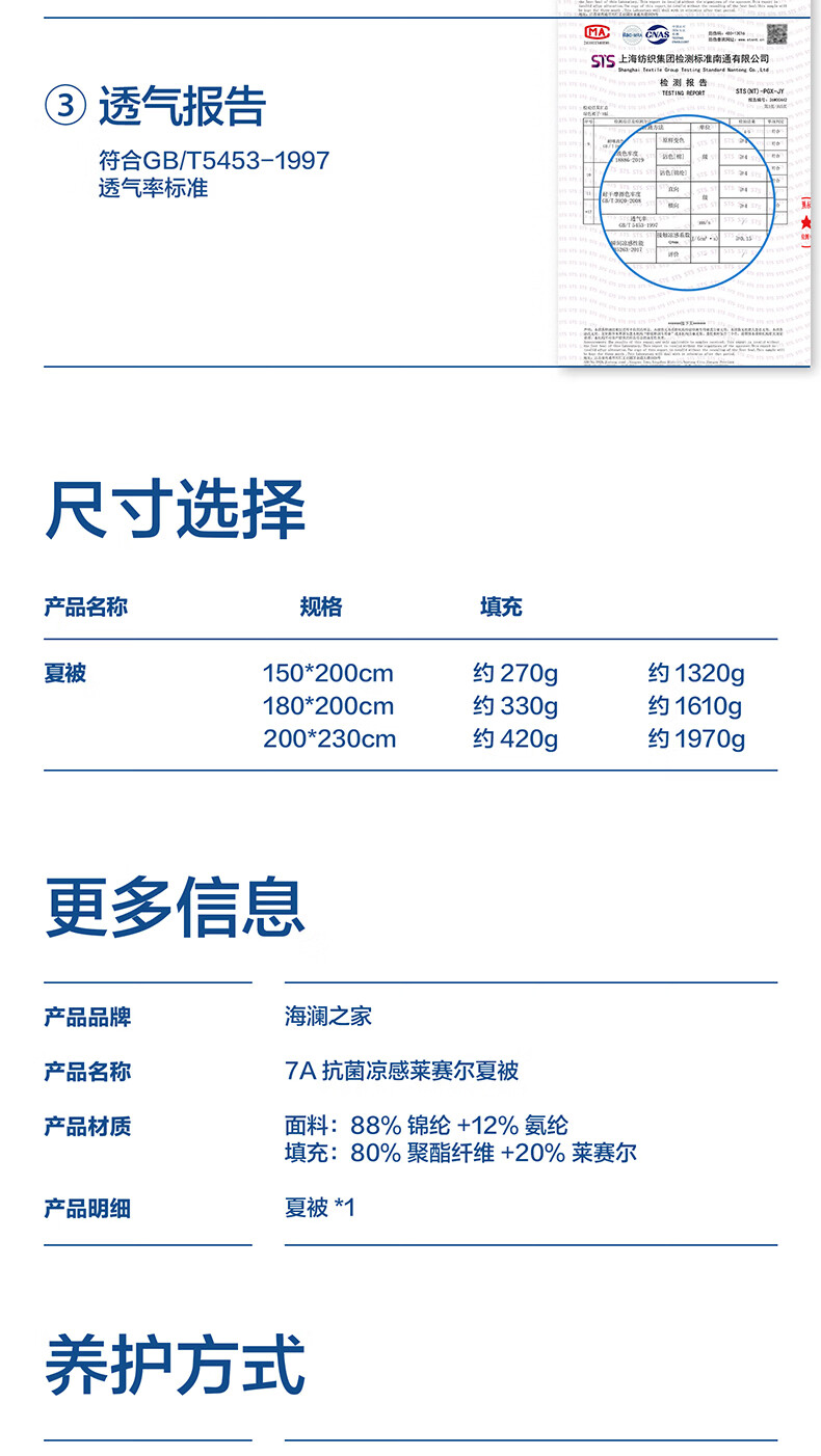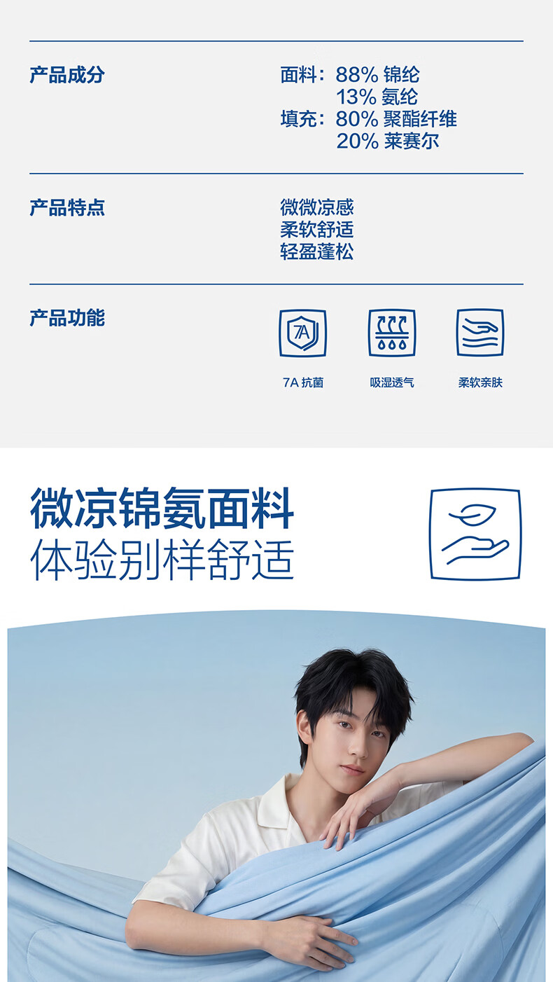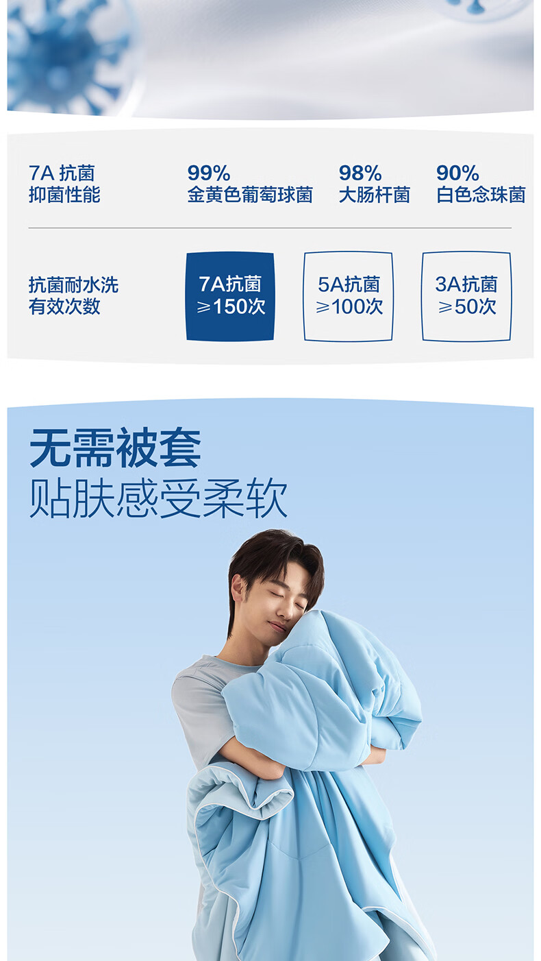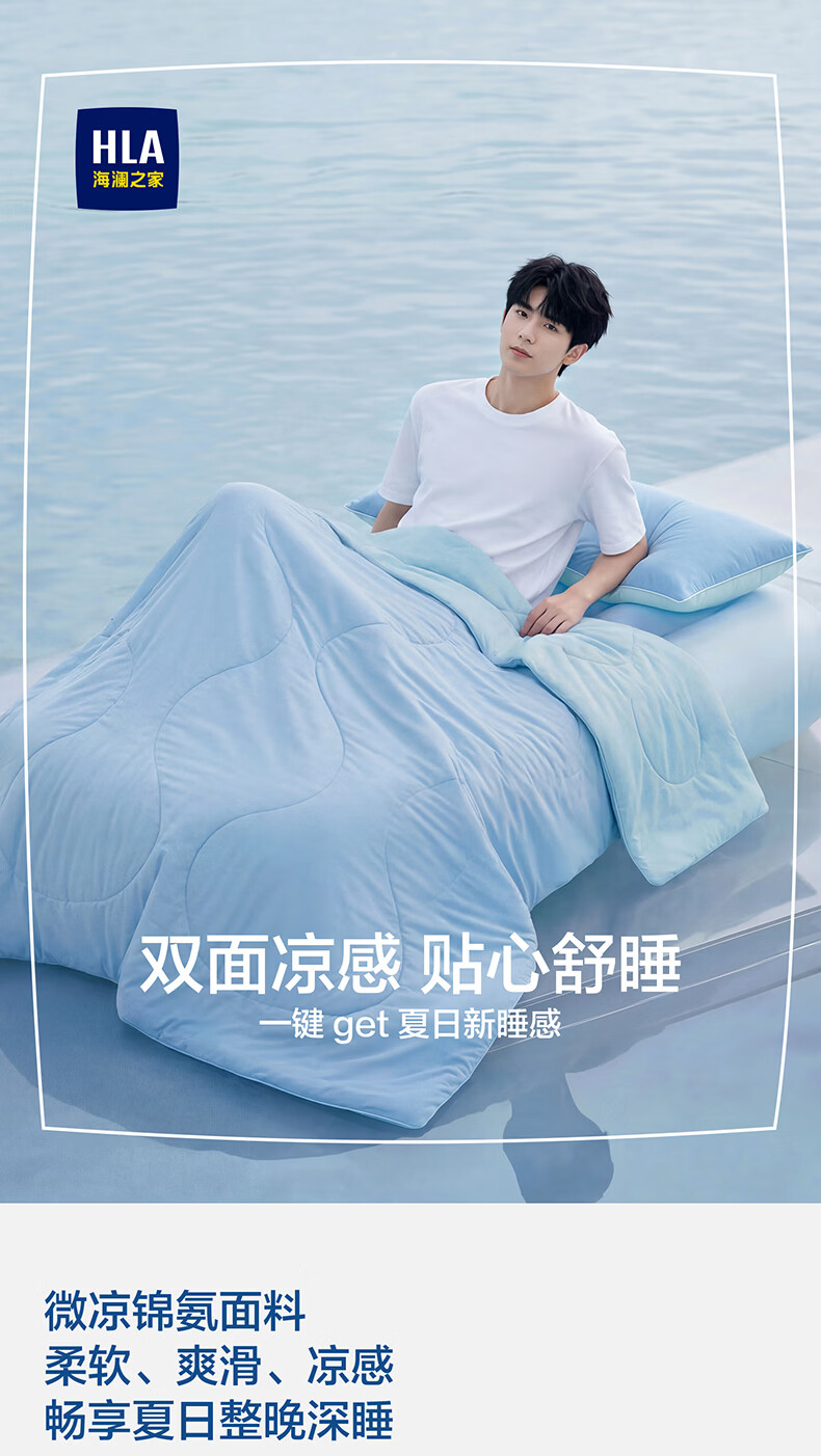 海澜之家(HLA)7A抗菌莱赛尔天丝夏凉被凉感夏被可机洗空调被子夏天季薄被子被芯 浅蓝+奶白【凉感锦氨面料 7A抗菌 持久清凉】 150*200cm【耐脏可机洗 赠送收纳包】