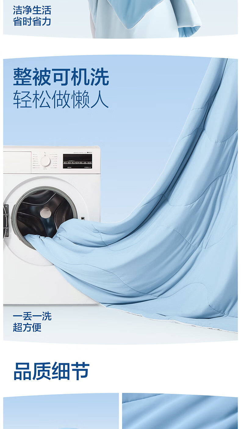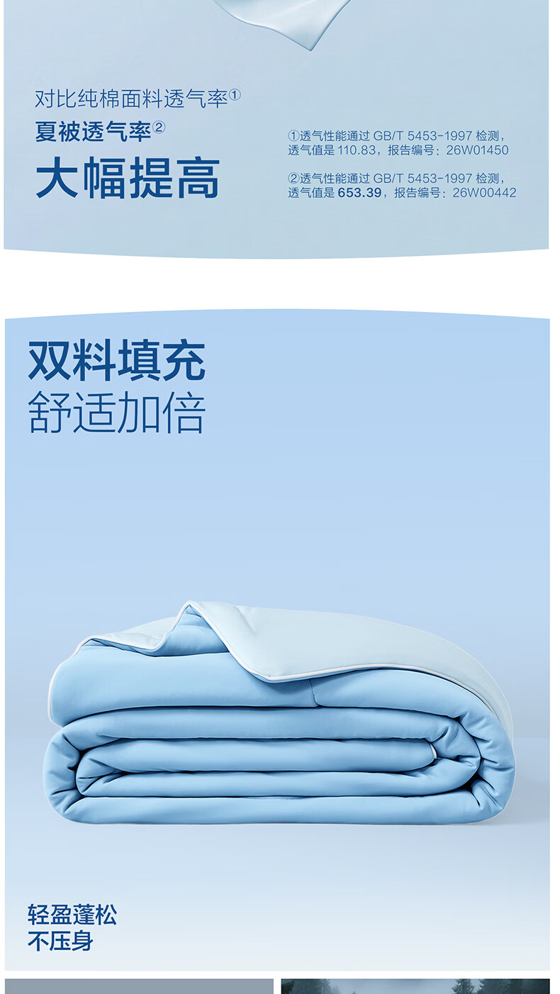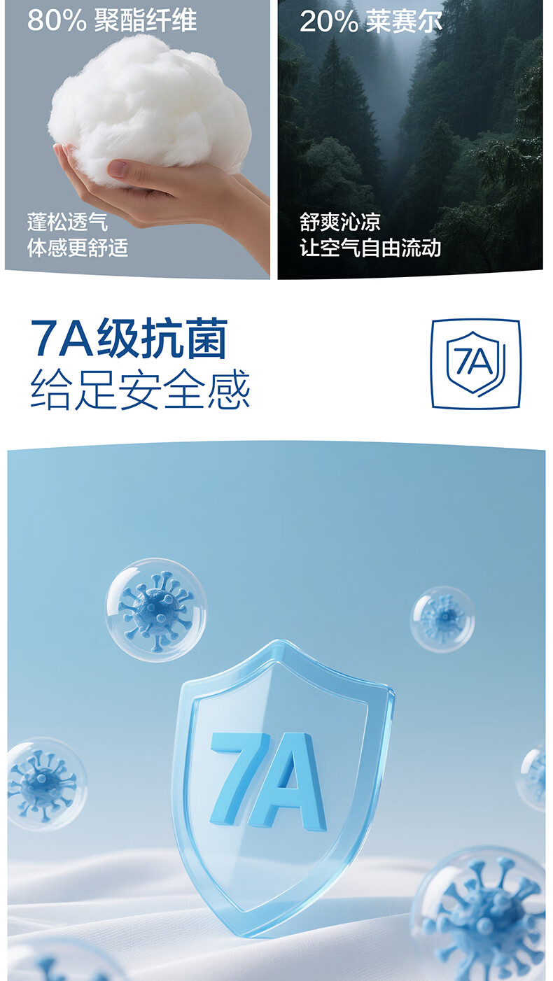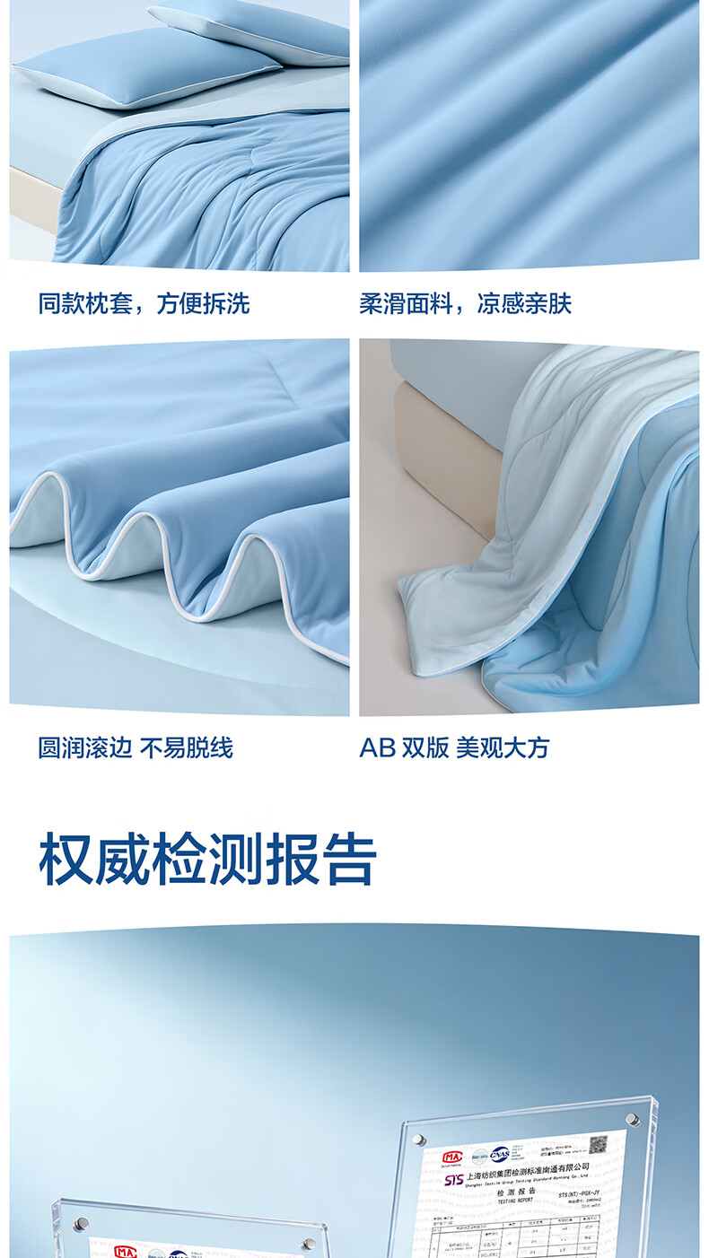 海澜之家(HLA)7A抗菌莱赛尔天丝夏凉被凉感夏被可机洗空调被子夏天季薄被子被芯 浅蓝+奶白【凉感锦氨面料 7A抗菌 持久清凉】 150*200cm【耐脏可机洗 赠送收纳包】