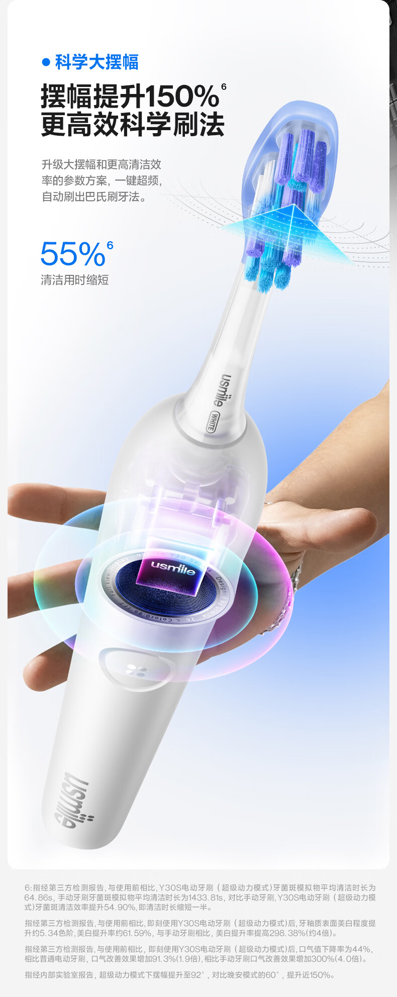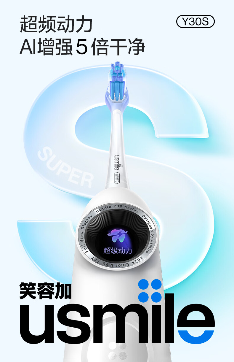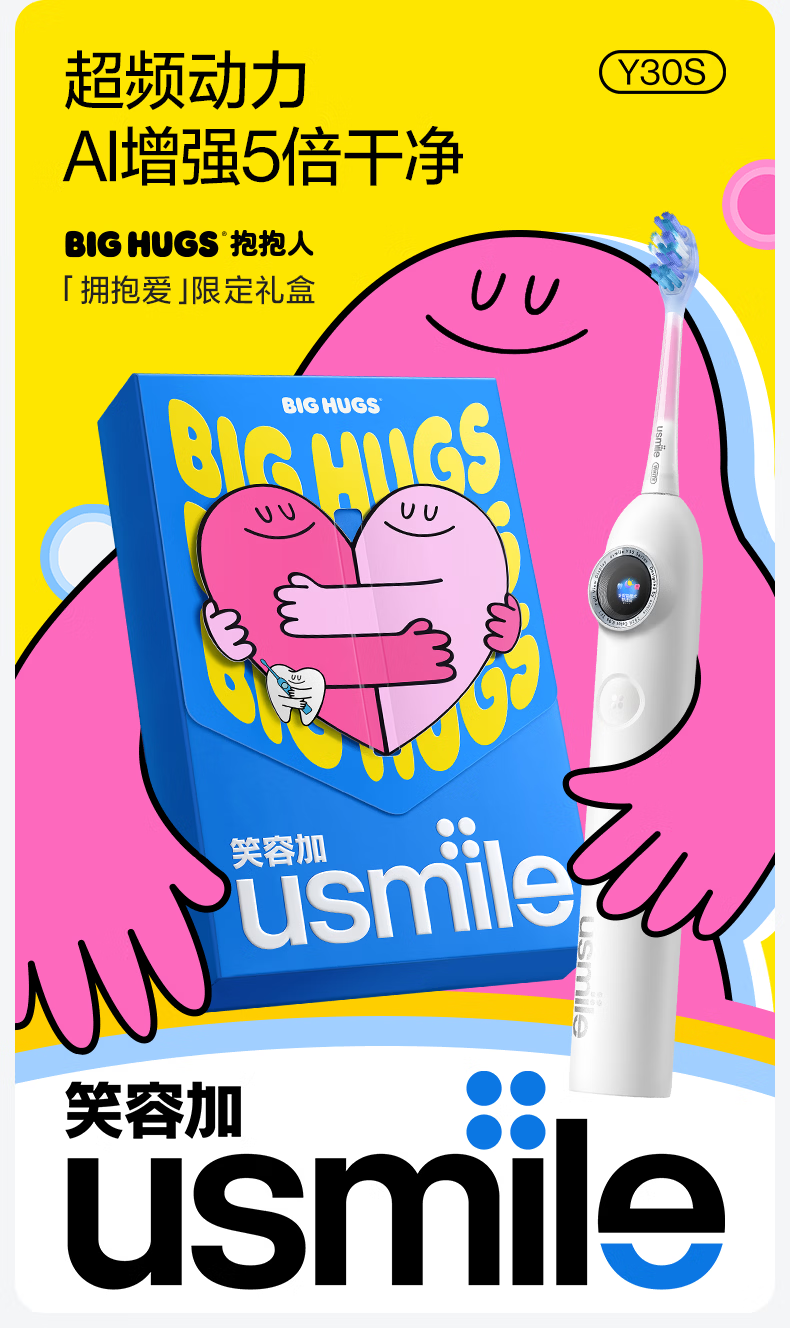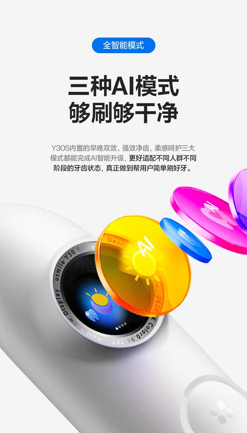 usmile笑容加智能电动牙刷 AI智能化新动力大摆幅 Y30S奶酪黄 新年礼物 送男友女友