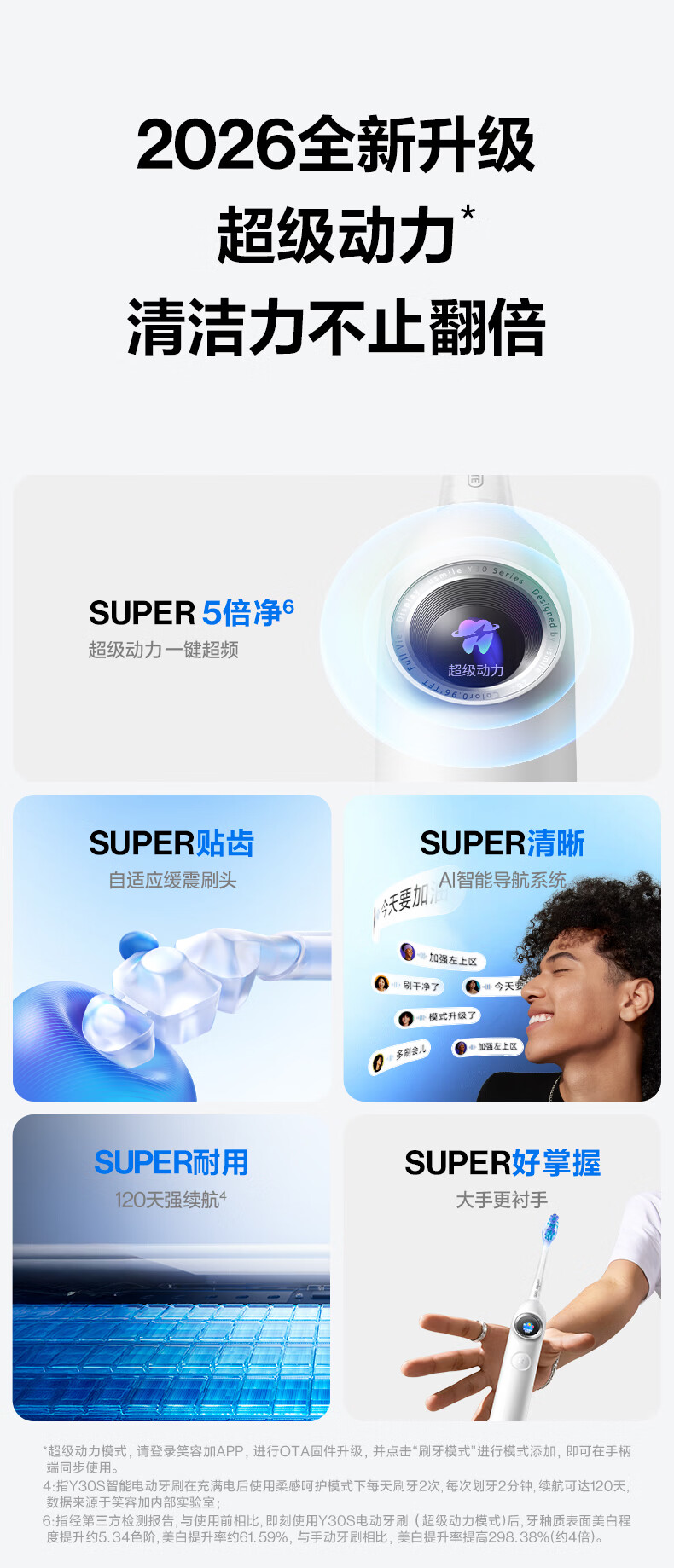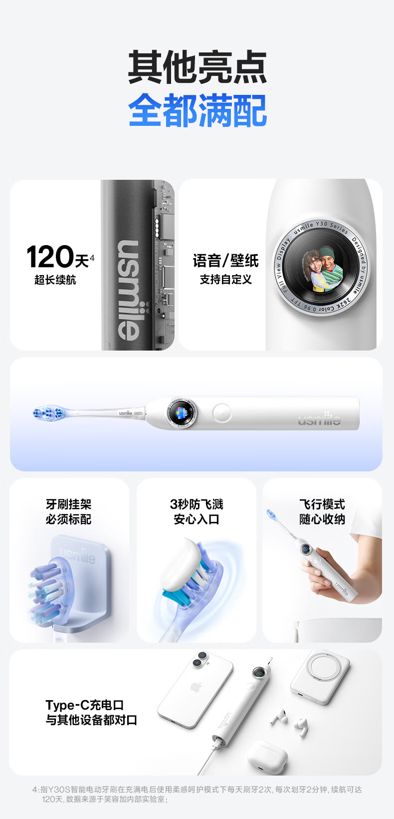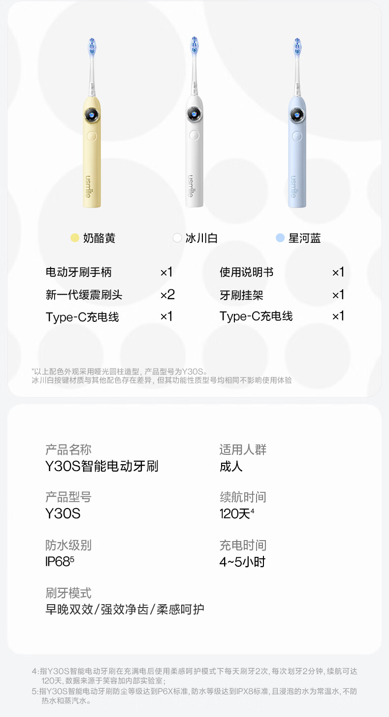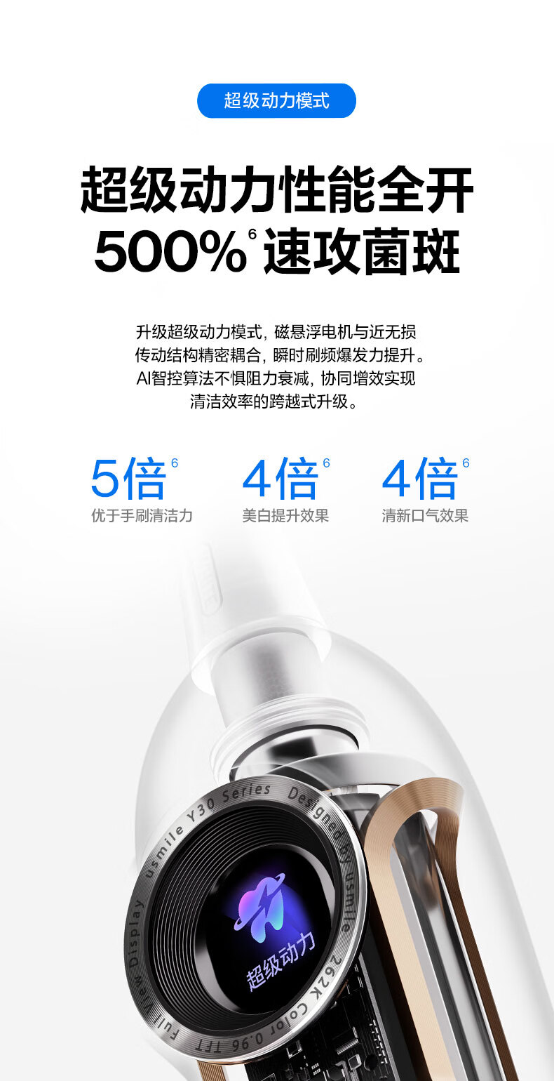 usmile笑容加智能电动牙刷 AI智能化新动力大摆幅 Y30S奶酪黄 新年礼物 送男友女友