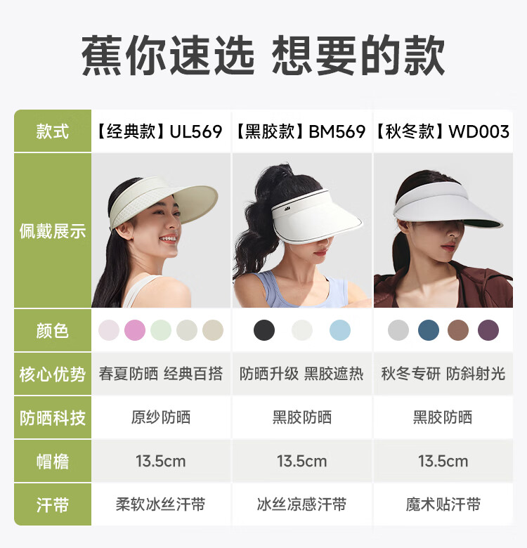 蕉下(beneunder)遮阳帽女太阳帽空顶帽防晒帽防紫外线全脸遮阳时尚百搭加长帽檐