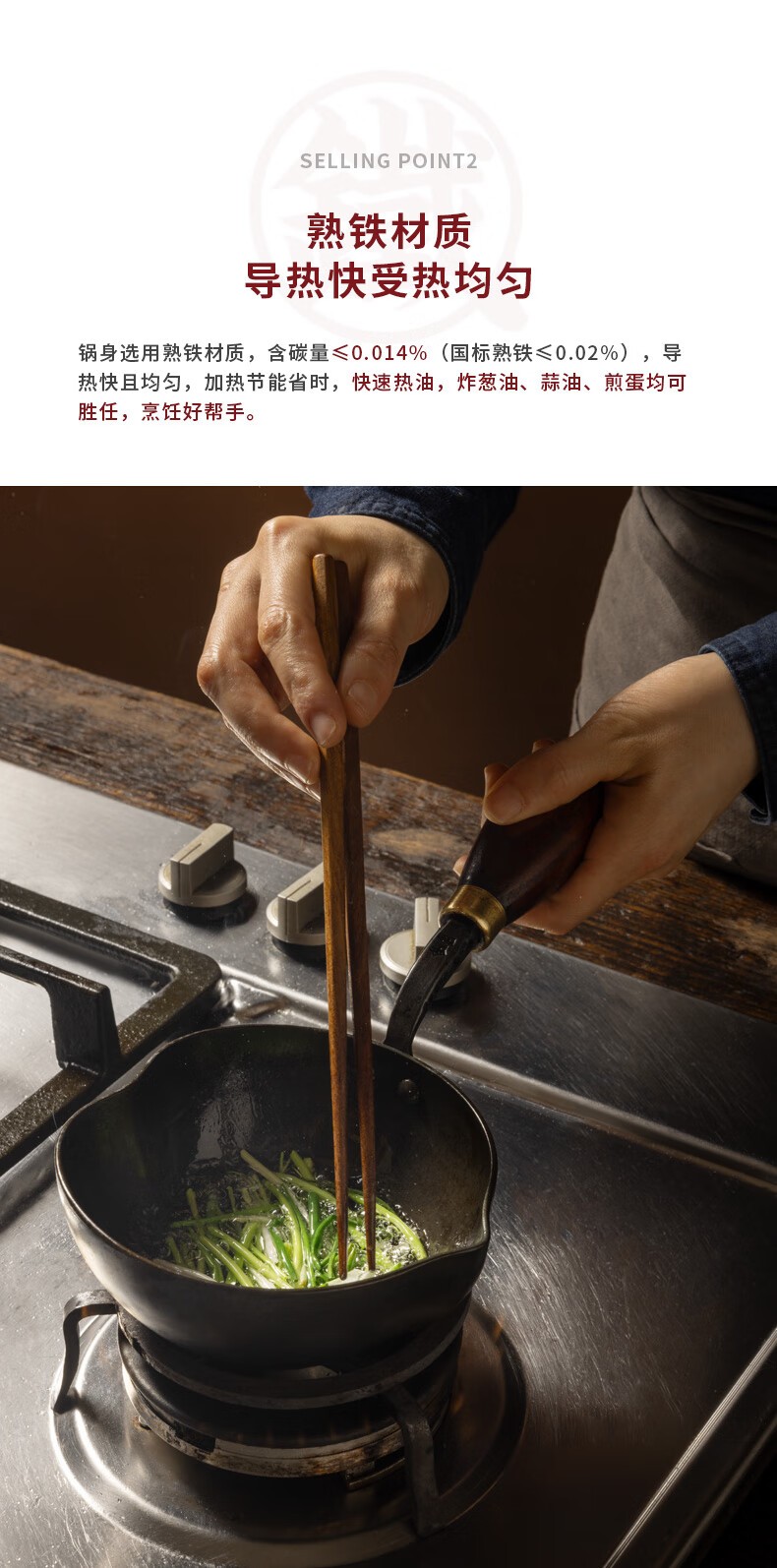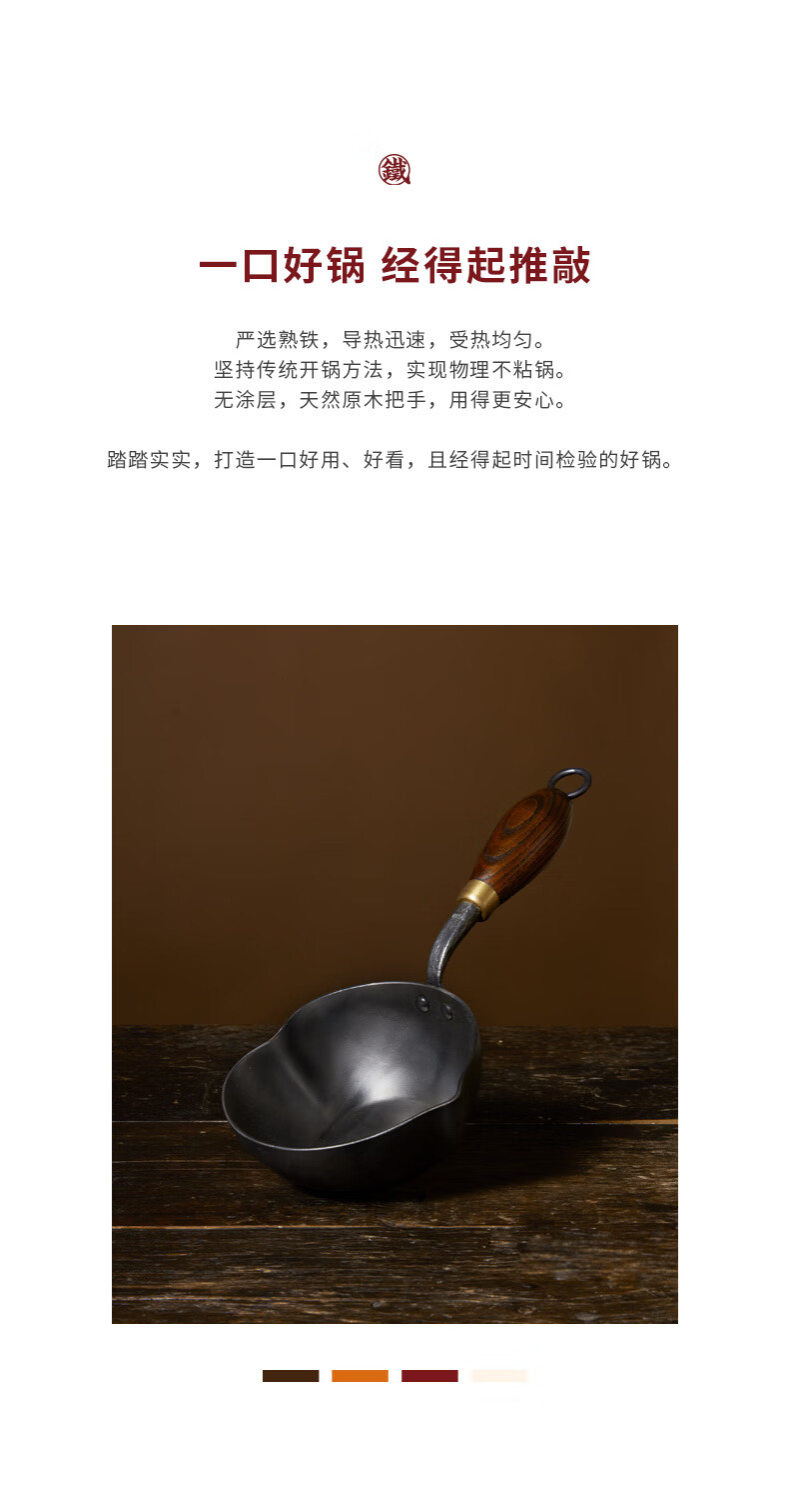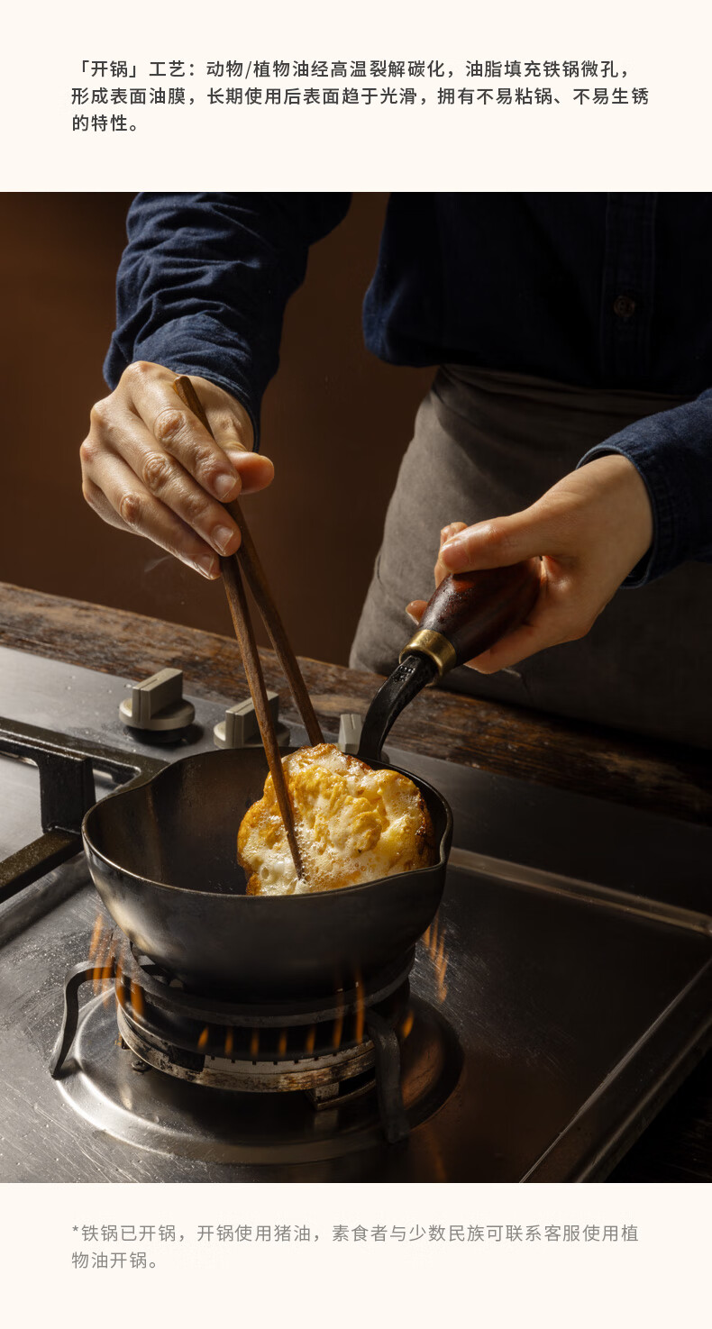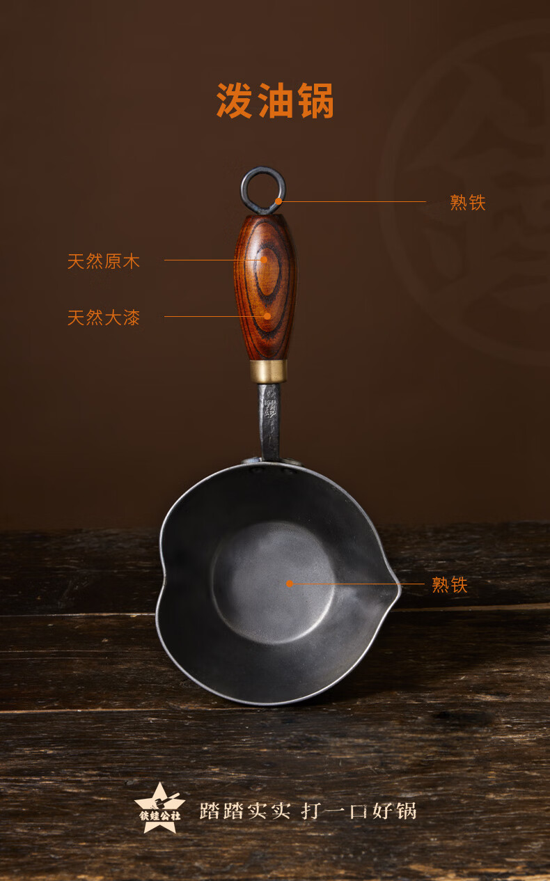 铁娃公社泼油锅锻打铁锅熟铁锅小锅不粘锅木柄 爱心泼油锅14cm